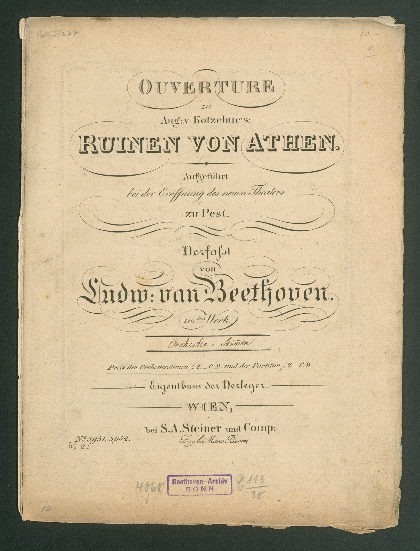 Ludwig van Beethoven, Ouvertüre (G-Dur) zu August von Kotzebues Festspiel "Die Ruinen von Athen" op. 113, Orchesterstimmen, Steiner, 3952