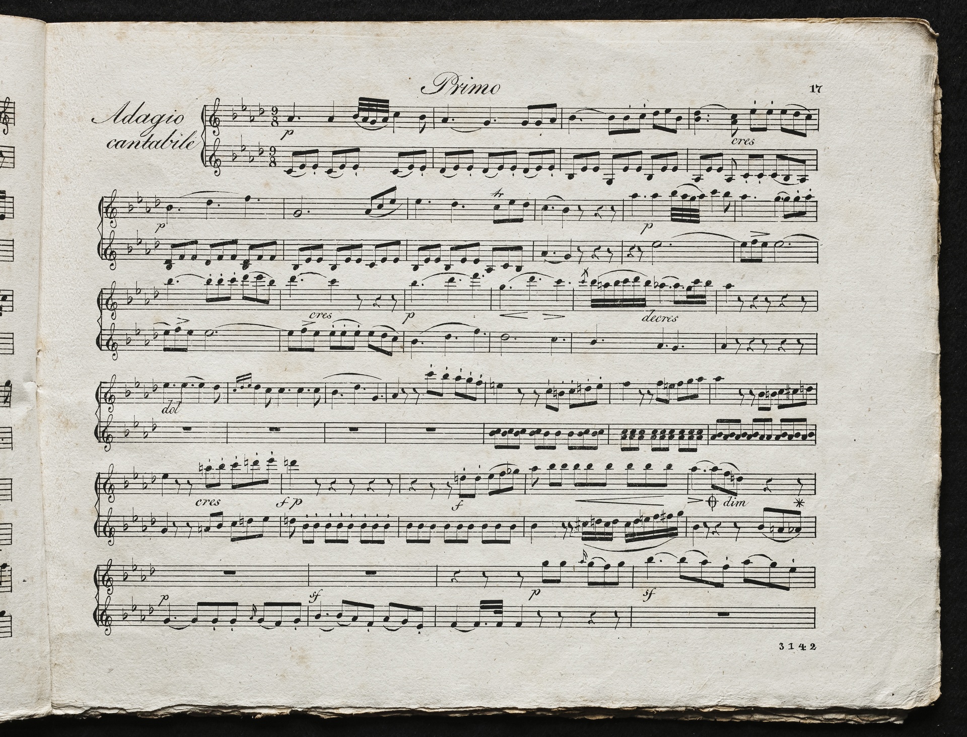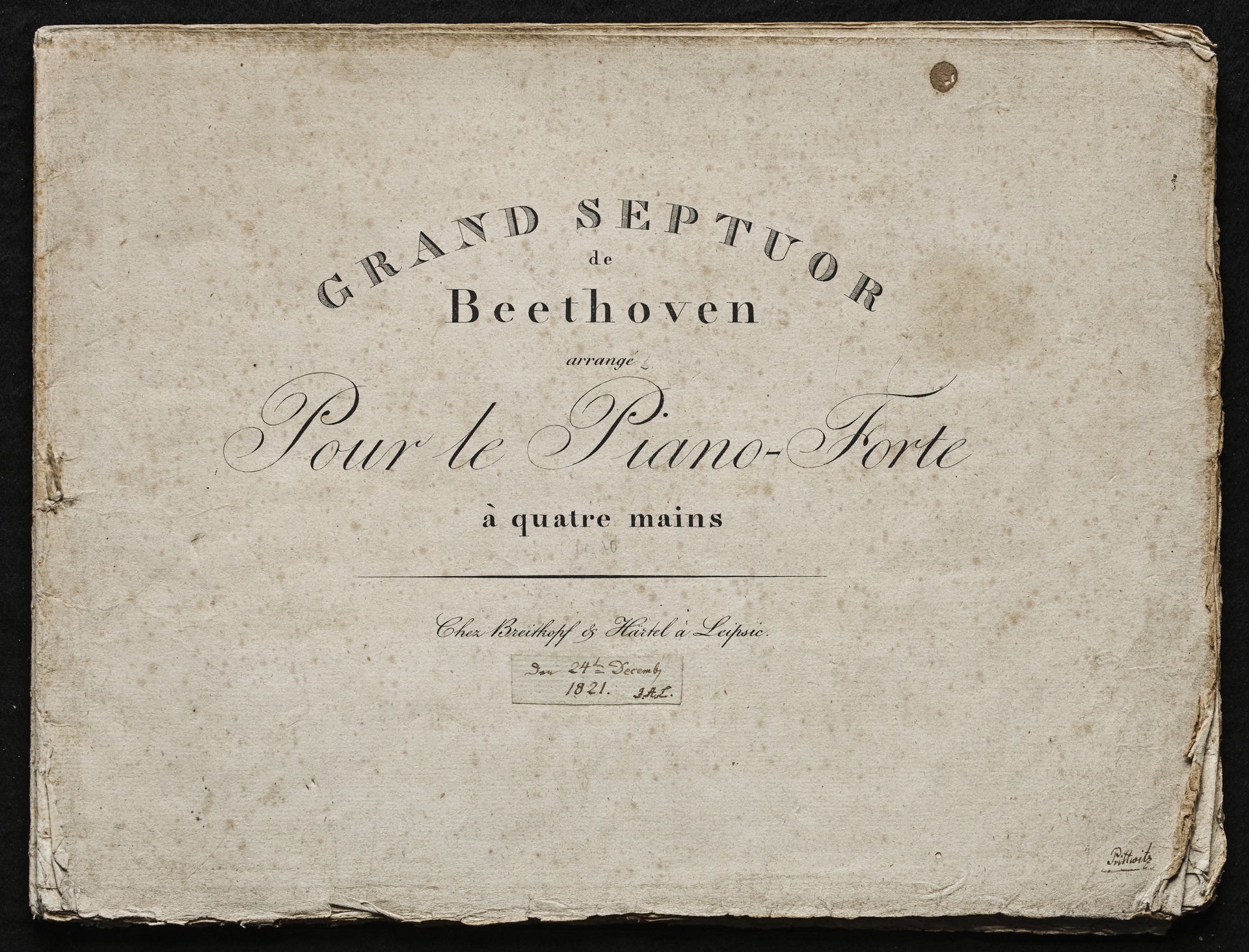 Ludwig van Beethoven, Septett für Violine, Viola, Klarinette, Horn, Fagott, Violoncello, Kontrabass (Es-Dur) op. 20, Bearbeitung für Klavier zu 4 Händen, Breitkopf und Härtel, 3142