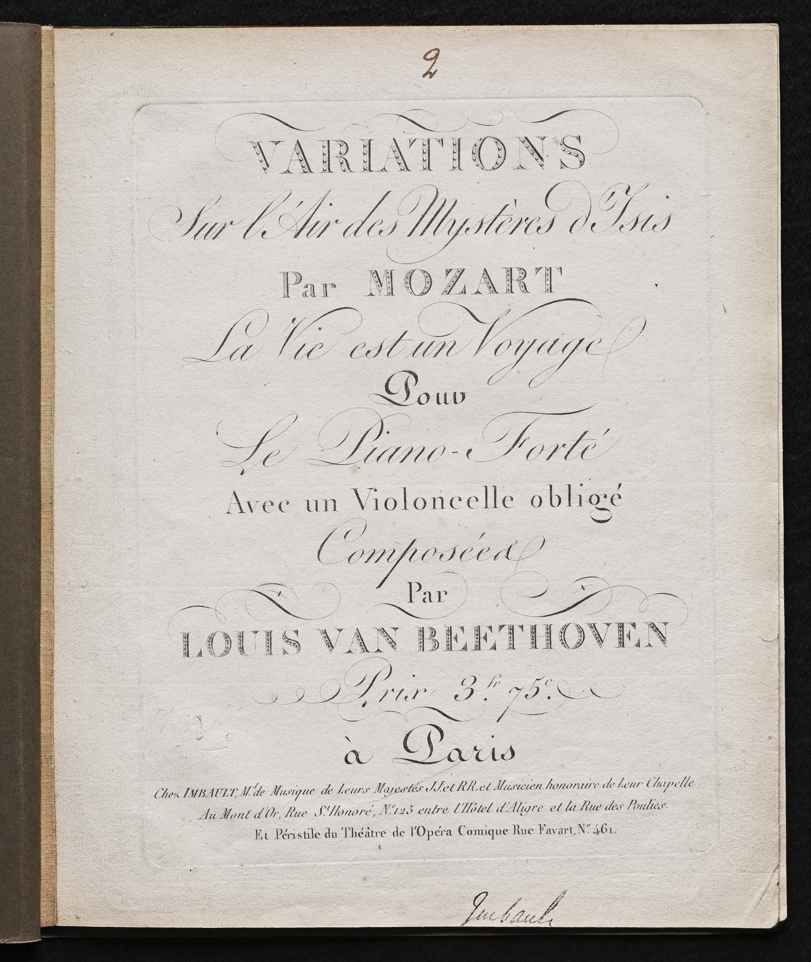 Ludwig van Beethoven, Variationen über "Ein Mädchen oder Weibchen" aus Wolfgang Amadeus Mozarts Oper "Die Zauberflöte" für Klavier und Violoncello (F-Dur) op. 66, Stimmen, Imbault, 51