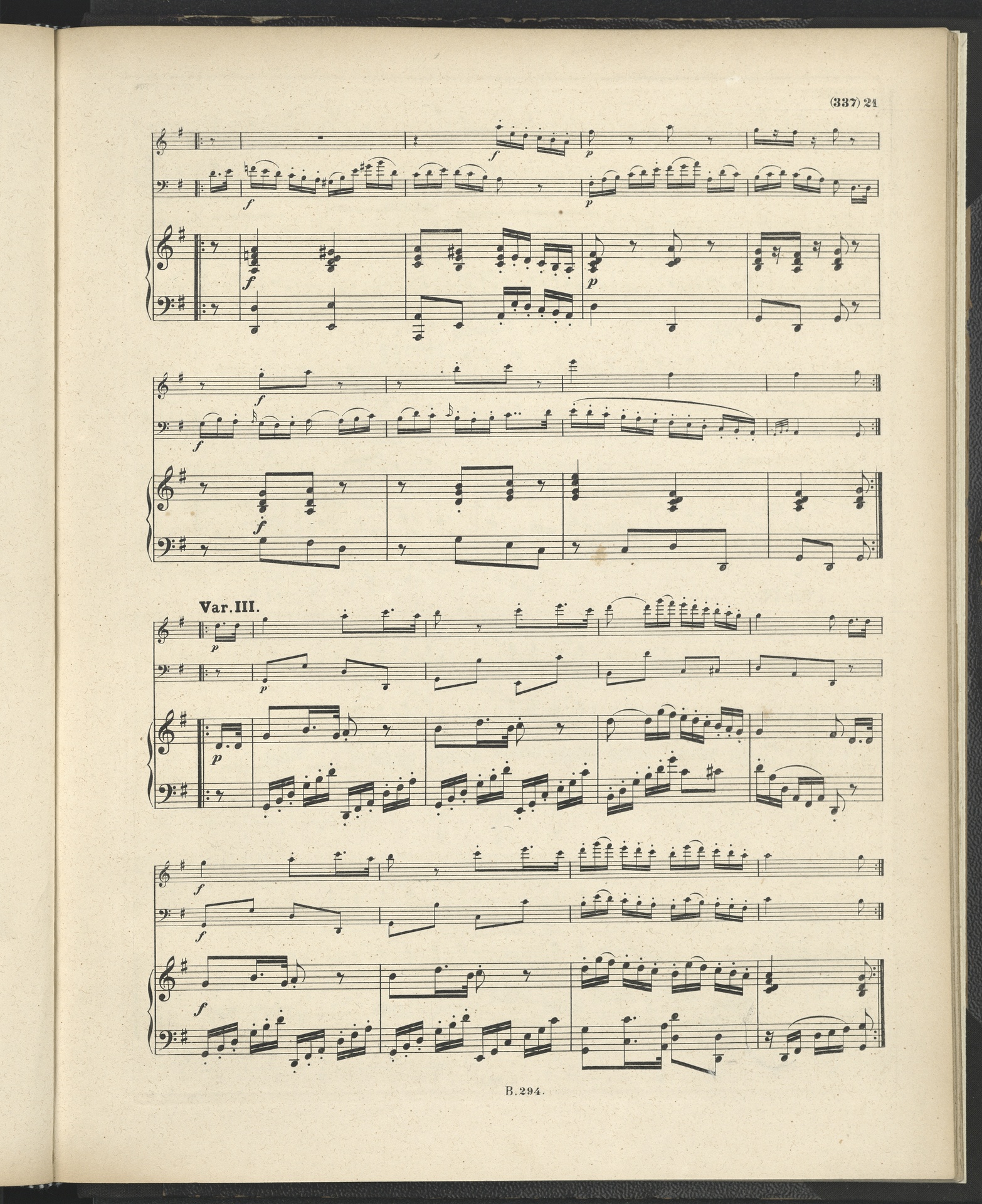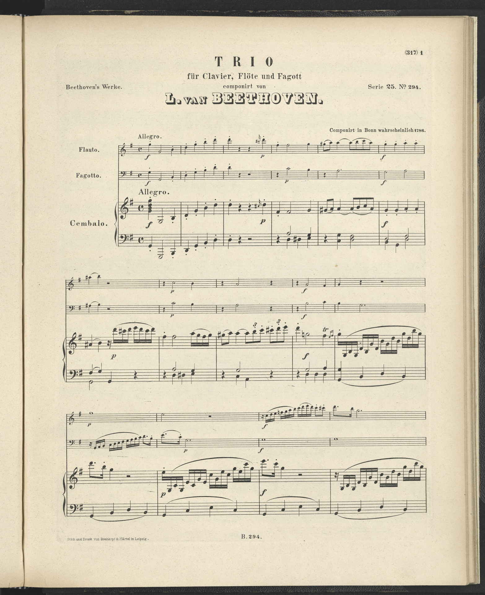 Ludwig van Beethoven, Trio für Klavier, Flöte und Fagott (G-Dur) WoO 37, Partitur, Breitkopf und Härtel, 294
