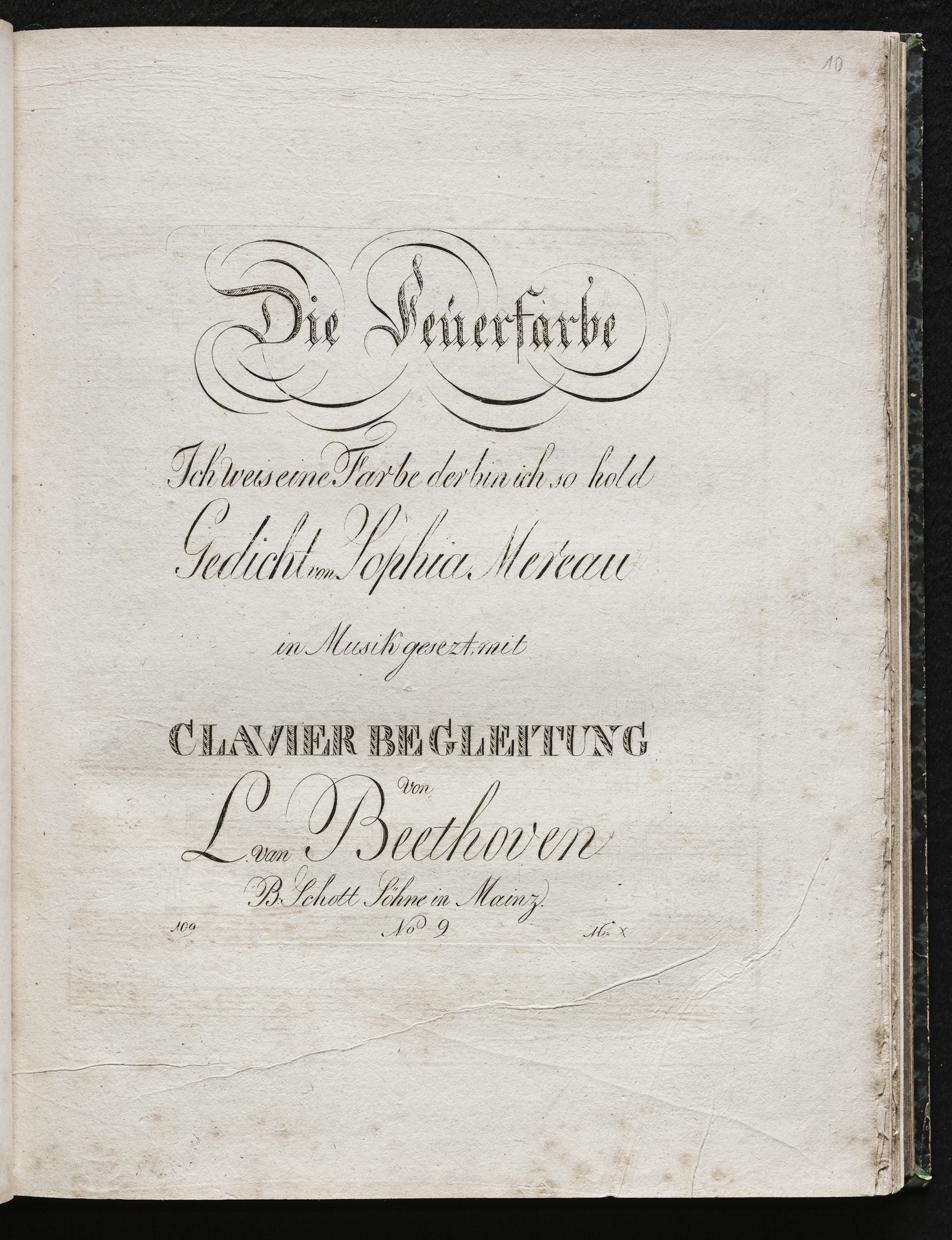 Ludwig van BeethovenSophie Mereau, "Feuerfarb'", Lied für Singstimme und Klavier op. 52, 2, Schott, 109