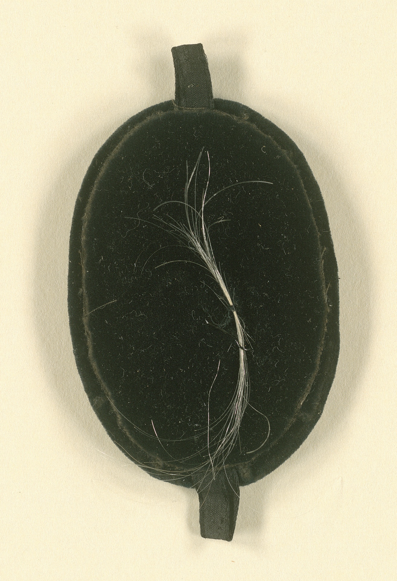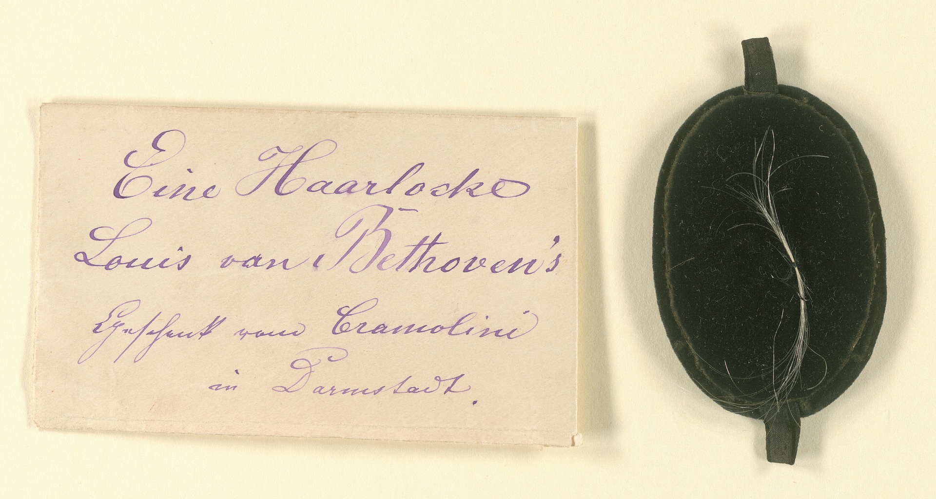 Strands of hair of deceased famous people were a popular and appreciated memory of the person in the 19th century. Very often they had been enclosed in pieces of jewellery and people kept them over generations. Strands of Beethoven's hair, too, were in great demand by the composer's friends and admirers. After Beethoven's death, numerous visitors came to his apartment, to pay their last respects to him. Apparently, many of them took the opportunity to cut a strand of hair from the head of Beethoven's corpse. Gerhard von Breuning, the son of one of Beethoven's oldest friends, Stephan von Breuning, said: "On March 29, when I went over to Beethoven's apartment with my father to clip some strands of Beethoven's hair - father had allowed me to do that only towards the end of the laying out, so the physical appearance [of Beethoven] would not be ruined earlier -, we saw, that strangers had already cut all of his strands of hair." (Memories of Beethoven: From the House of the Black-robed Spaniards, by Gerhard von Breuning. Vienna 1874)(S.B.)