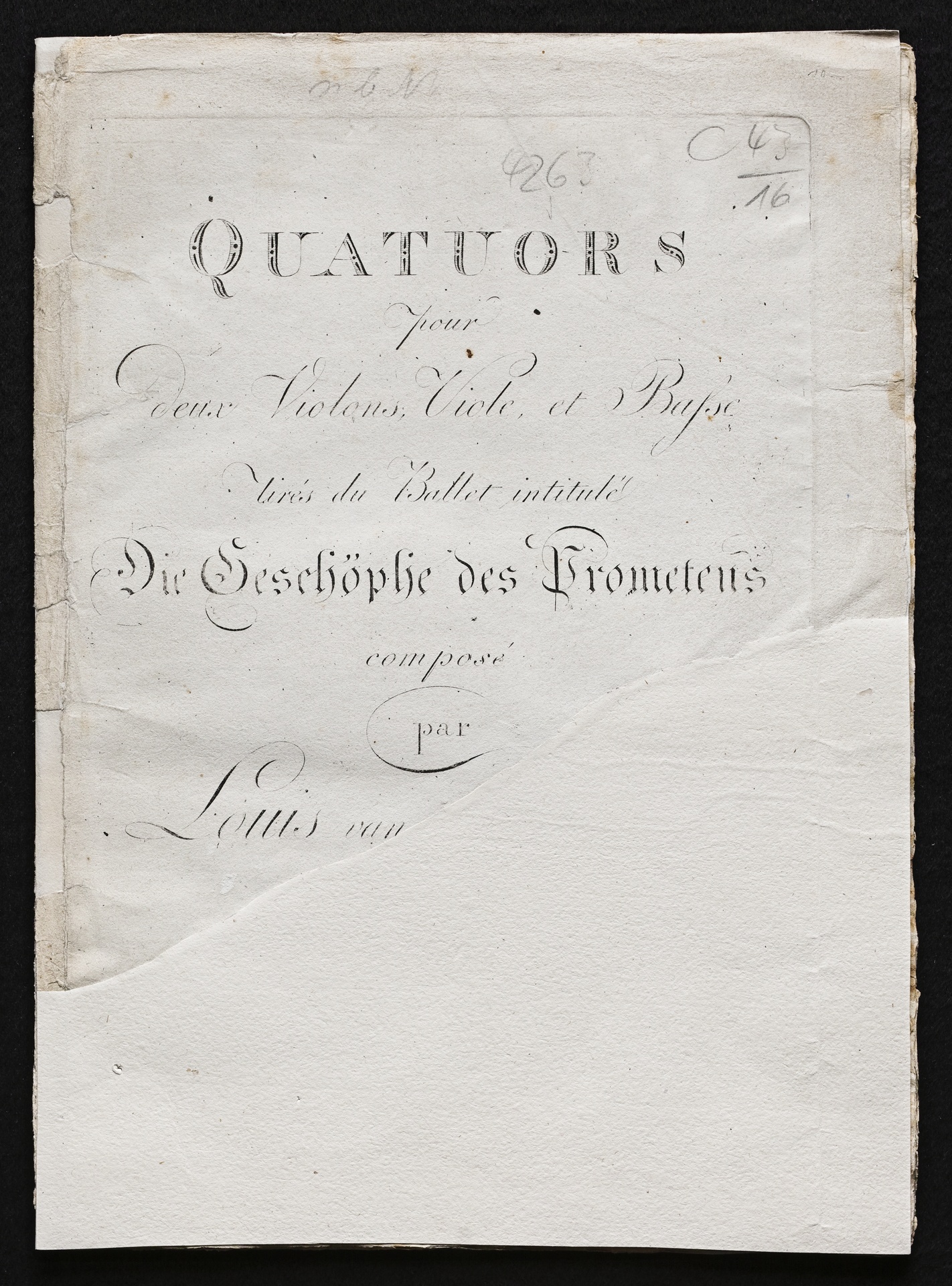 Ludwig van Beethoven, "Die Geschöpfe des Prometheus", Ballett von Salvatore Viganò op. 43, Bearbeitung für 2 Violinen, Viola und Violoncello, Stimmen, Artaria, 1620