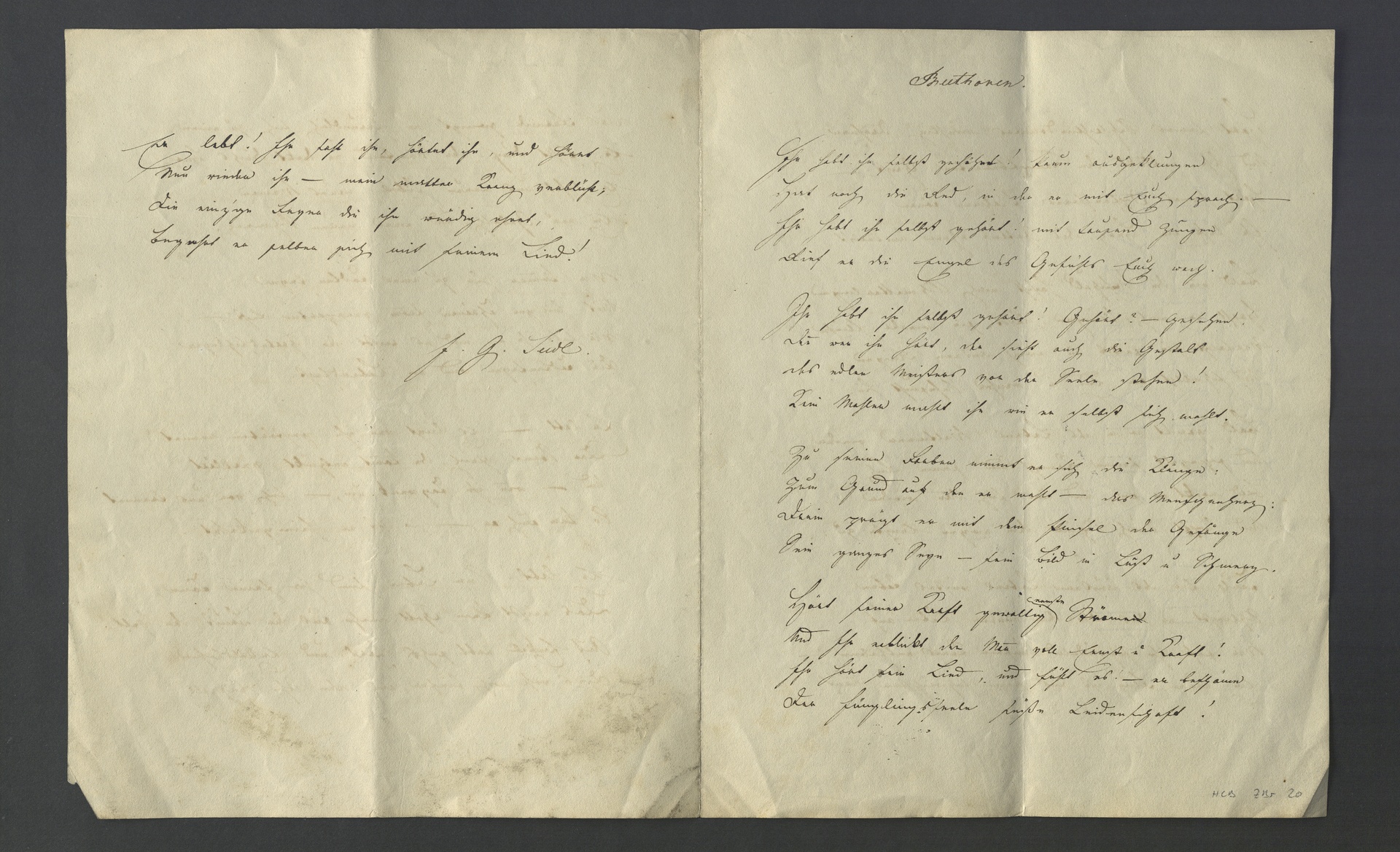 Johann Gabriel Seidl, "Beethoven", Gedicht, 1827, Abschrift