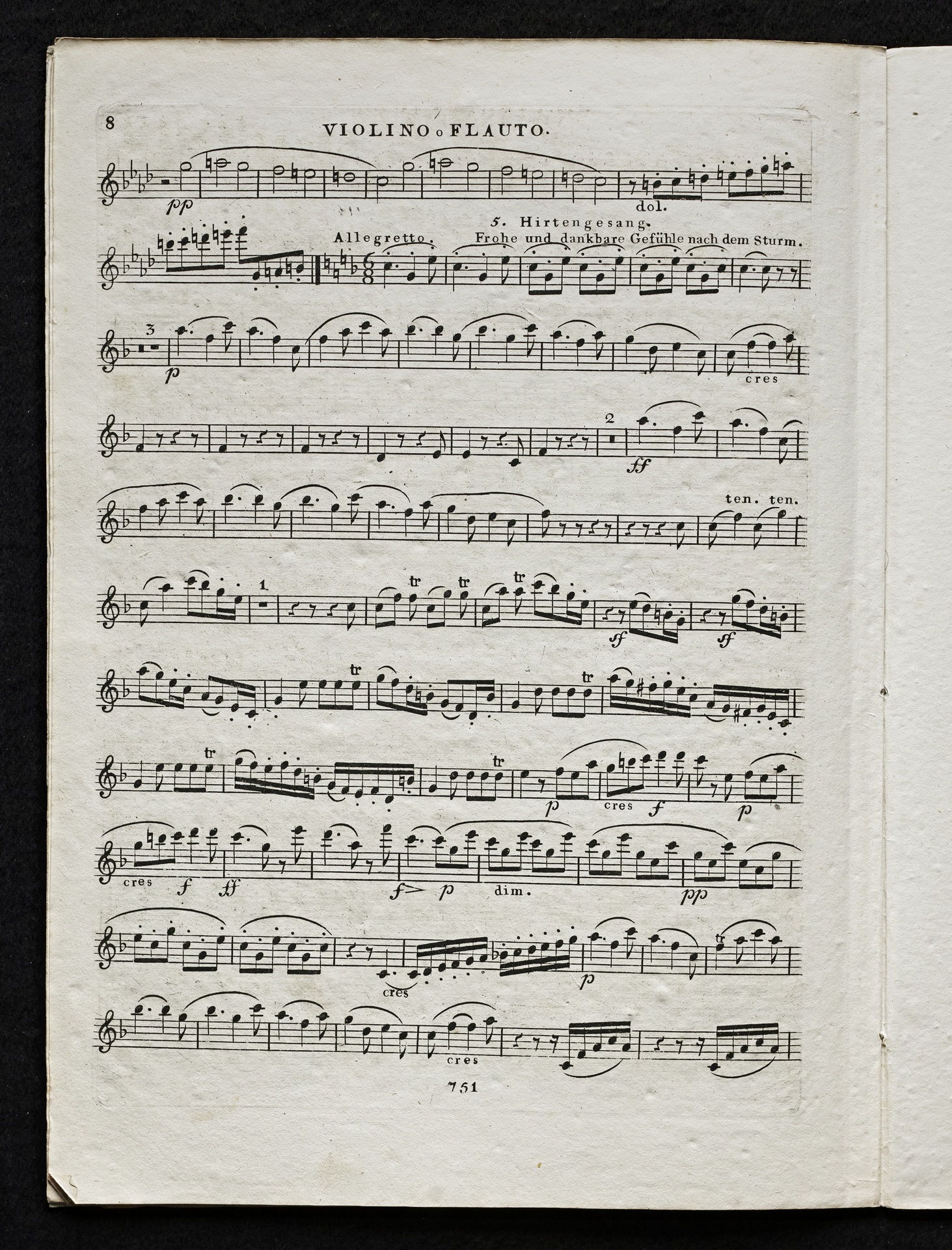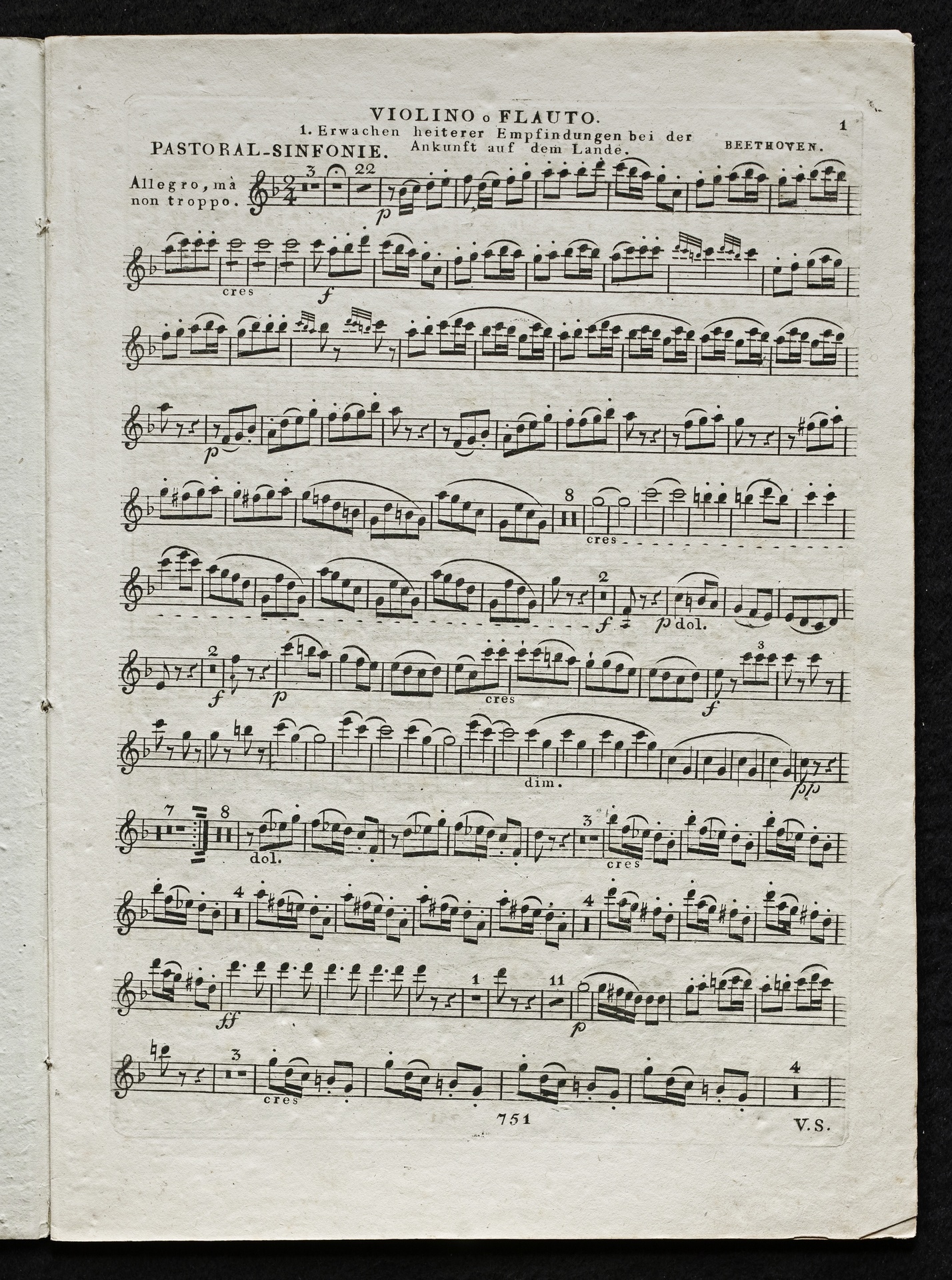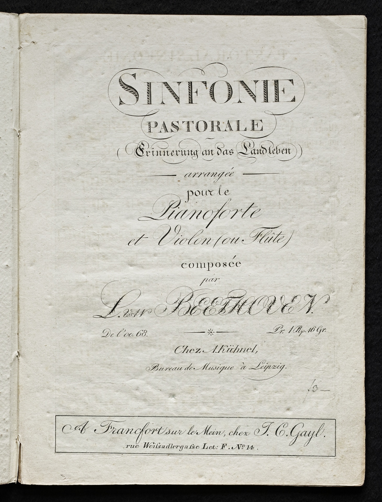 Ludwig van Beethoven, Sinfonie Nr. 6 (F-Dur) op. 68 (Pastorale), Bearbeitung für Violine oder Flöte und Klavier von August Bergt, Stimmen, Kühnel, 751
