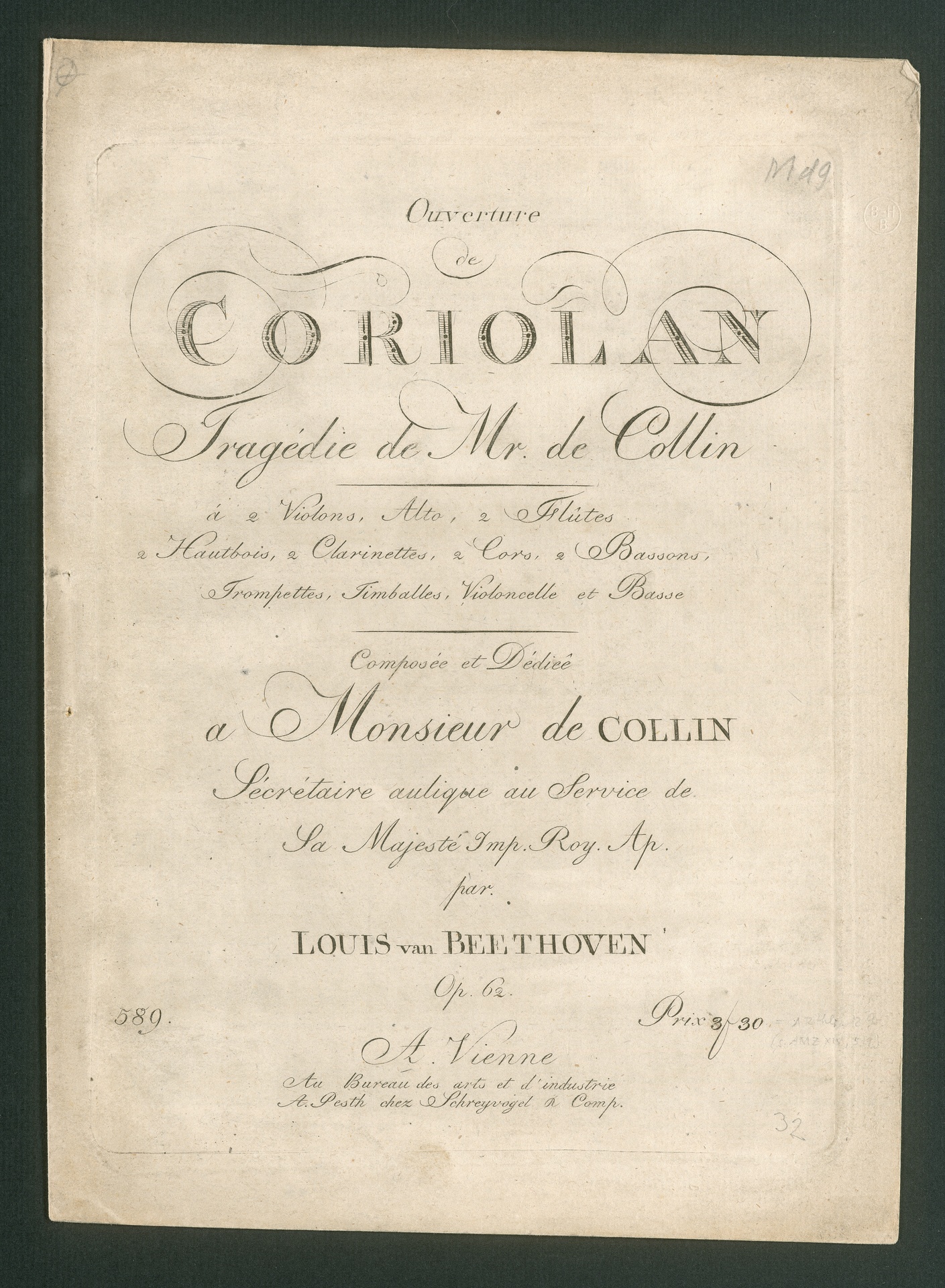 Ludwig van Beethoven, Ouvertüre (c-Moll) zu Heinrich Joseph von Collins Trauerspiel "Coriolan" op. 62, Stimmen, Bureau des Arts et d'Industrie, 589