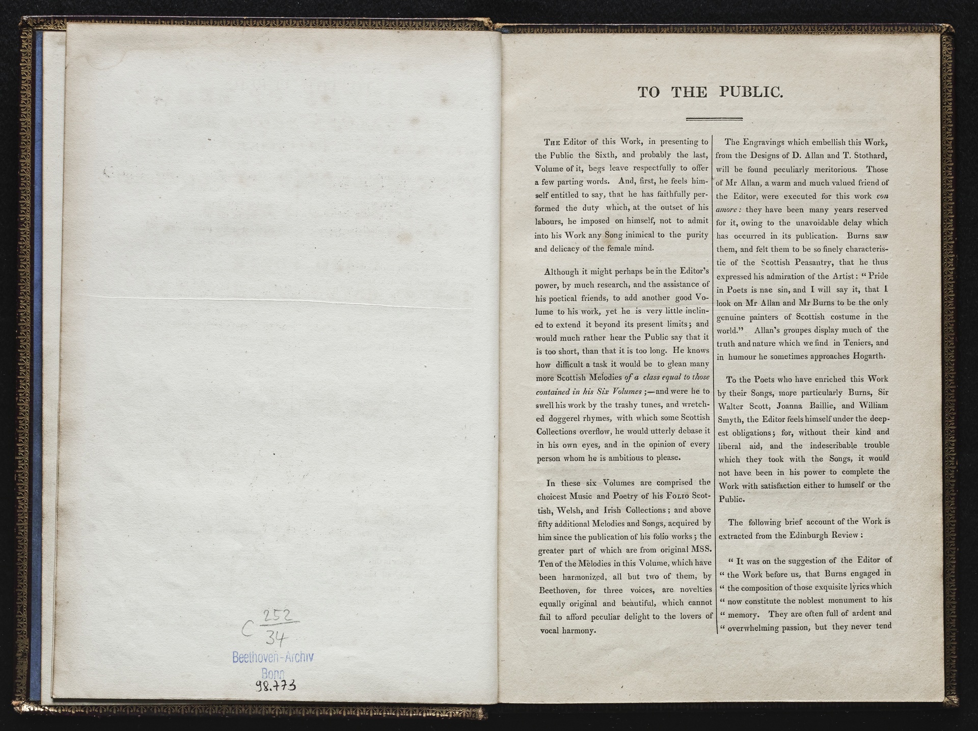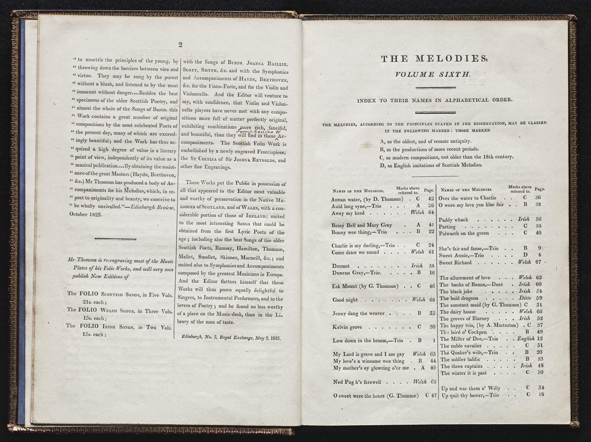Ludwig van Beethoven, Sammlung von britischen Volksliedern für eine oder mehrere Singstimmen, Violine, Violoncello und Klavier aus op. 108, WoO 152-153, WoO 155-157 und von anderen Komponisten, Klavierpartitur, Thomson