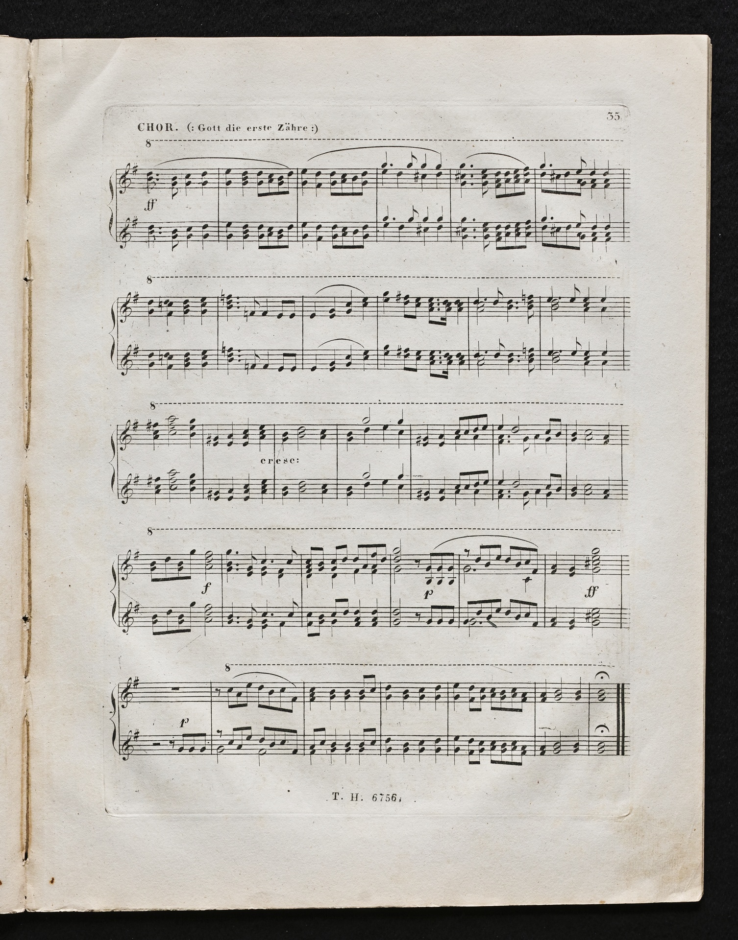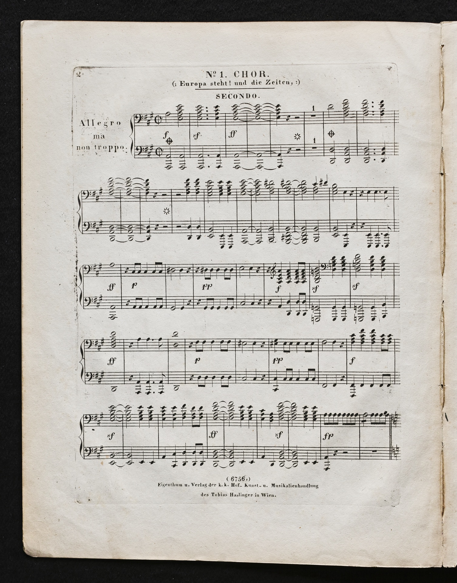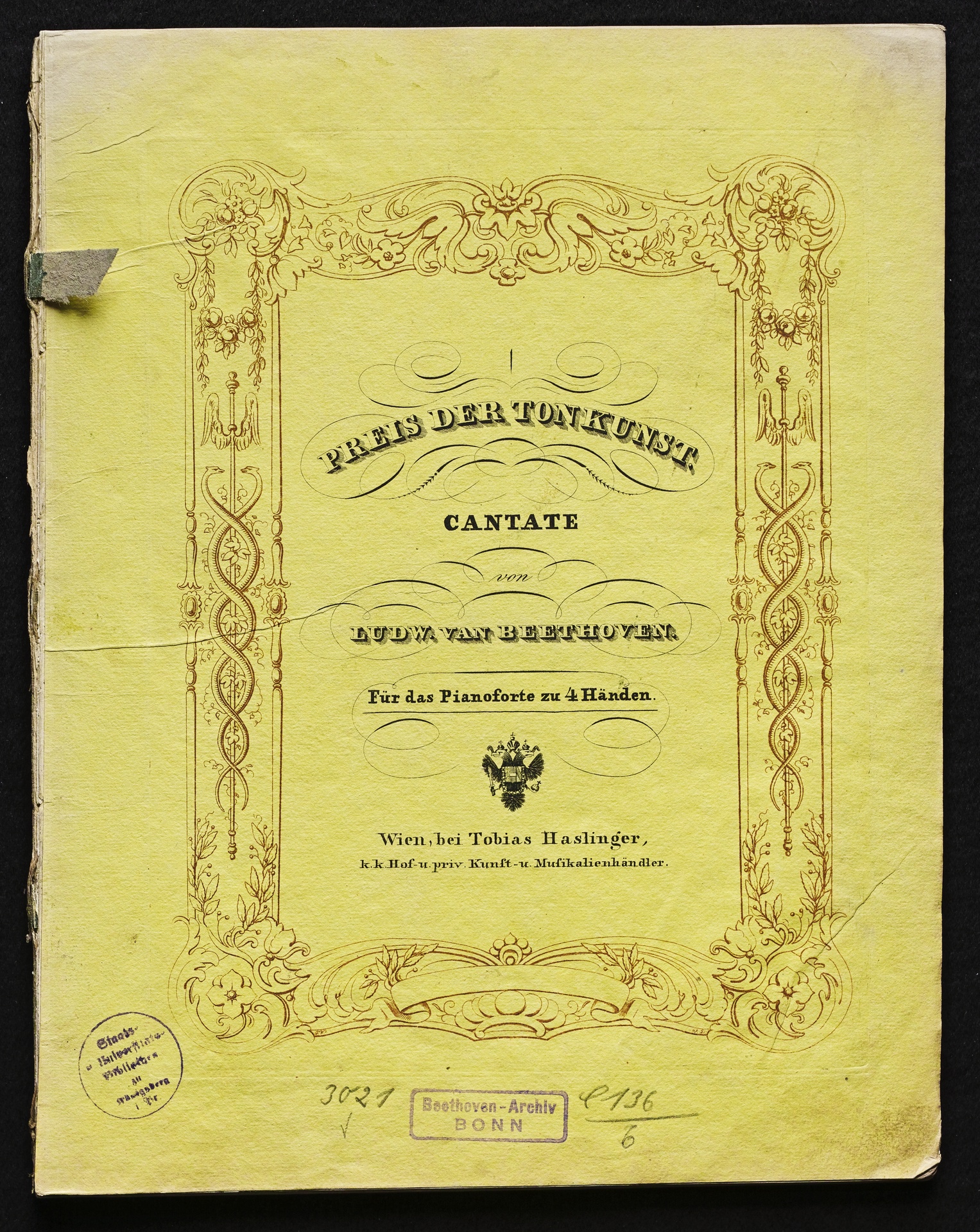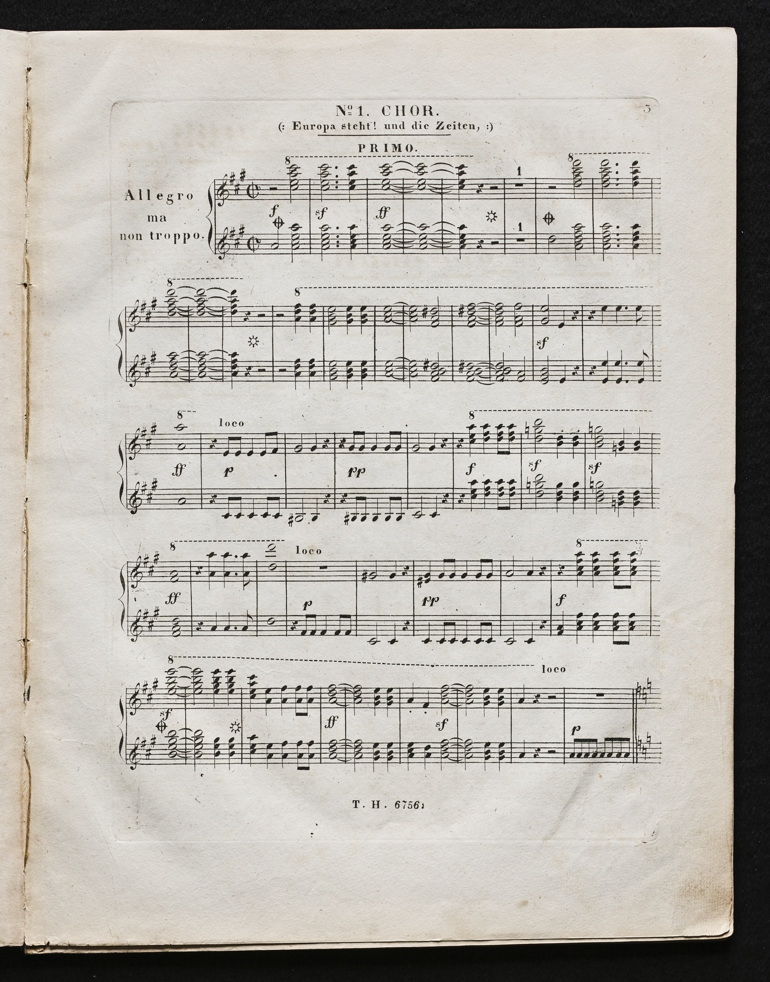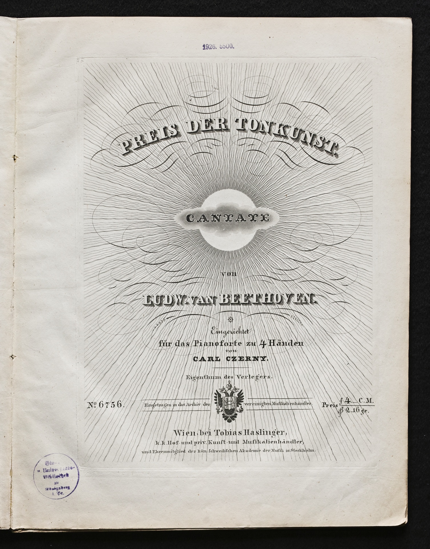 Ludwig van BeethovenFriedrich Rochlitz, "Der glorreiche Augenblick", Kantate für 4 Solostimmen, Chor und Orchester op. 136, Bearbeitung für Klavier zu 4 Händen von Carl Czerny, Haslinger 6756