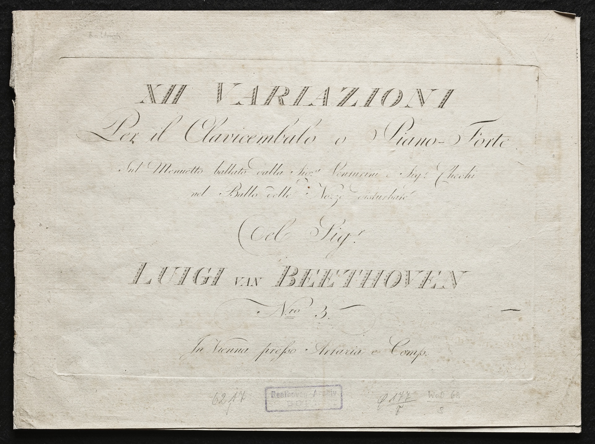 Ludwig van Beethoven, Variationen über das "Menuett à la Viganò" aus dem Ballett "Le nozze disturbate" von Jakob Haibel für Klavier (C-Dur) WoO 68, Artaria, 637