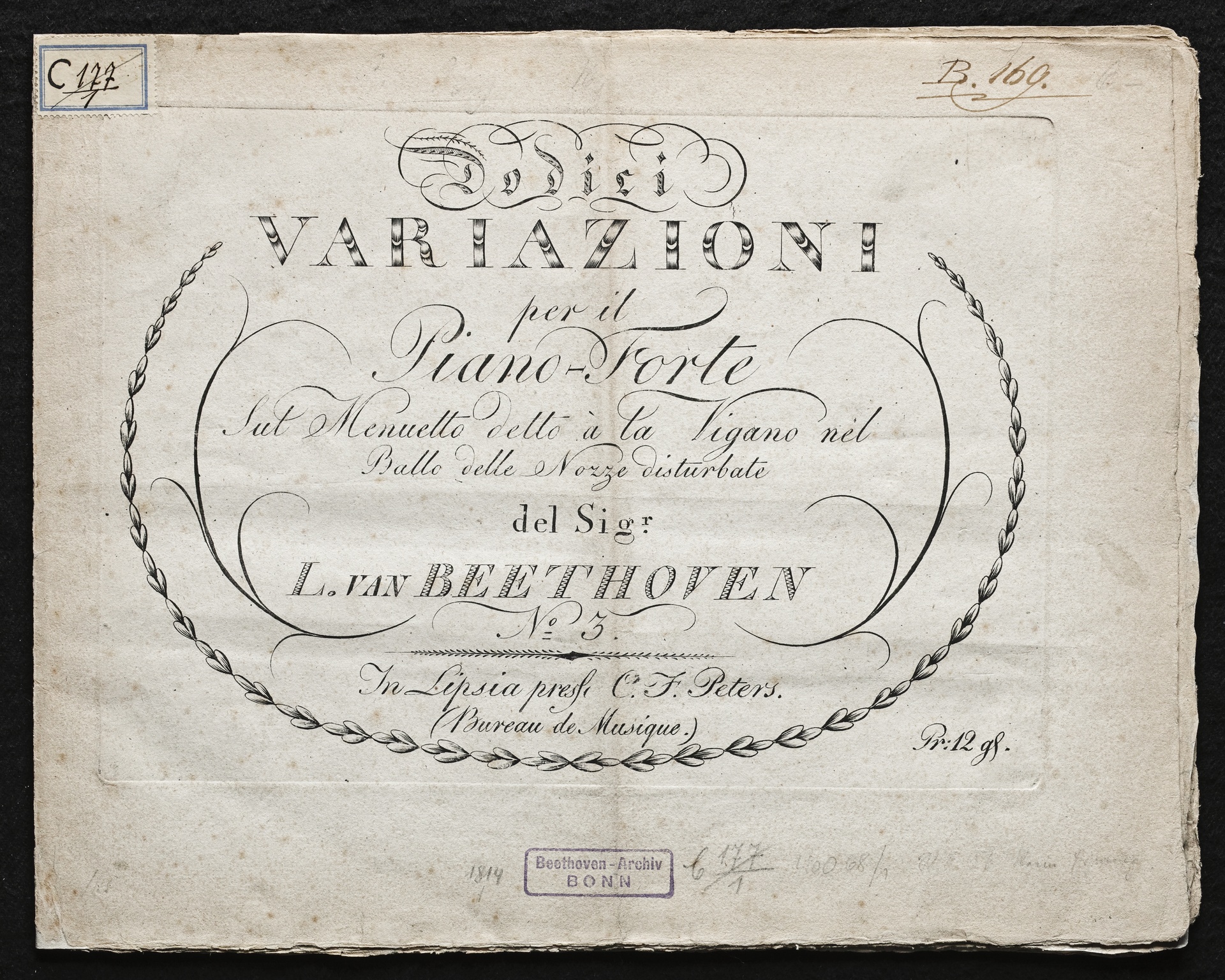 Ludwig van Beethoven, Variationen über das "Menuett à la Viganò" aus dem Ballett "Le nozze disturbate" von Jakob Haibel für Klavier (C-Dur) WoO 68, Peters, 791