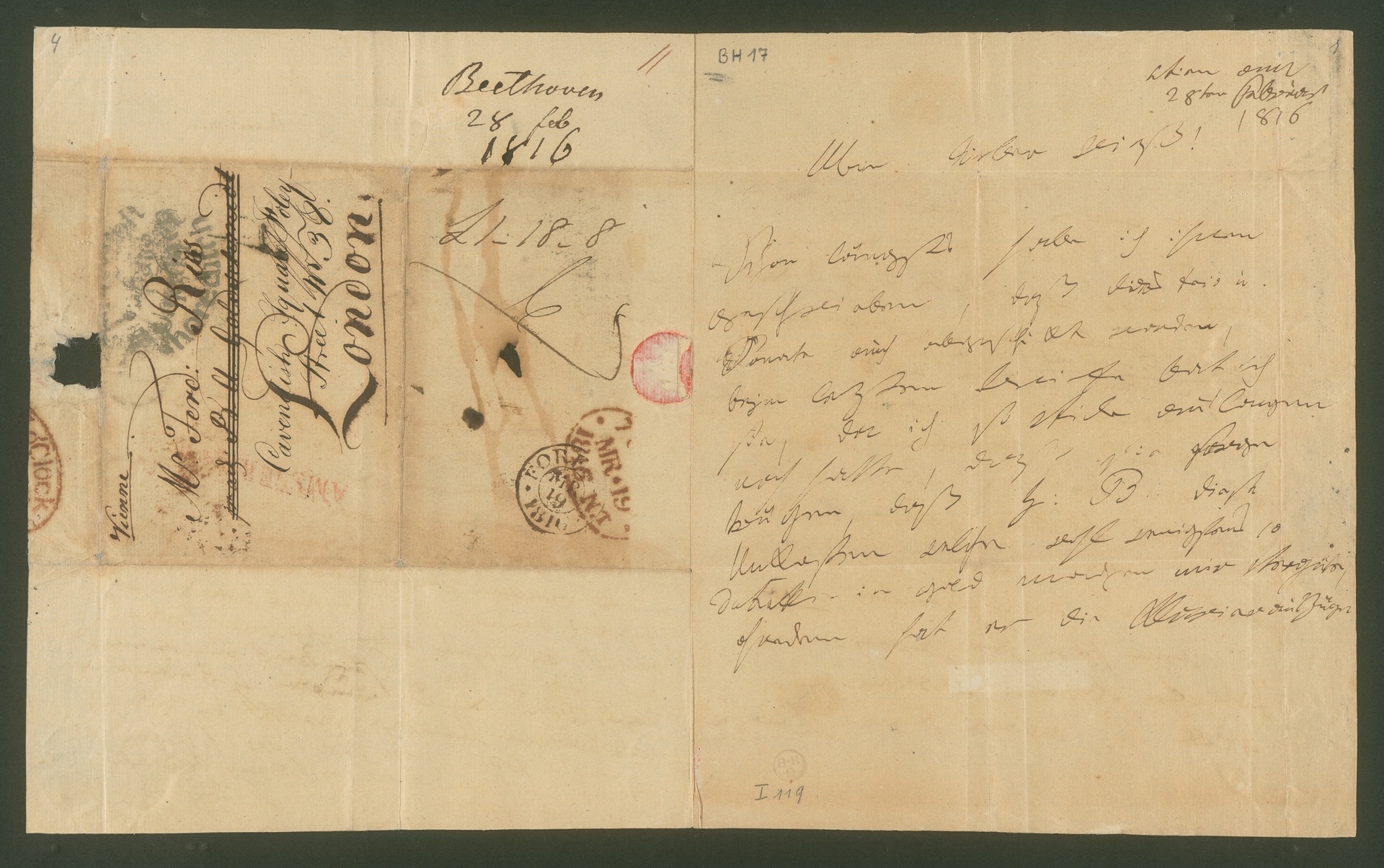 Ludwig van Beethoven, Brief an Ferdinand Ries in London, Wien, 28. Februar 1816, Autograph