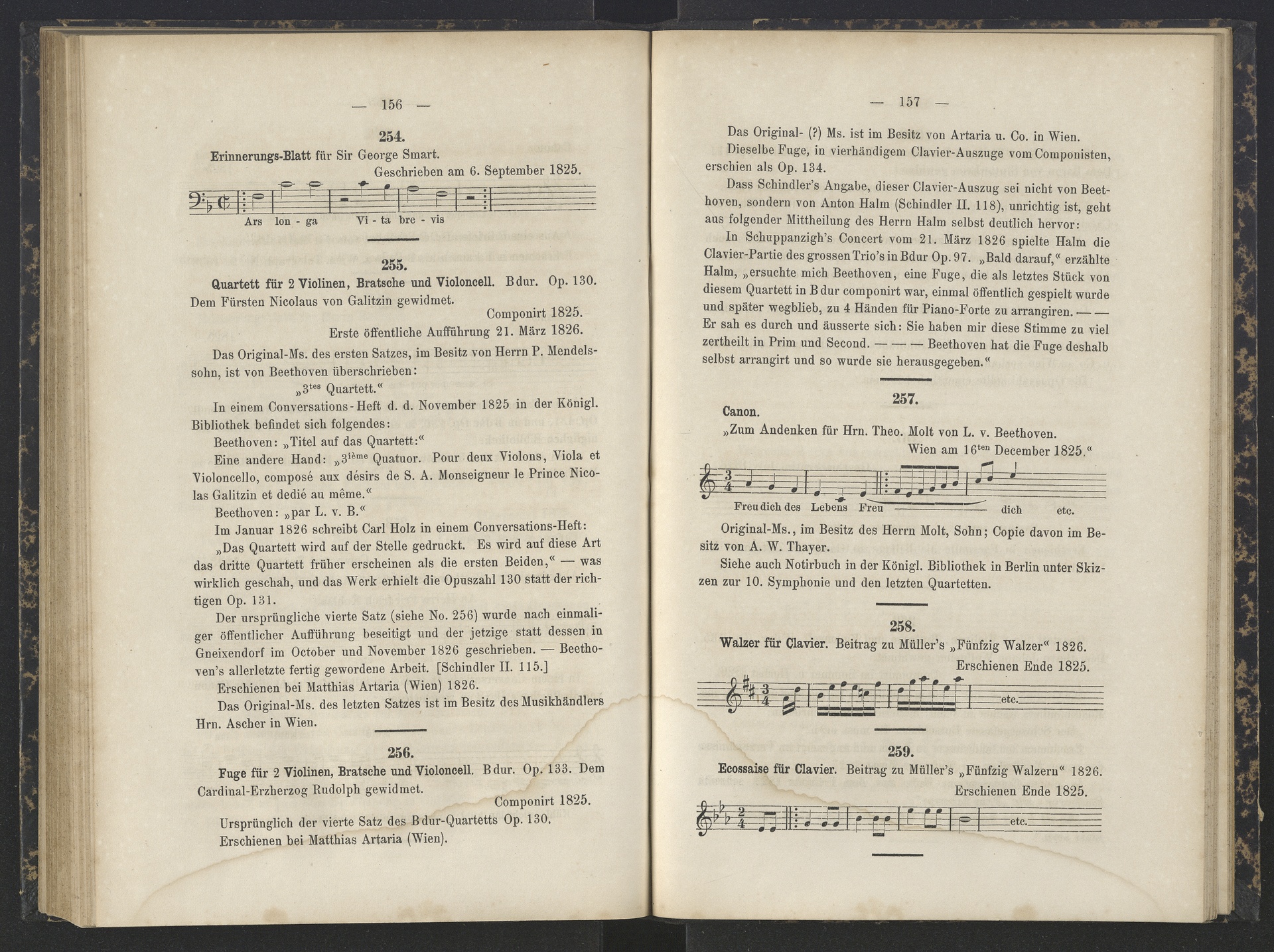 Ludwig van Beethoven, "Ars longa, vita brevis", vierstimmiger Kanon WoO 192, Thayer