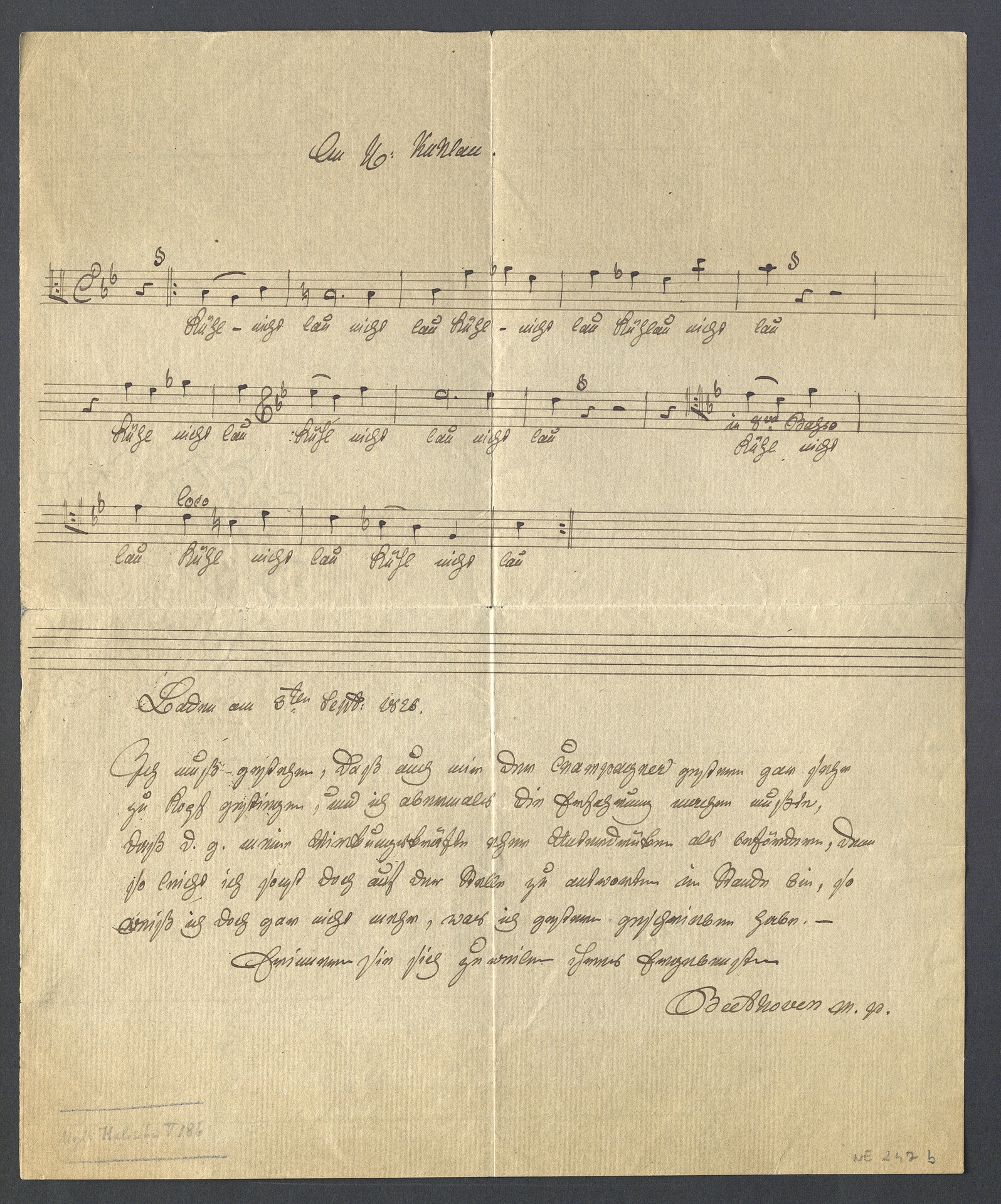 Ludwig van Beethoven, Brief an Friedrich Kuhlau mit Kanon "Kühl, nicht lau", WoO 191, Baden, 3. September 1825, Abschrift