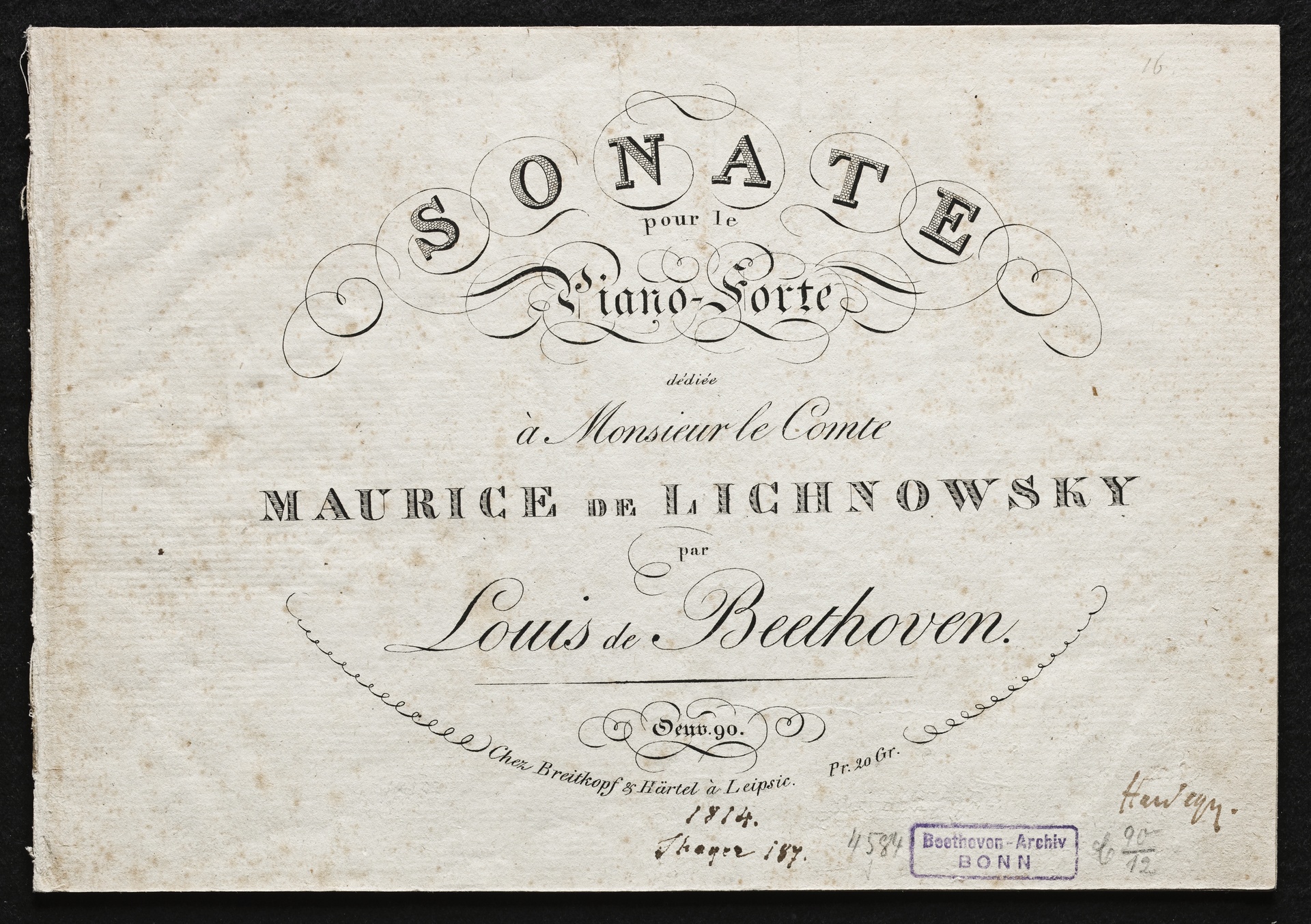 Ludwig van Beethoven, Sonate für Klavier (e-Moll) op. 90, Breitkopf und Härtel, 2350