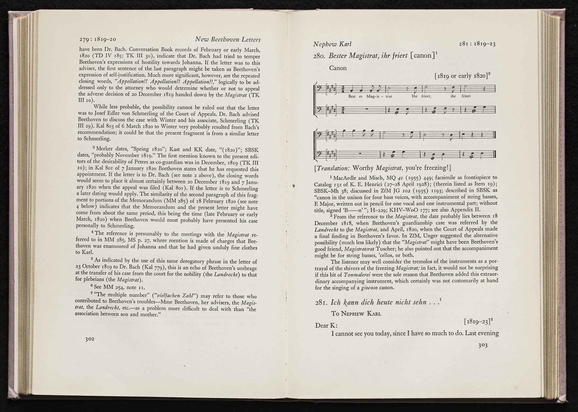 Ludwig van Beethoven, "Bester Magistrat, Ihr friert", Kanon für vier Bass-Stimmen mit Begleitung von Violoncello oder Kontrabass WoO 177, MacArdle
