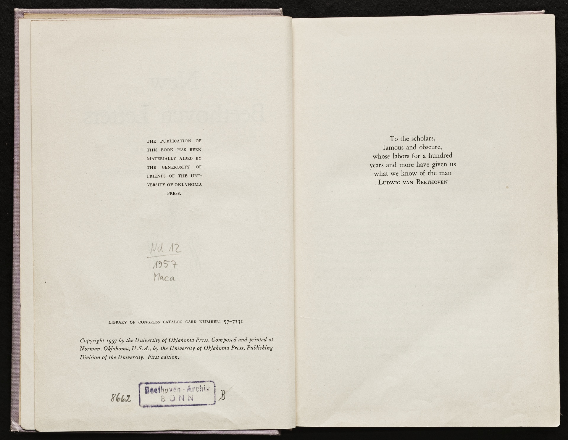 Beethoven-Haus Bonn, Nd 12 / 1957 Maca