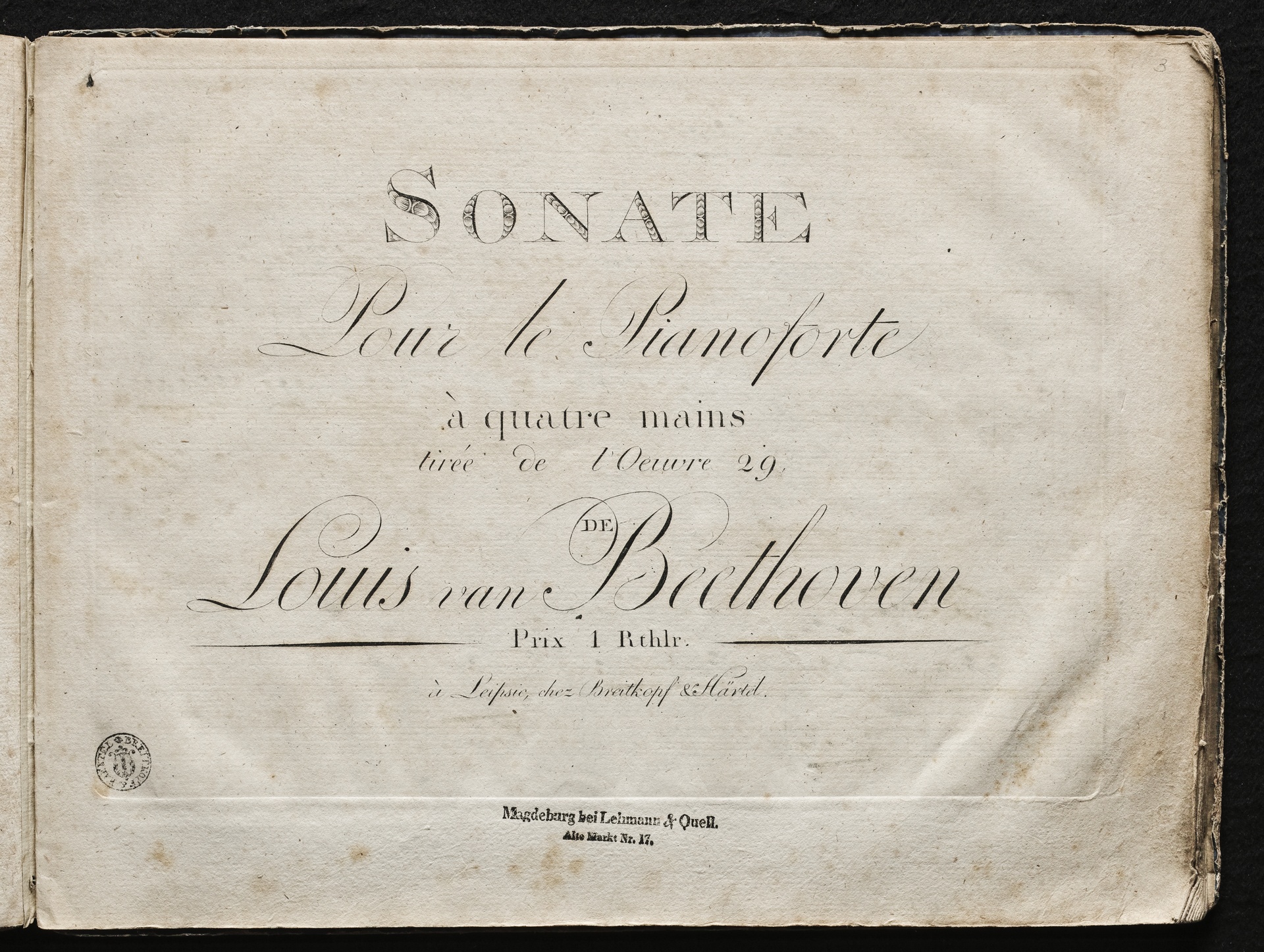 Ludwig van Beethoven, Quintett für 2 Violinen, 2 Violen, Violoncello (C-Dur) op. 29, 1.-3. Satz, Bearbeitung für Klavier zu 4 Händen von August Eberhard Müller, Breitkopf und Härtel, 110