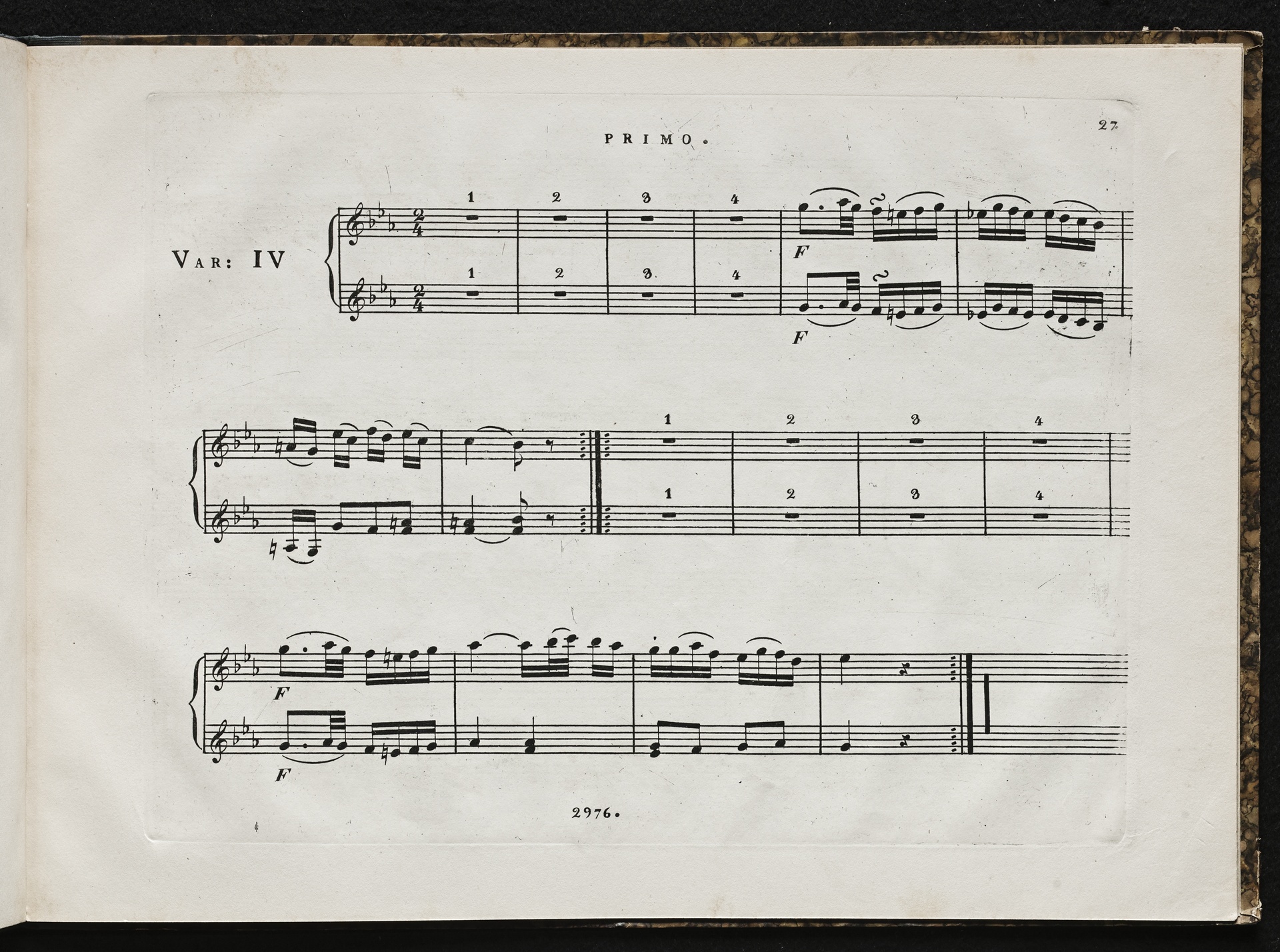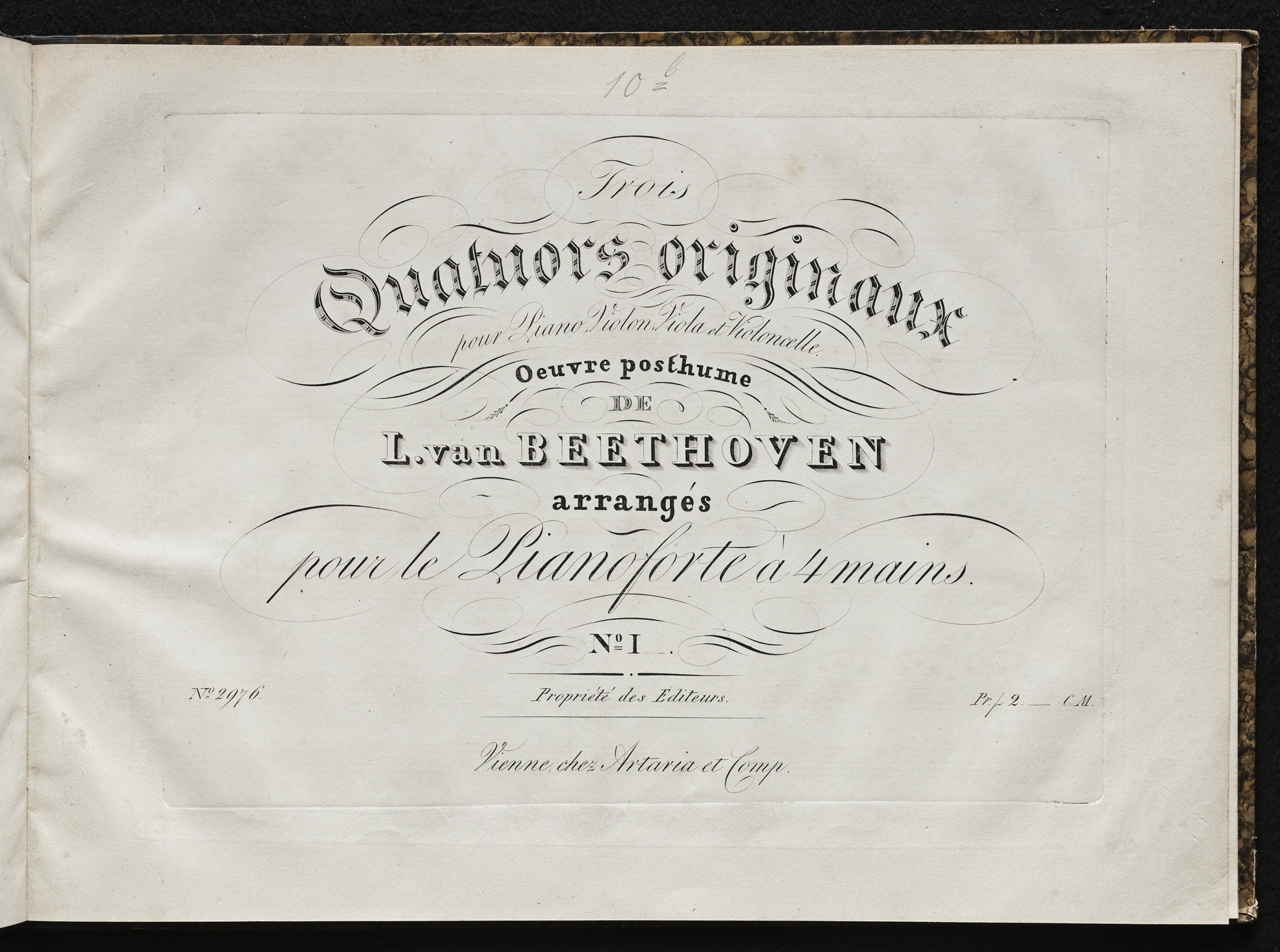 Ludwig van Beethoven, Quartett für Klavier, Violine, Viola, Violoncello (Es-Dur) WoO 36, 1, Bearbeitung für Klavier zu 4 Händen, Artaria, 2976