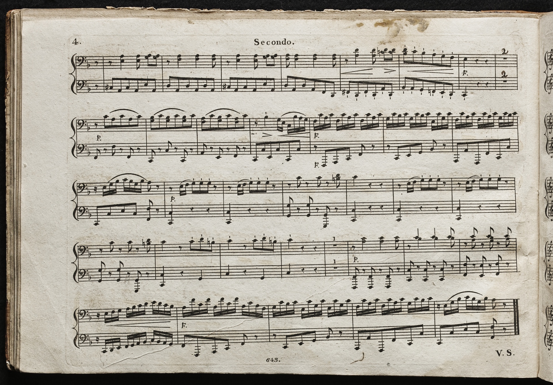Ludwig van Beethoven, Serenade für Violine, Viola und Violoncello (D-Dur) op. 8, 5. Satz, Bearbeitung für Klavier zu 4 Händen, Simrock, 643
