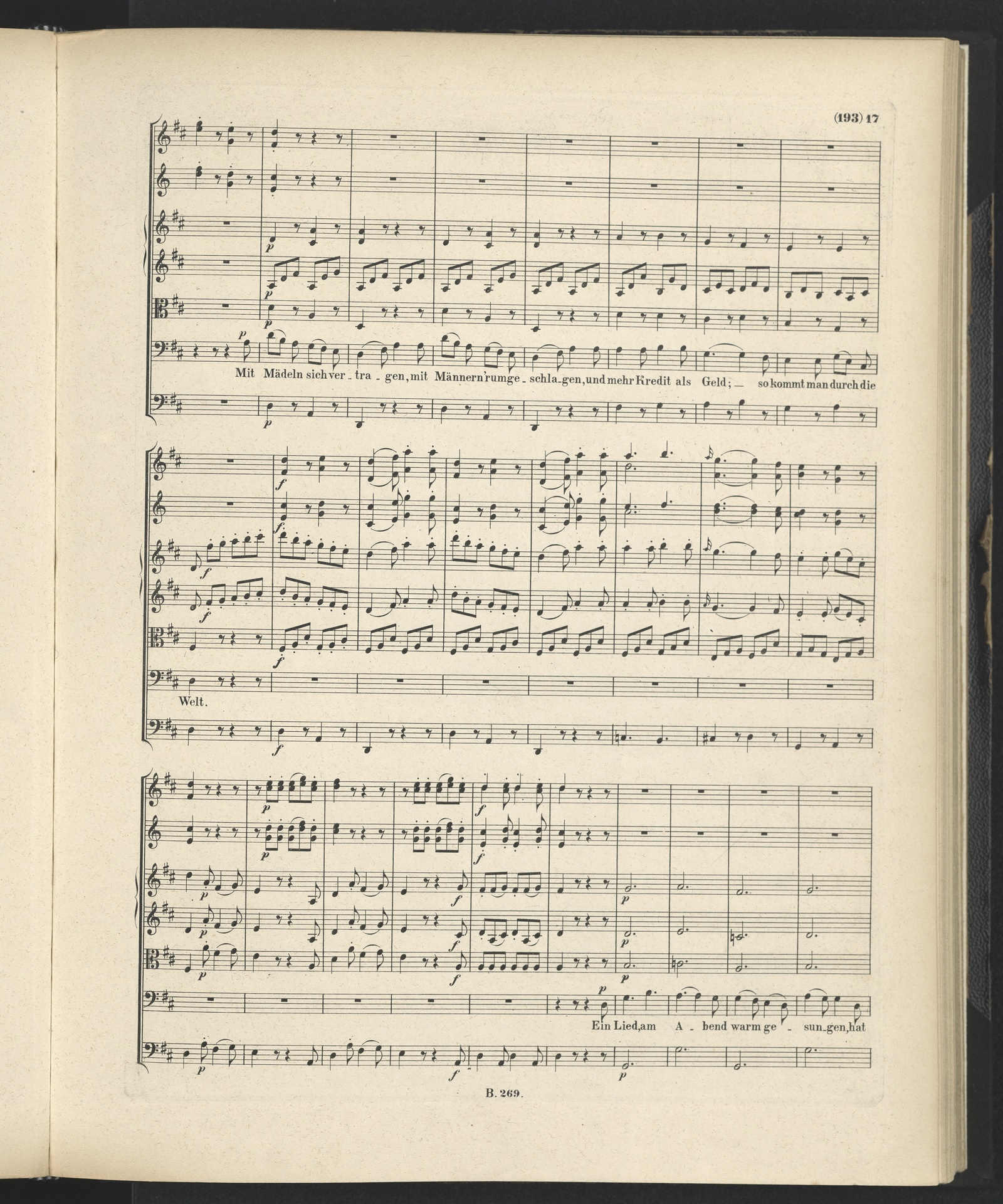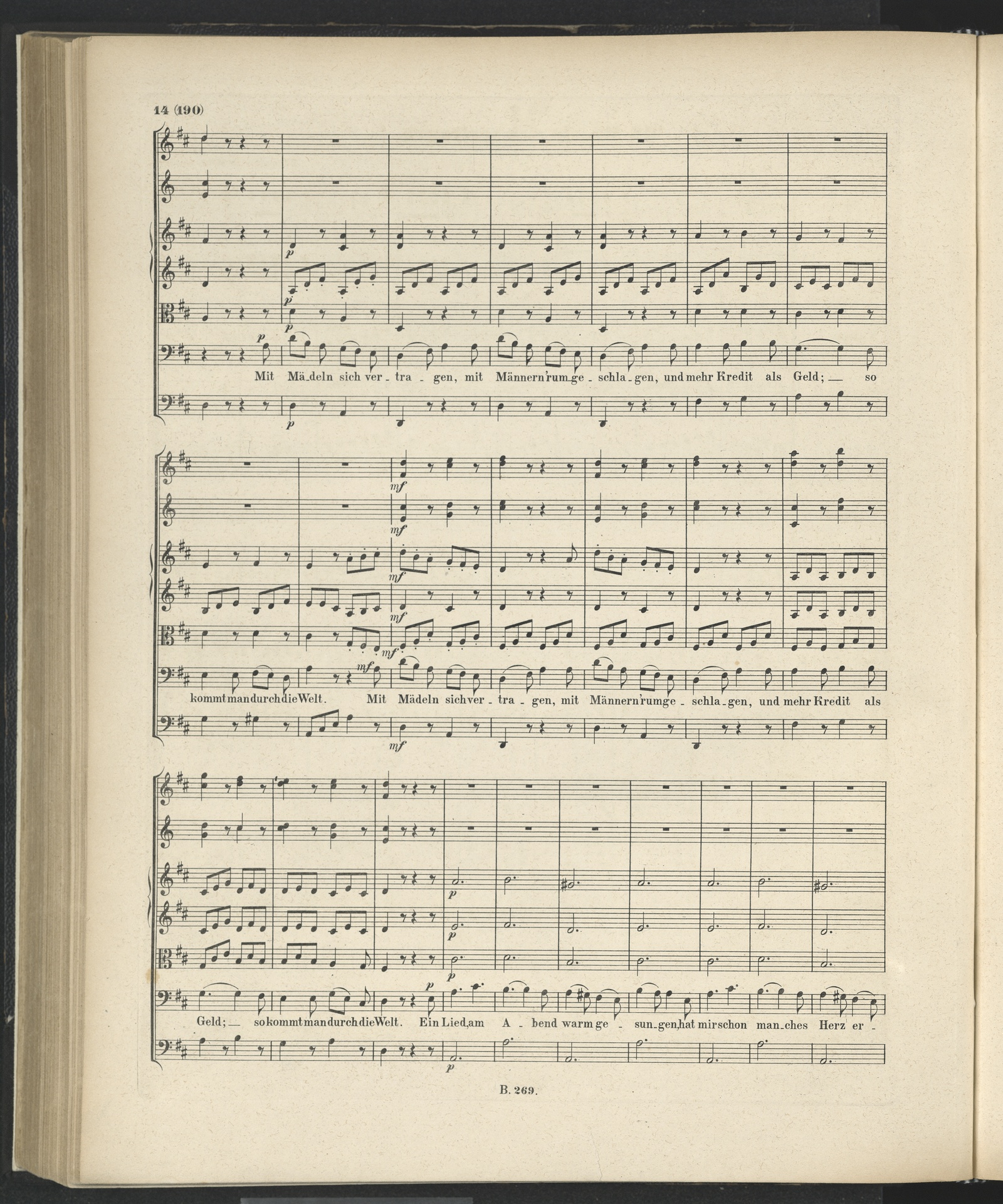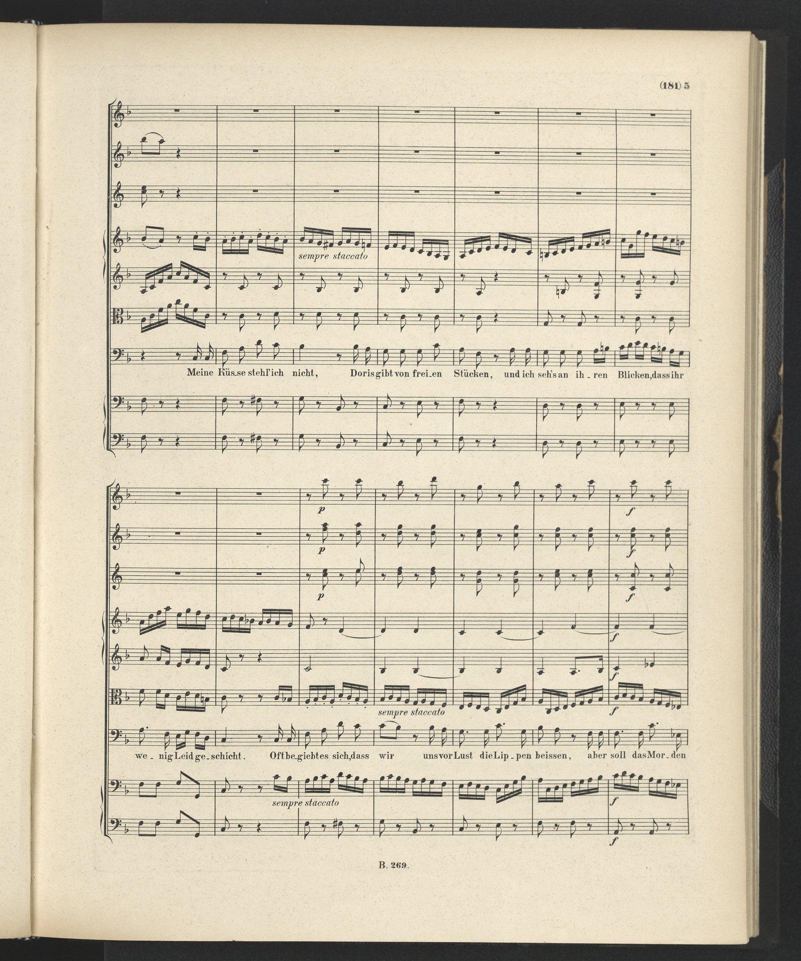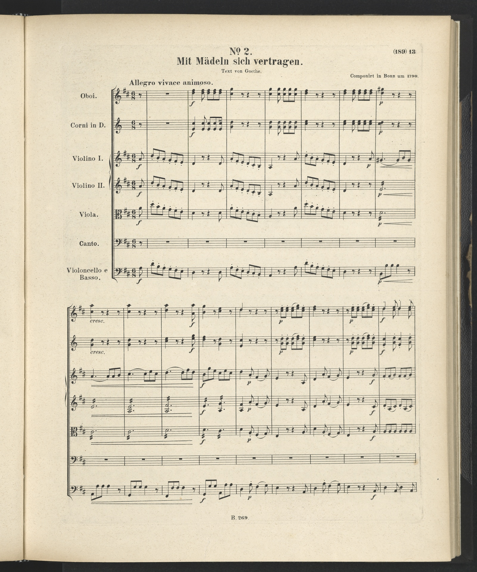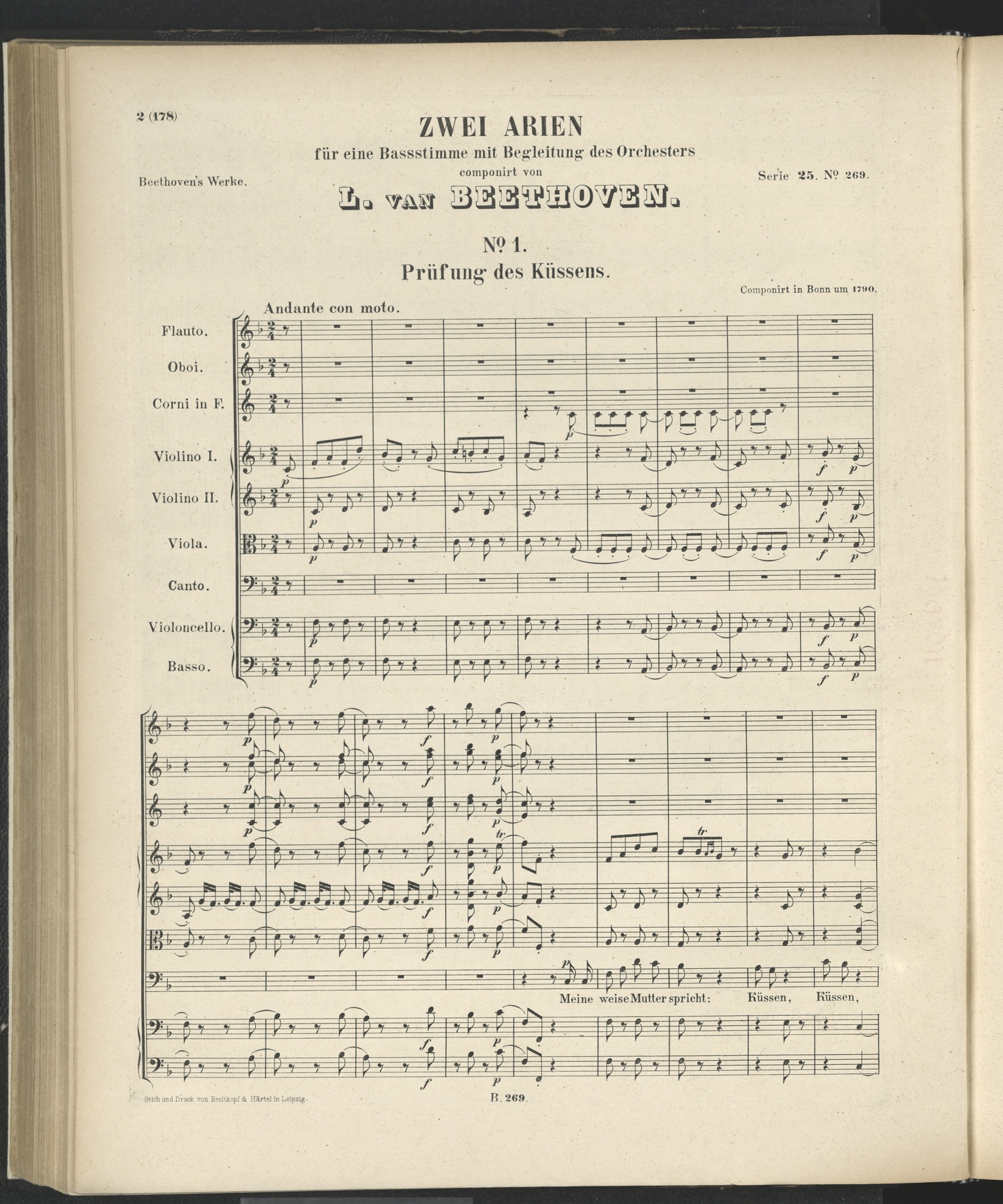 Ludwig van Beethoven, "Prüfung des Küssens" und "Mit Mädeln sich vertragen", Arien für Bass und Orchester WoO 89 und WoO 90, Partitur, Breitkopf und Härtel, 269
