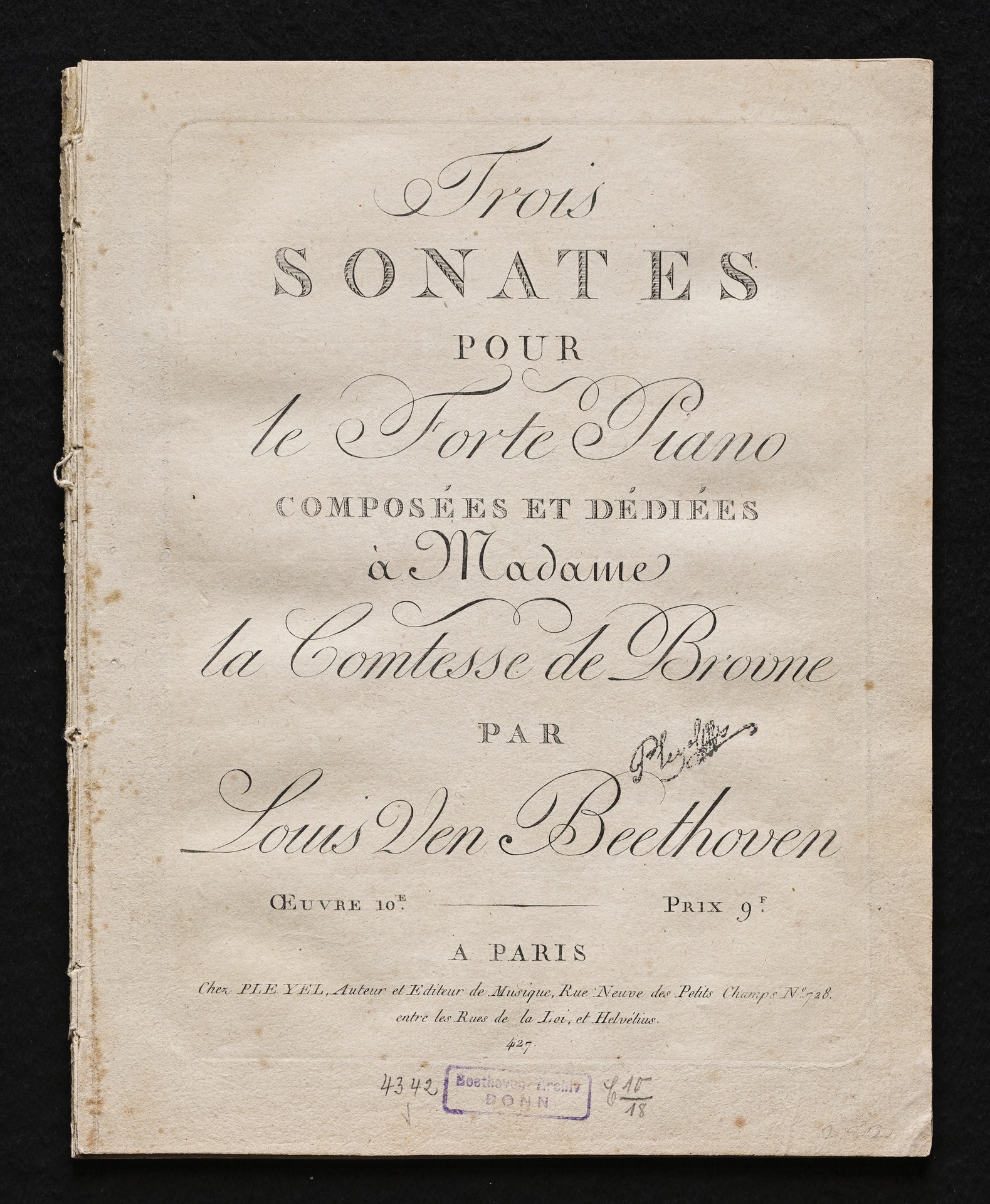 Ludwig van Beethoven, Sonaten für Klavier (c-Moll, F-Dur, D-Dur) op. 10, 1-3, Pleyel, 427