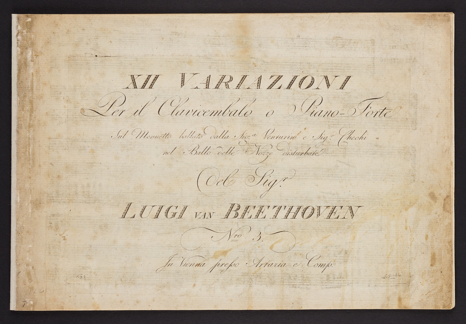 Ludwig van Beethoven, Variationen über das "Menuett à la Viganò" aus dem Ballett "Le nozze disturbate" von Jakob Haibel für Klavier (C-Dur) WoO 68, Artaria, 623