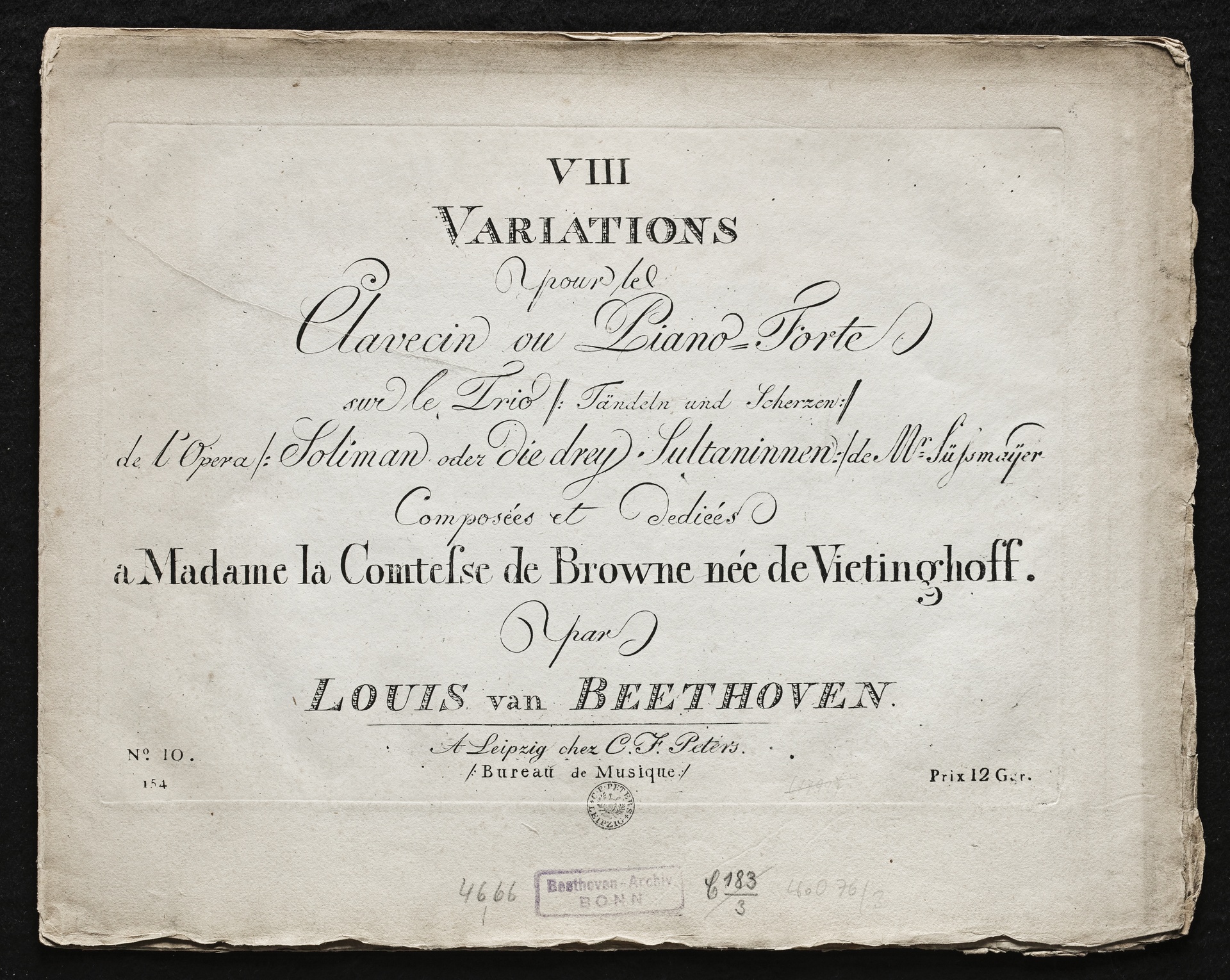 Ludwig van Beethoven, Variationen über das Terzett "Tändeln und Scherzen" aus Franz Xaver Süßmayrs Oper "Soliman II oder die drei Sultaninnen" für Klavier (F-Dur) WoO 76, Peters, 154