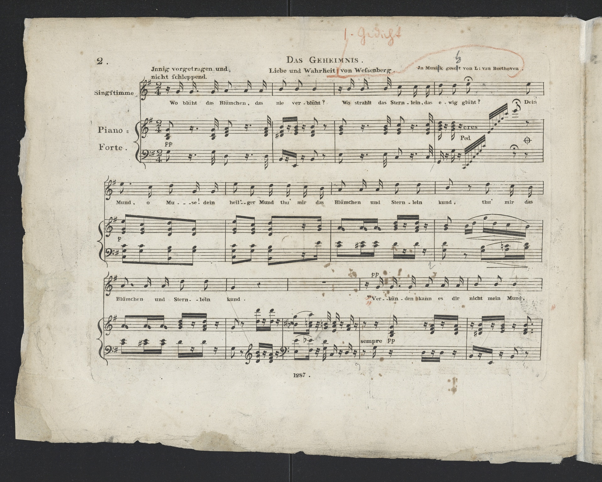 Ludwig van BeethovenIgnaz Heinrich von Wessenberg, "Das Geheimnis", Lied für Singstimme und Klavier WoO 145, Simrock, 1287