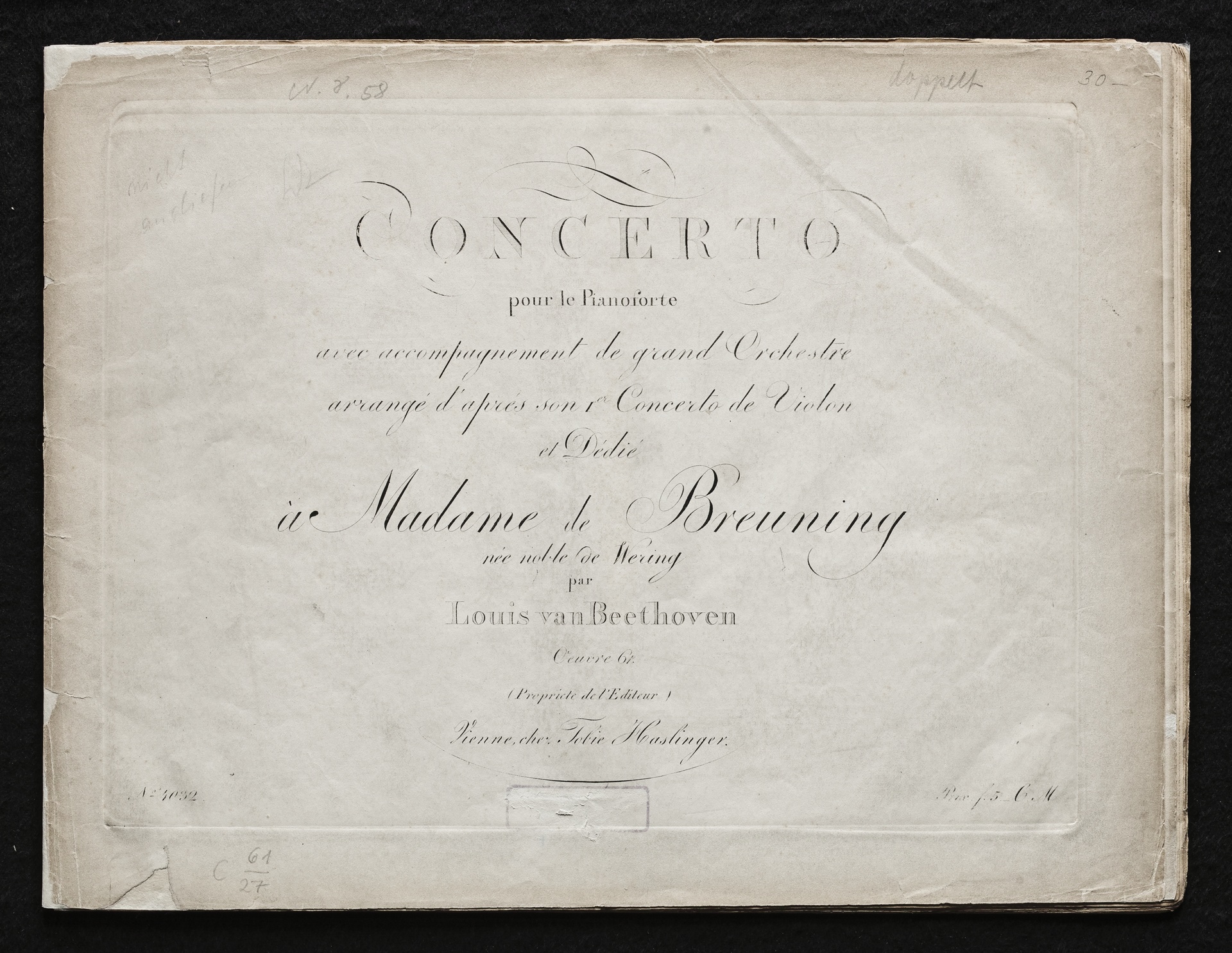 Ludwig van Beethoven, Konzert für Violine (D-Dur) op. 61, Fassung für Klavier, Stimme, Haslinger, 4032