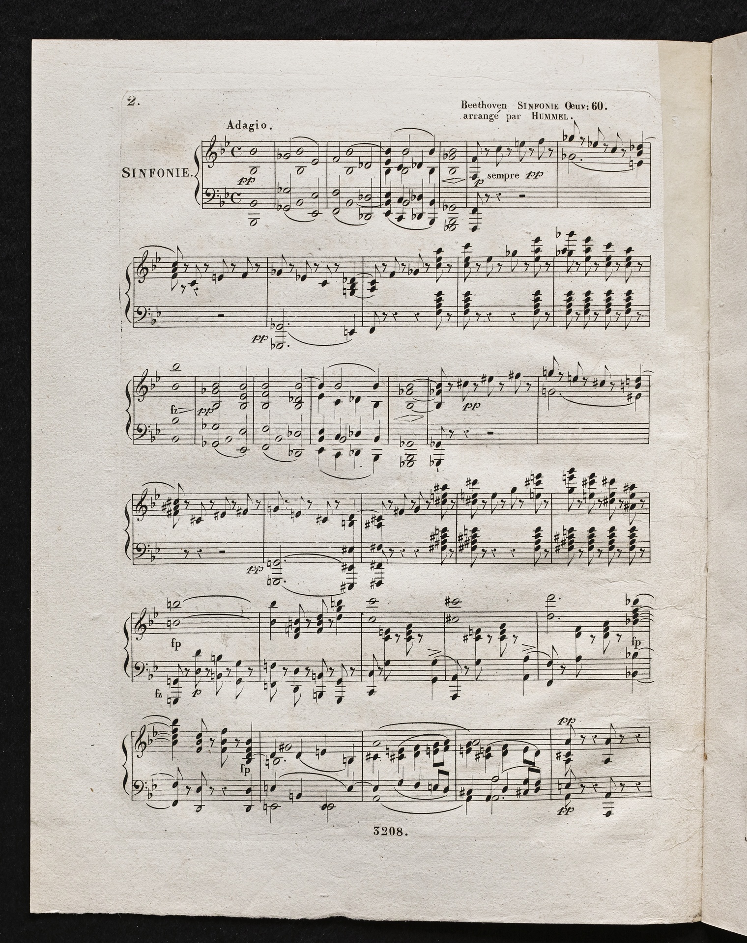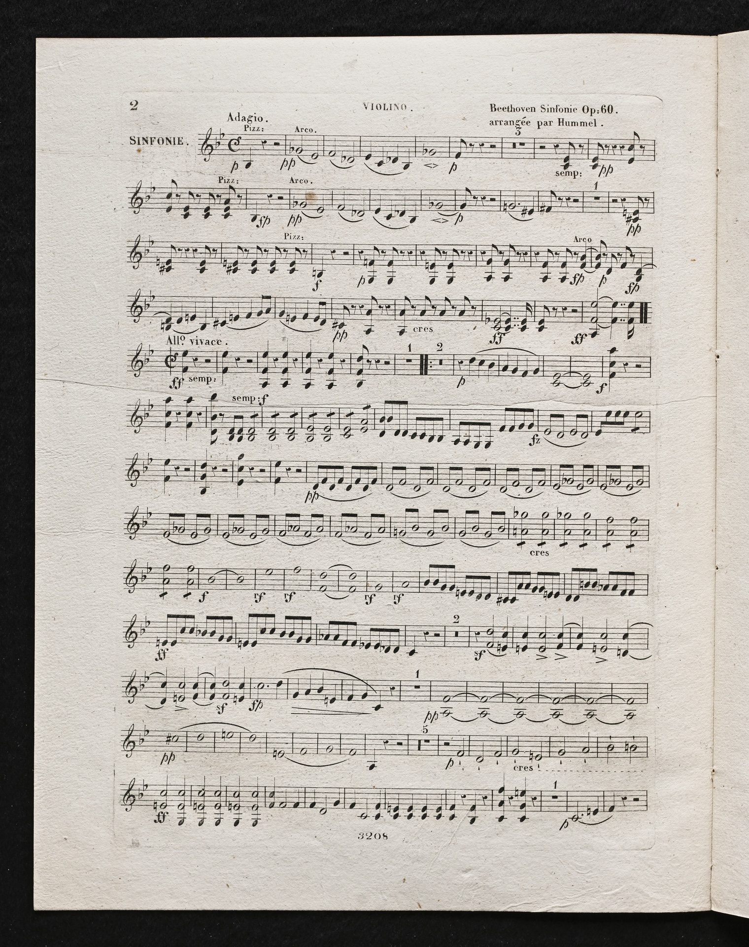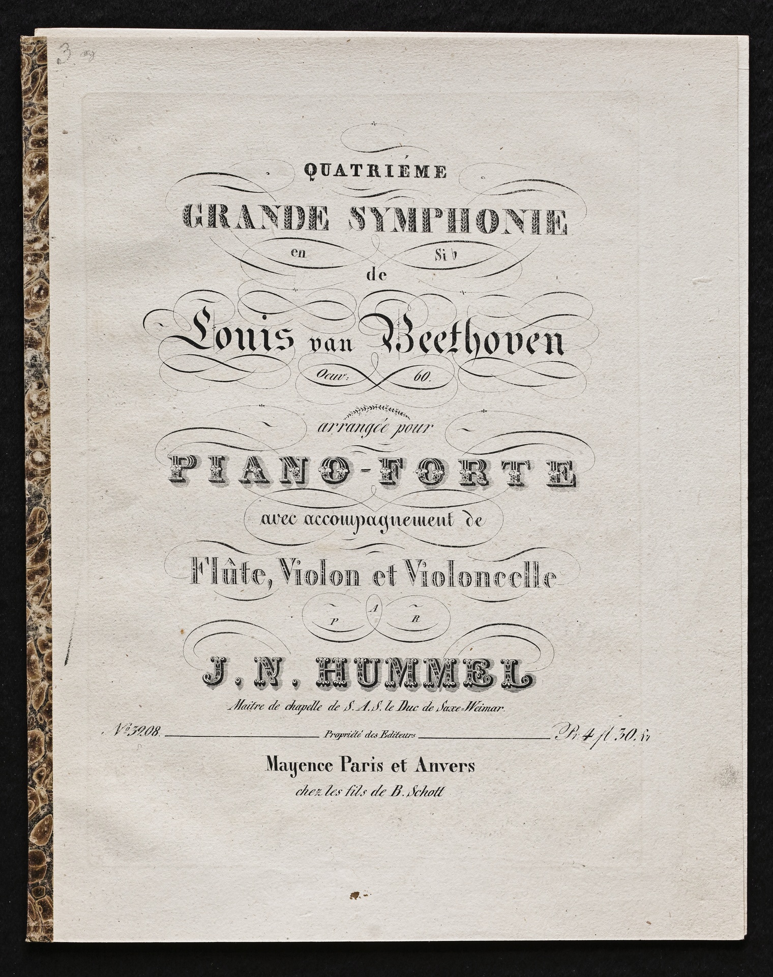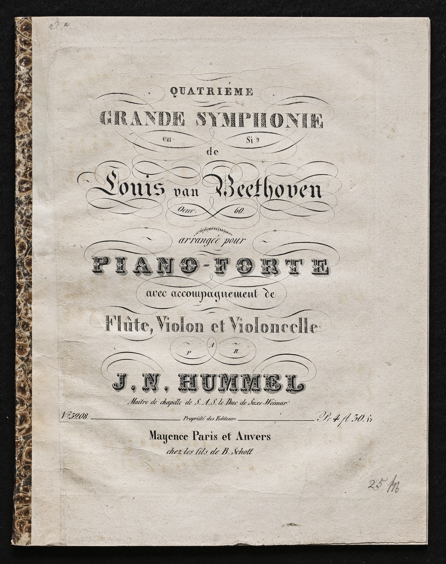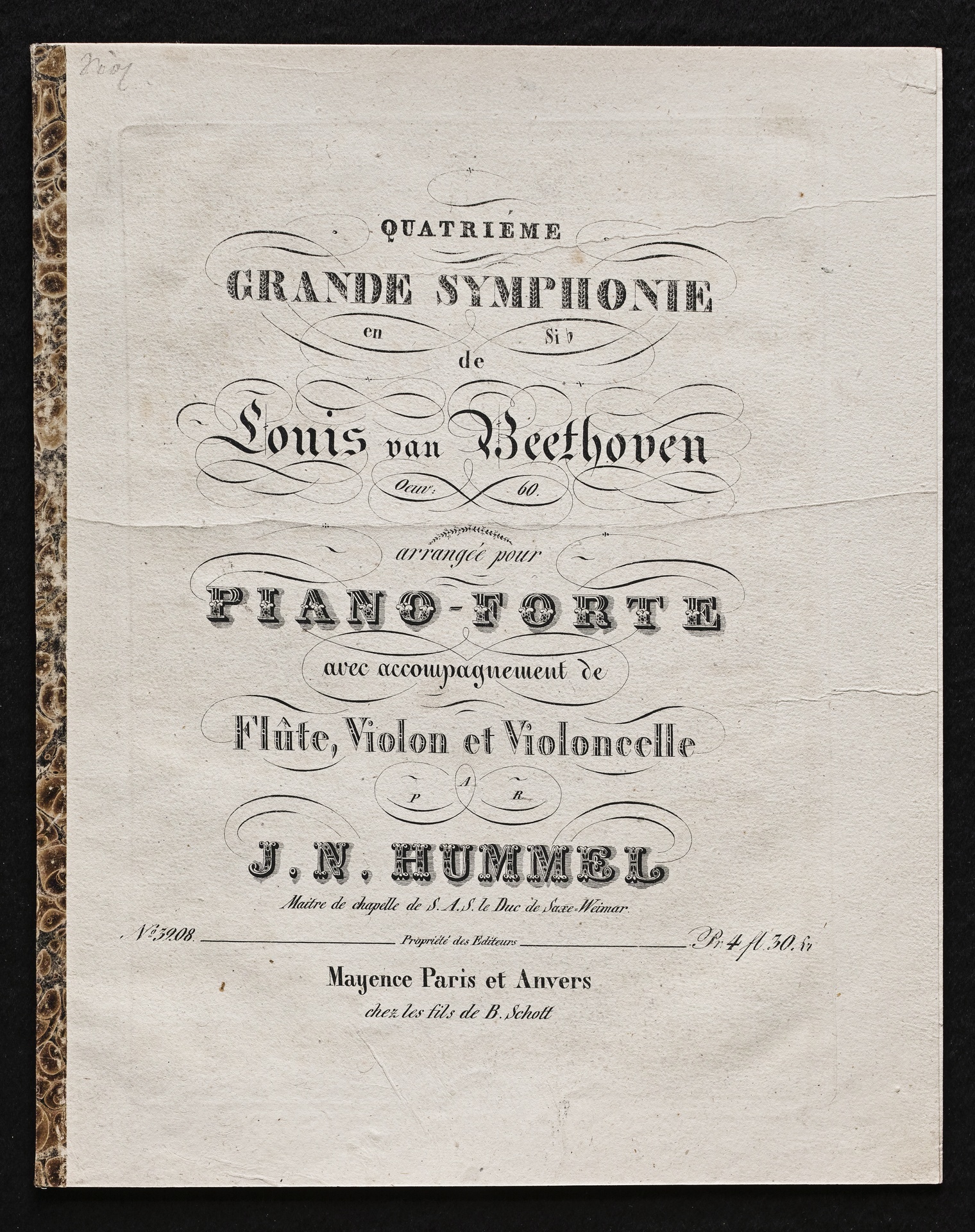 Ludwig van Beethoven, Sinfonie Nr. 4 (B-Dur) op. 60, Bearbeitung für Flöte, Violine, Violoncello, Klavier von Johann Nepomuk Hummel, Stimmen, Schott, 3208