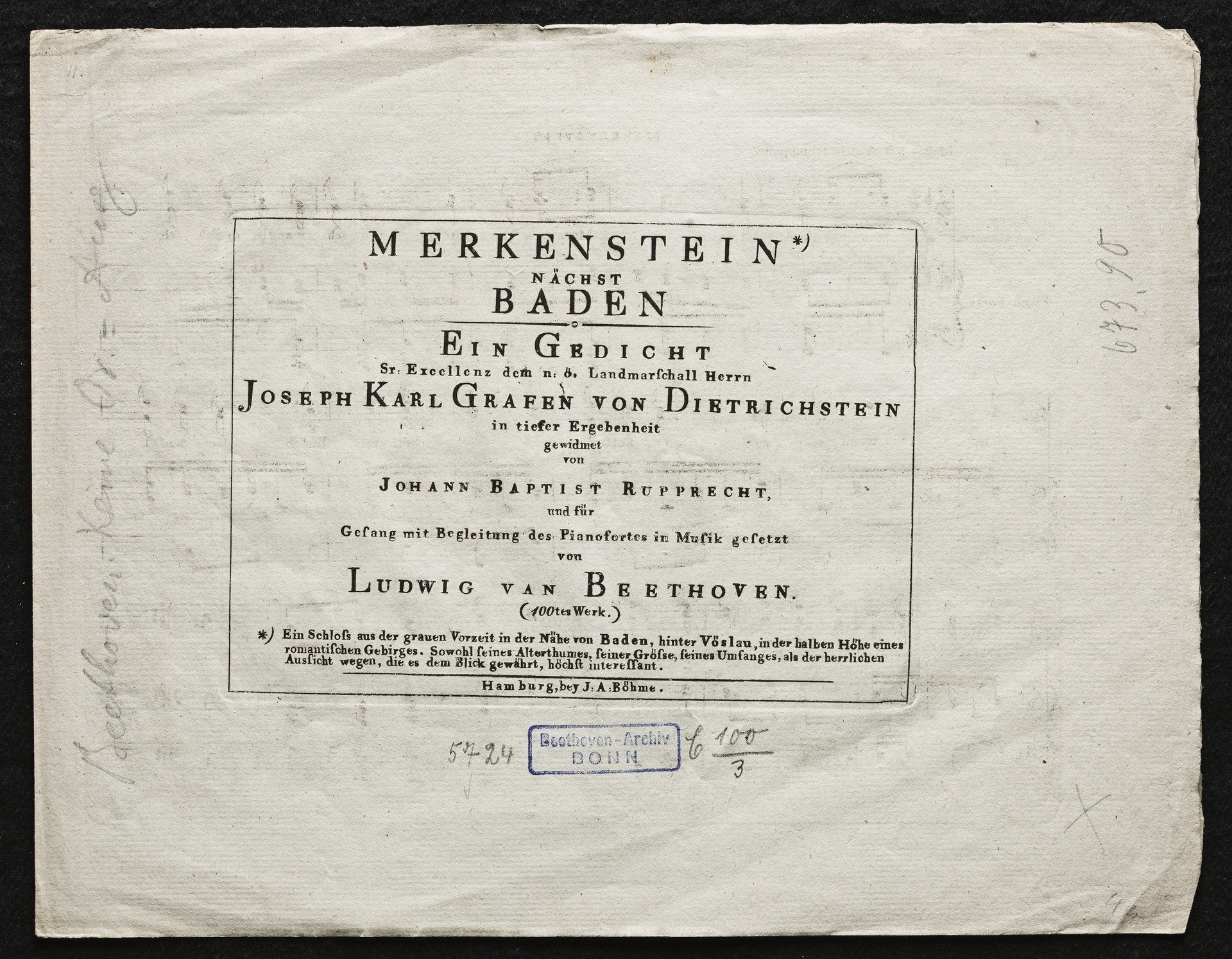 Ludwig van BeethovenJohann Baptist Rupprecht, "Merkenstein", Lied für 2 Singstimmen und Klavier op. 100, Böhme