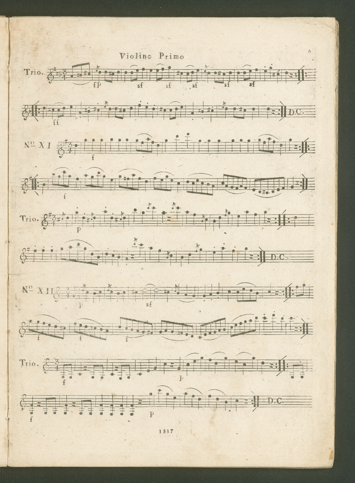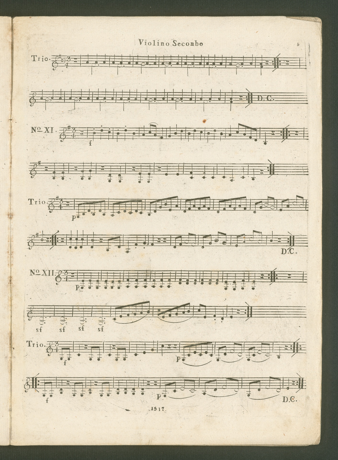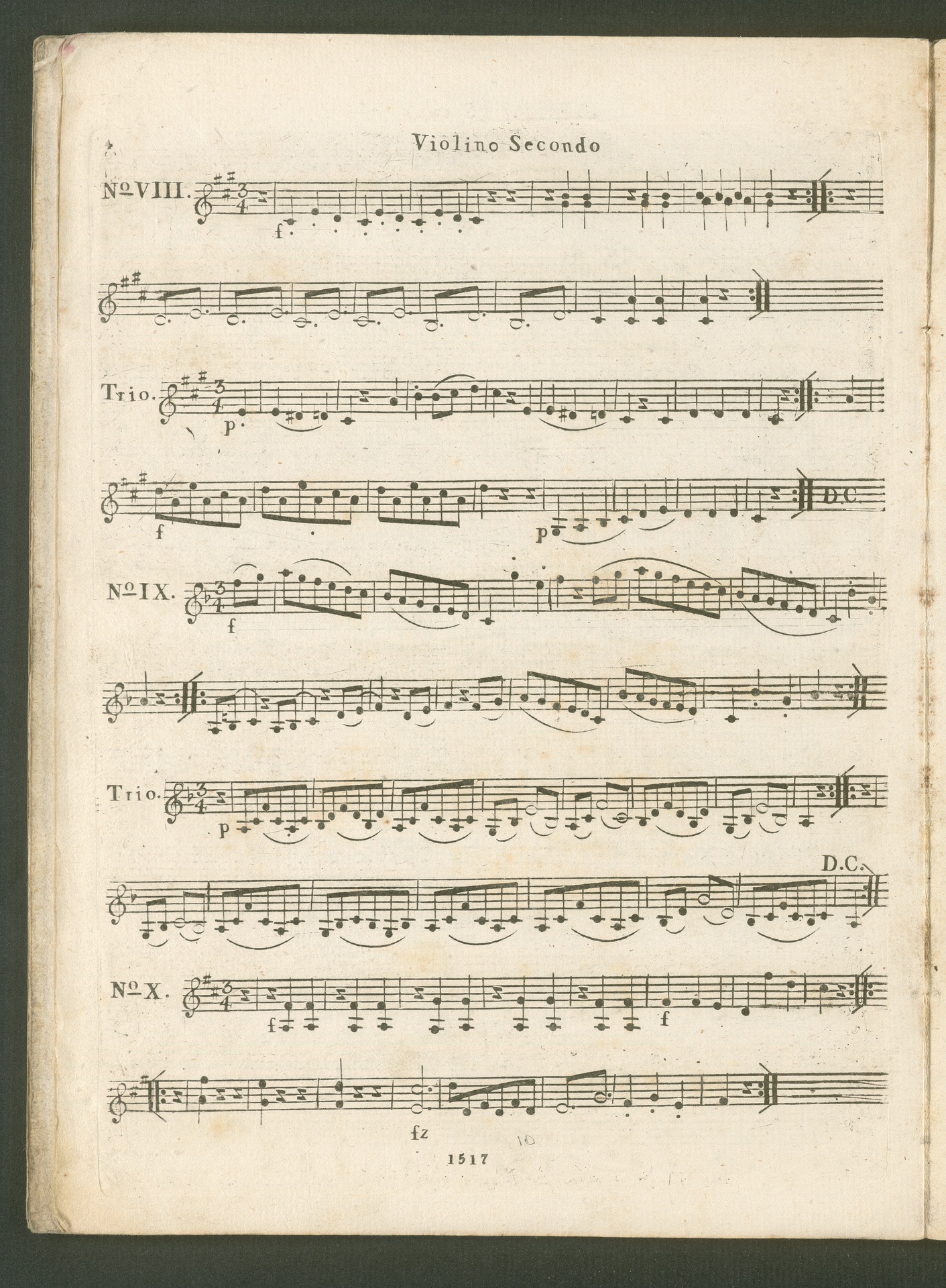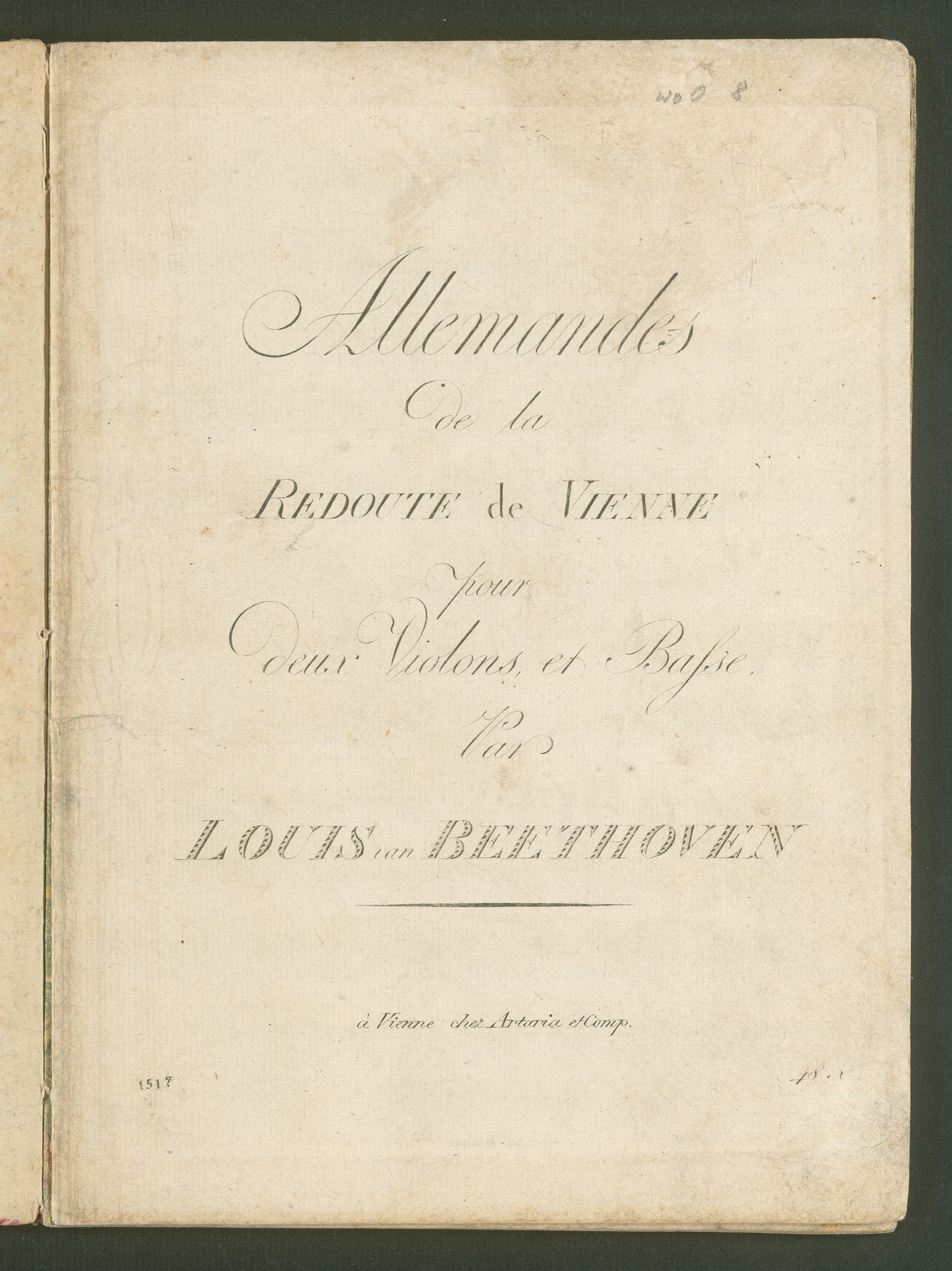 Ludwig van Beethoven, Deutsche Tänze für Orchester WoO 8, 1-12, Fassung für 2 Violinen, Violoncello, Stimmen, Artaria, 1517