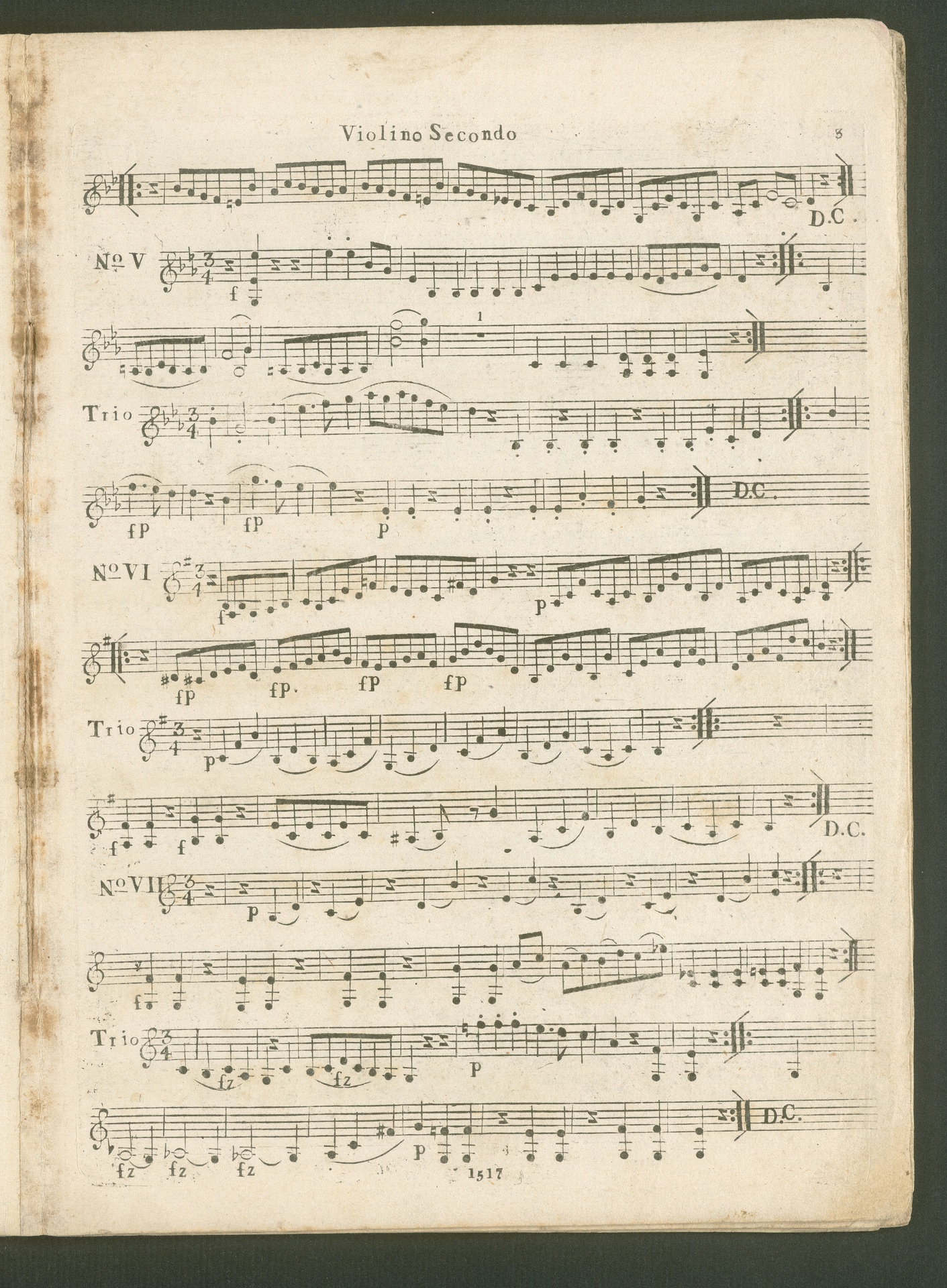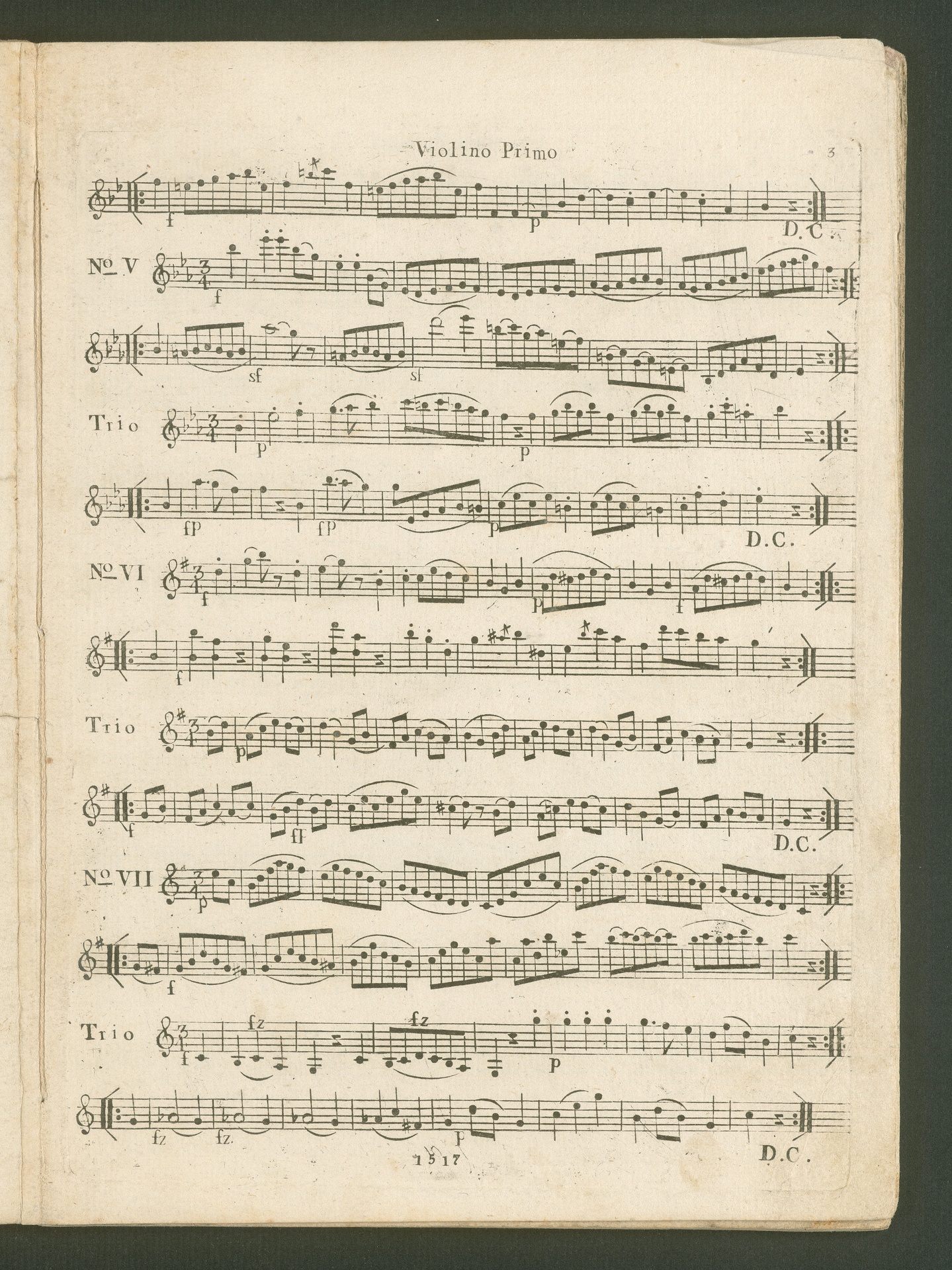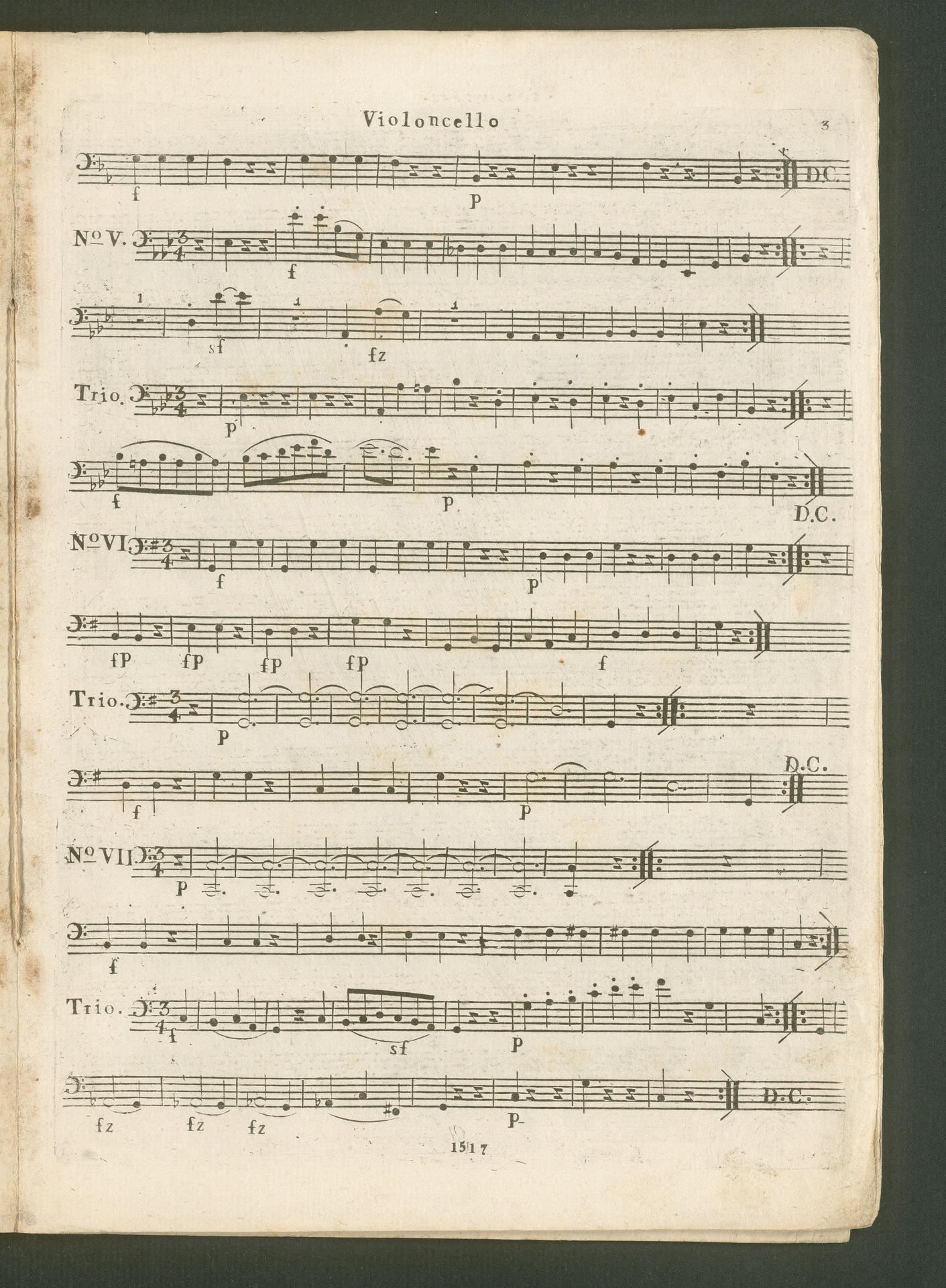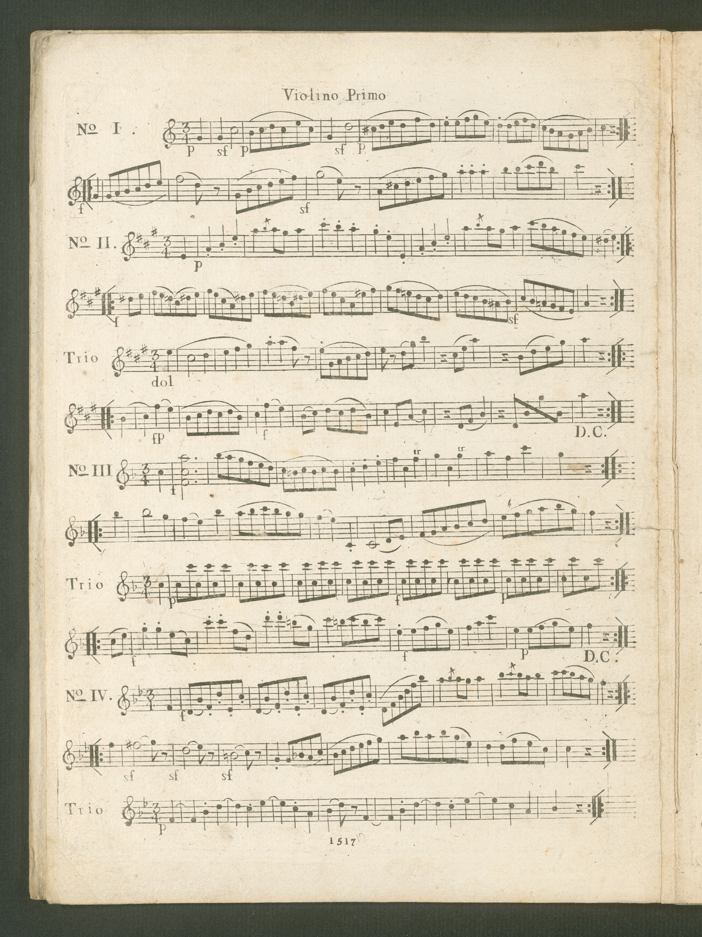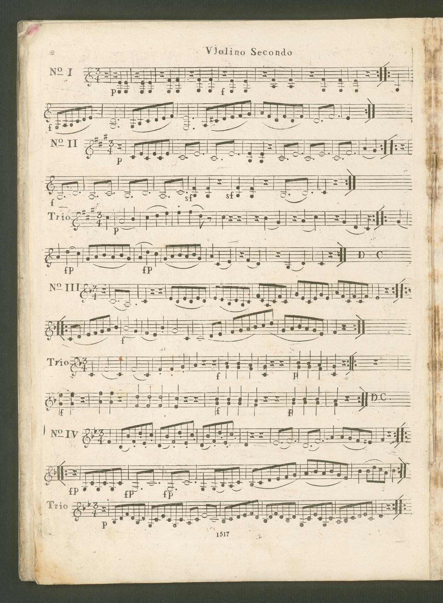 Ludwig van Beethoven, Deutsche Tänze für Orchester WoO 8, 1-12, Fassung für 2 Violinen, Violoncello, Stimmen, Artaria, 1517