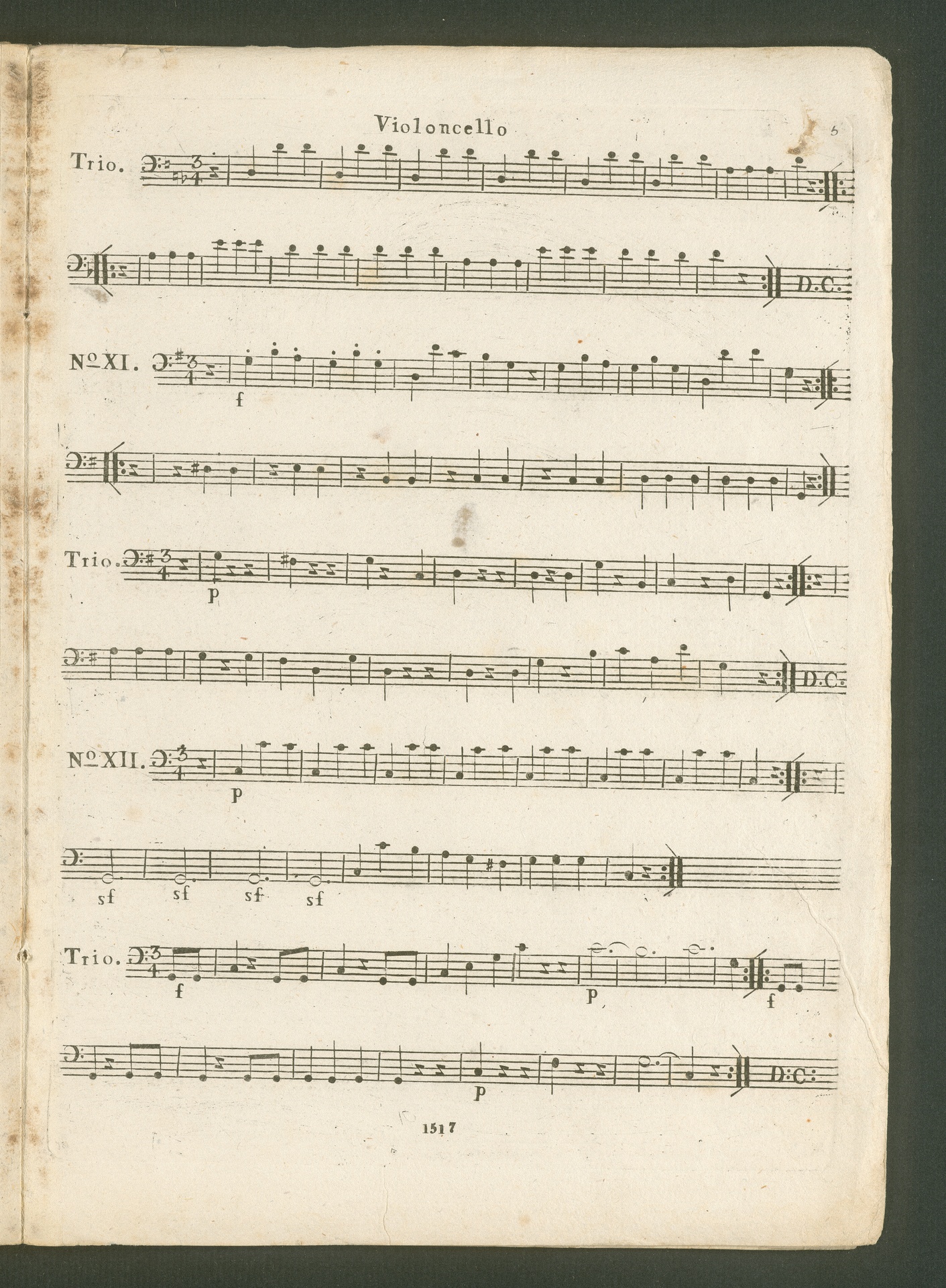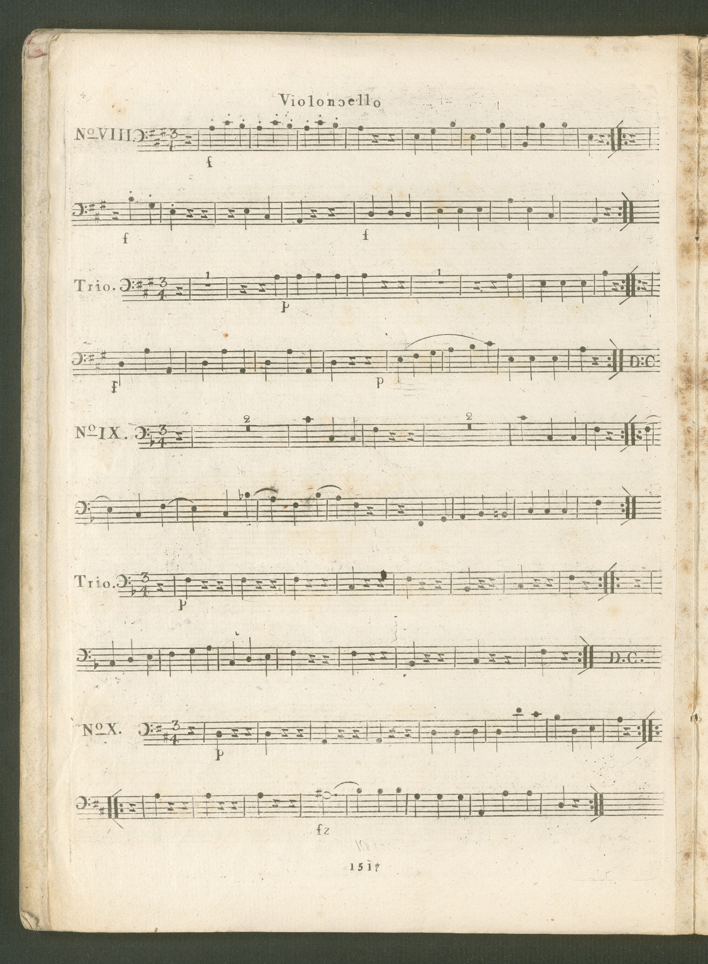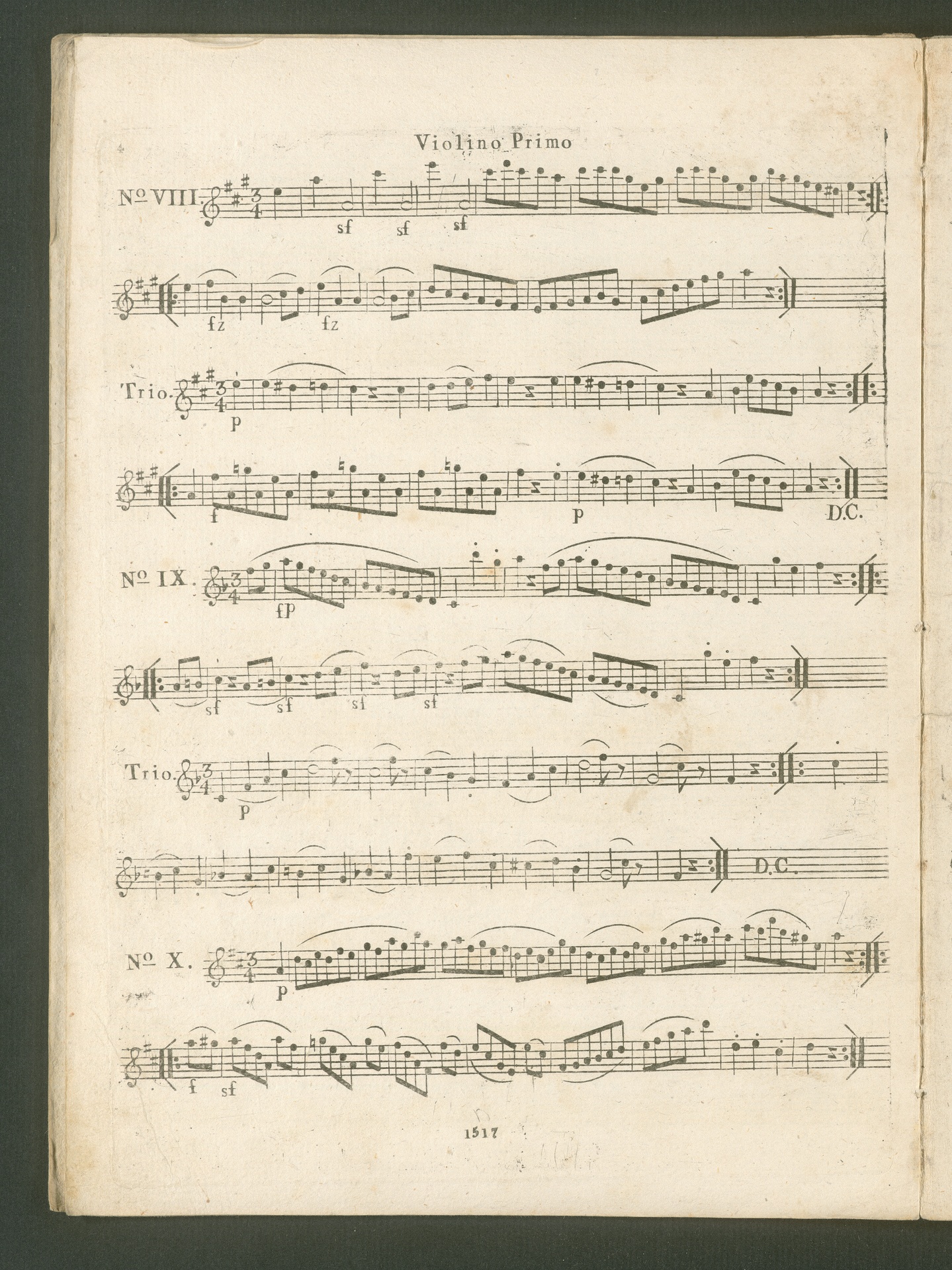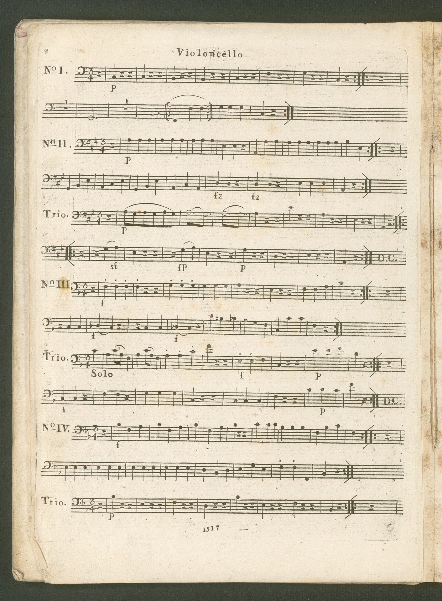 Ludwig van Beethoven, Deutsche Tänze für Orchester WoO 8, 1-12, Fassung für 2 Violinen, Violoncello, Stimmen, Artaria, 1517