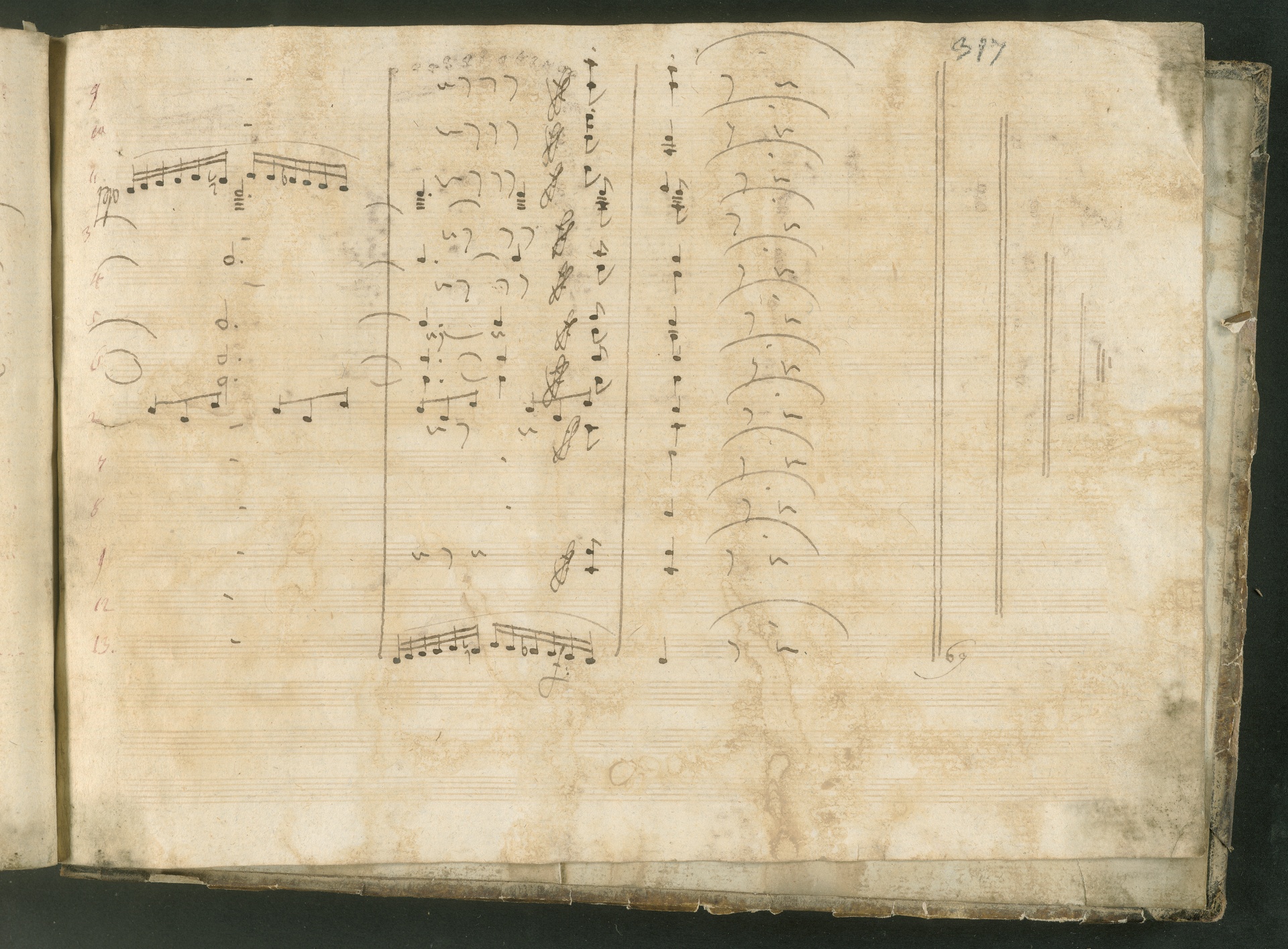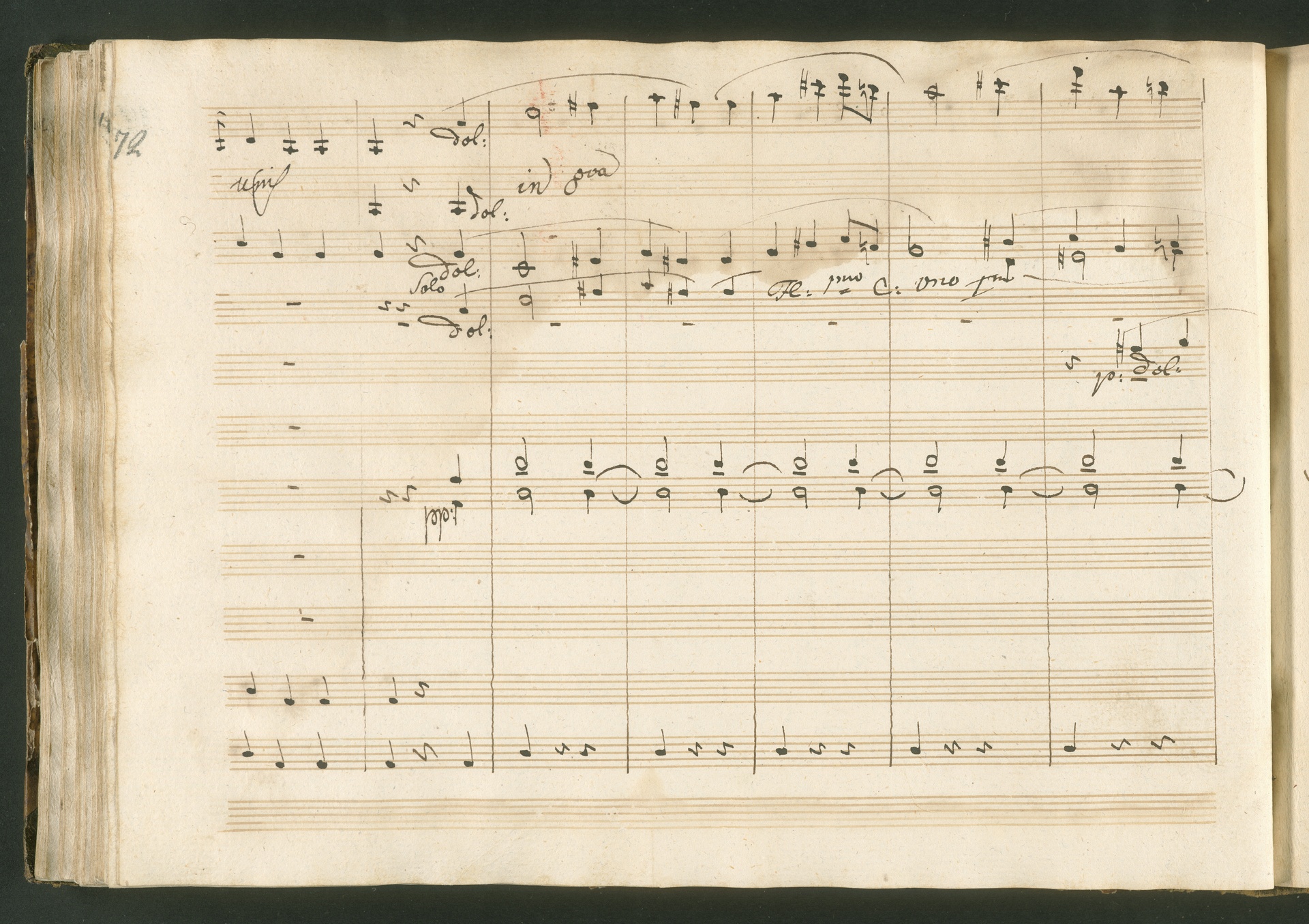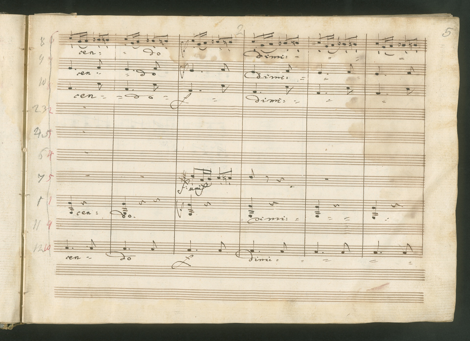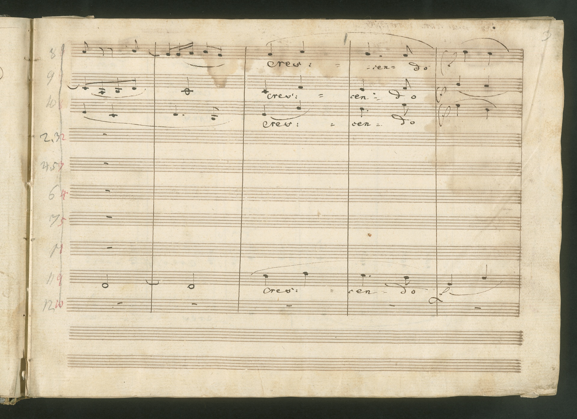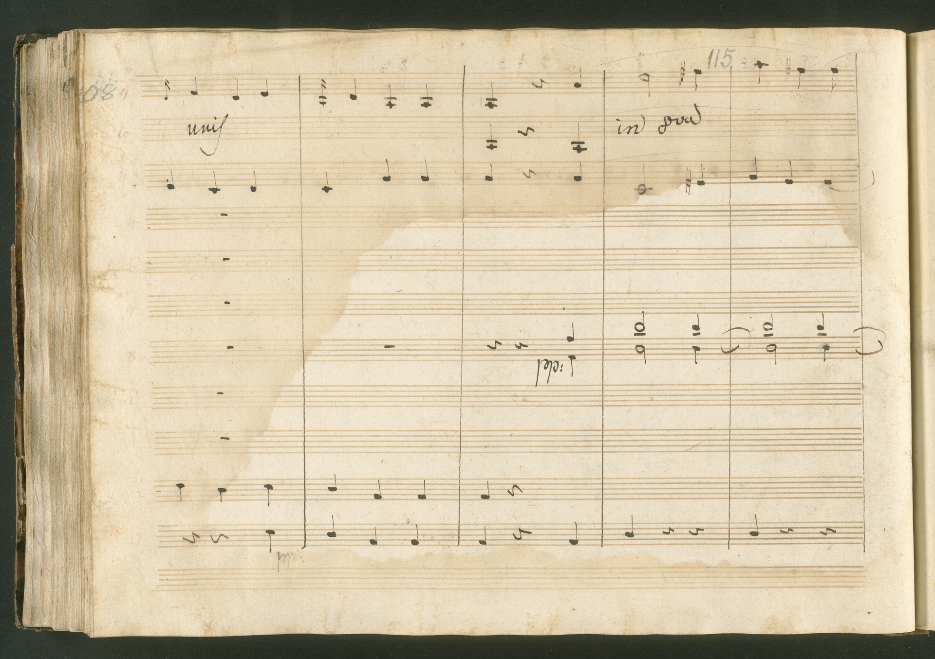 The manuscript shown here is a corrected copy of the Sixth Symphony, the "Pastoral". Beethoven sold the publisher Gottfried Christoph Härtel his Fifth and Sixth Symphonies (op. 67 und 68) in September 1808 on his visit to Vienna. The surviving correspondence shows that Beethoven did not give Härtel autograph scores but corrected copies as engraver's models for the original edition