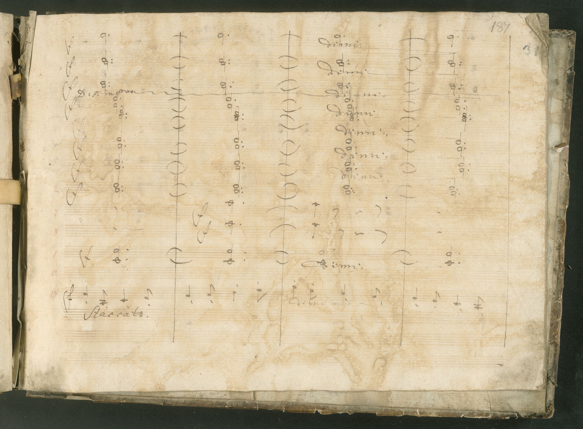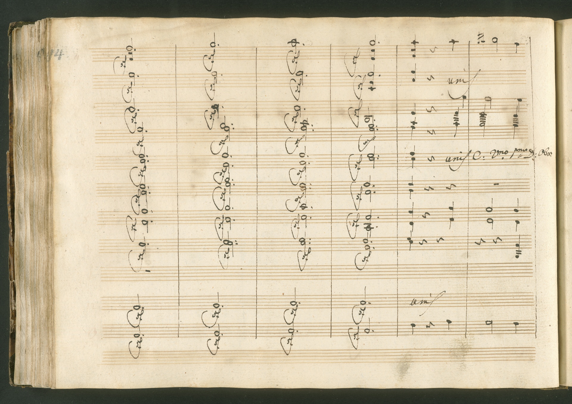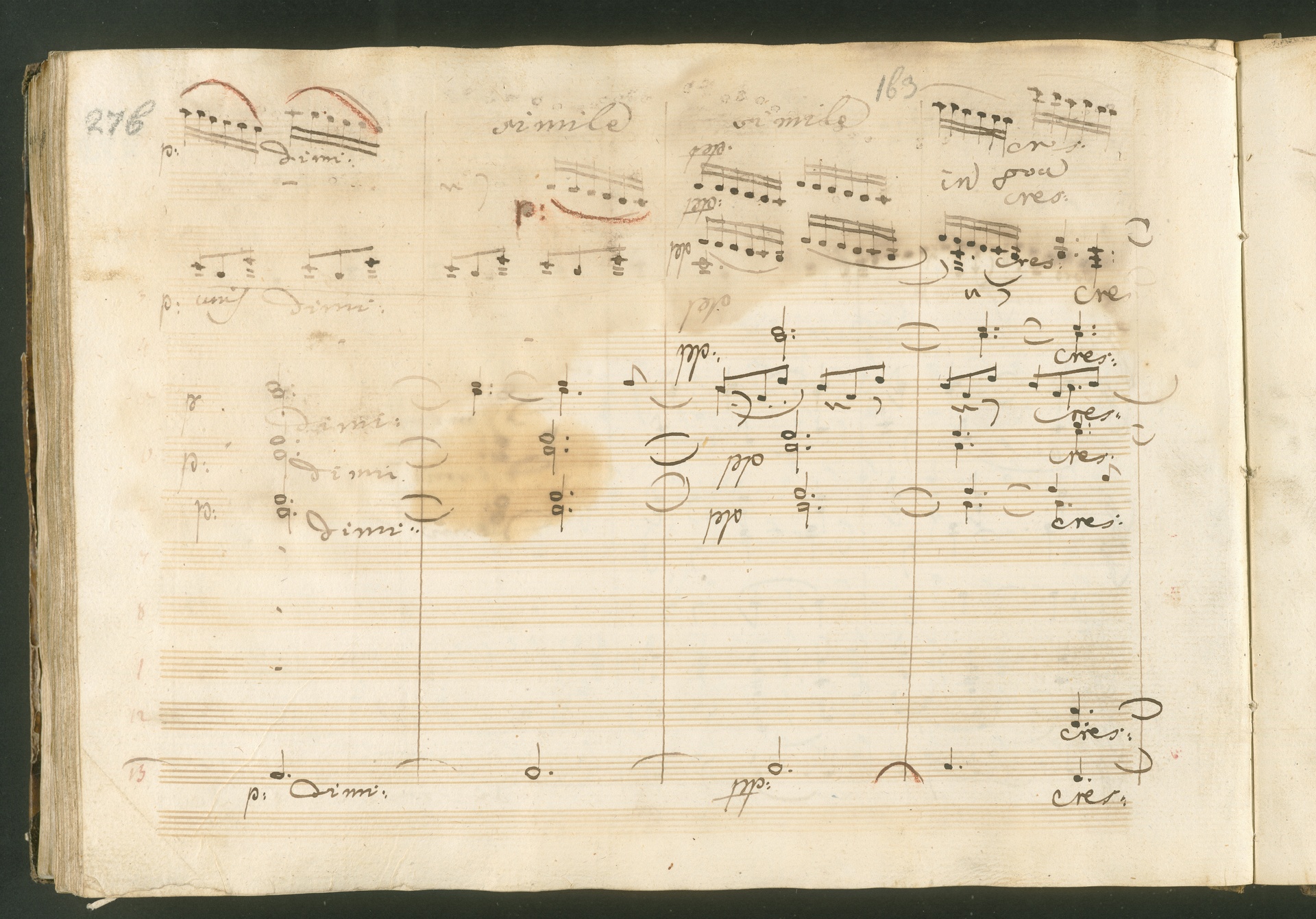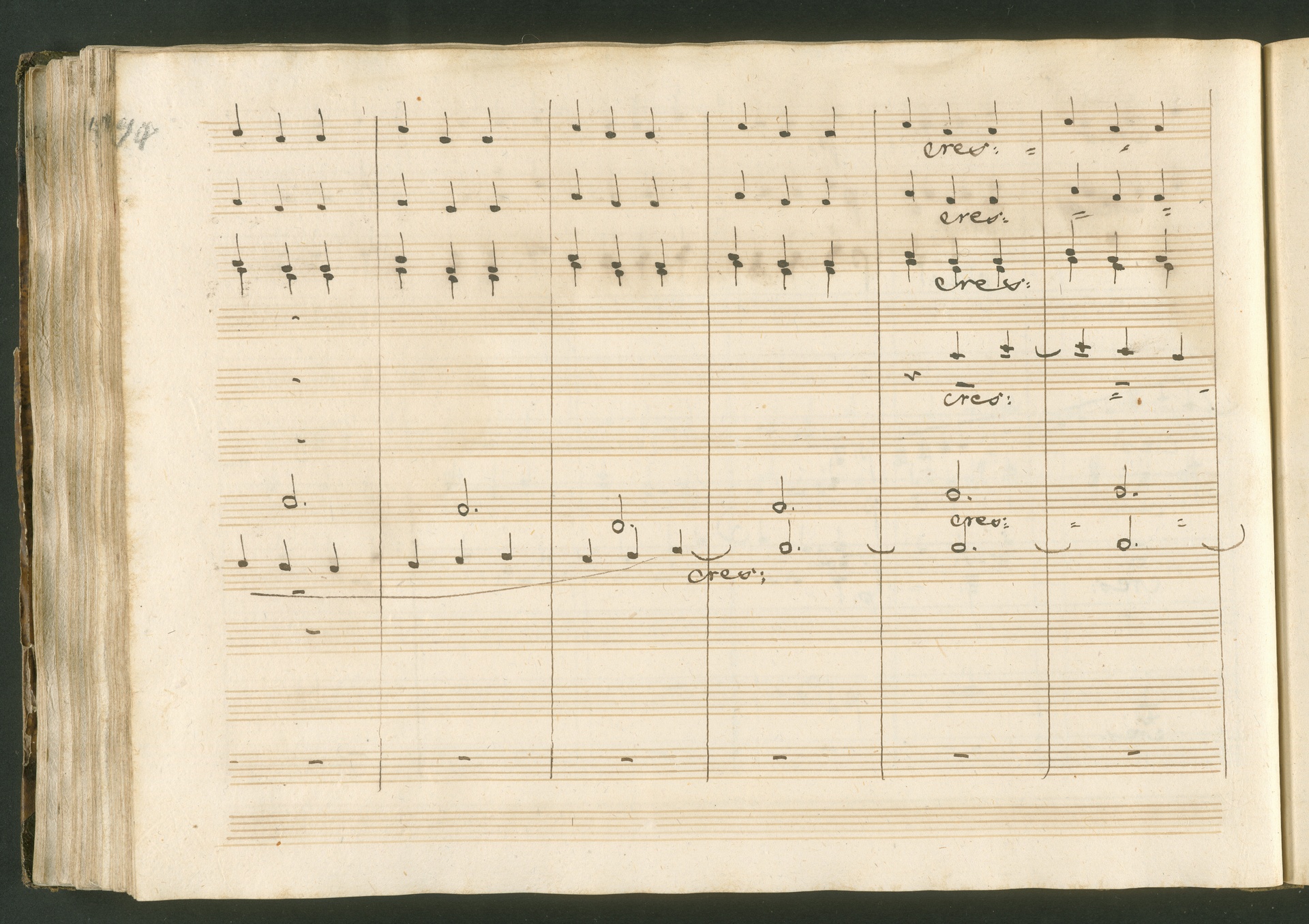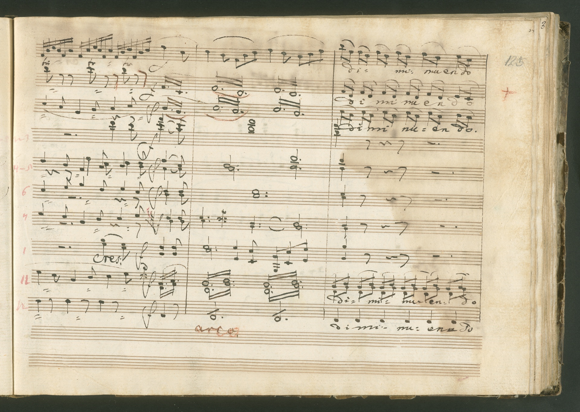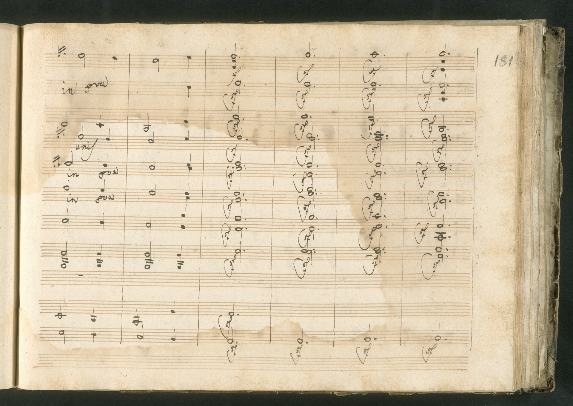 The manuscript shown here is a corrected copy of the Sixth Symphony, the "Pastoral". Beethoven sold the publisher Gottfried Christoph Härtel his Fifth and Sixth Symphonies (op. 67 und 68) in September 1808 on his visit to Vienna. The surviving correspondence shows that Beethoven did not give Härtel autograph scores but corrected copies as engraver's models for the original edition