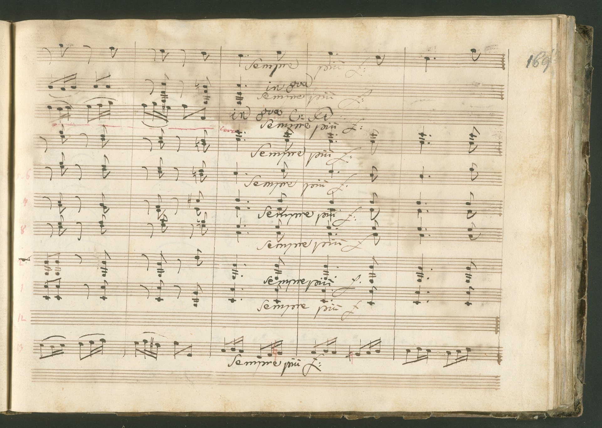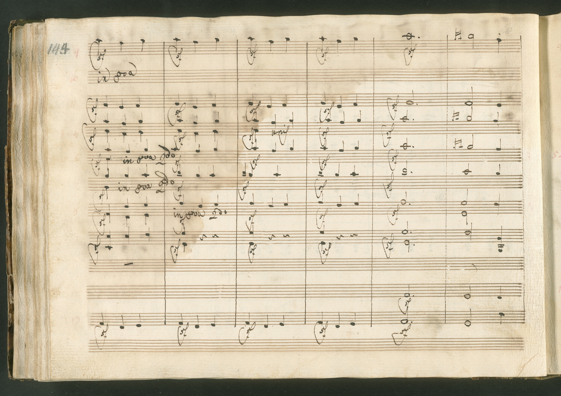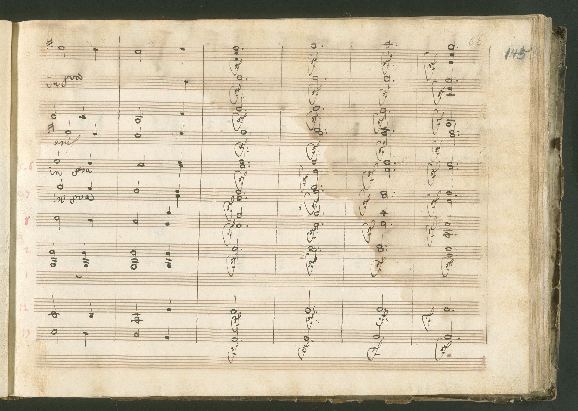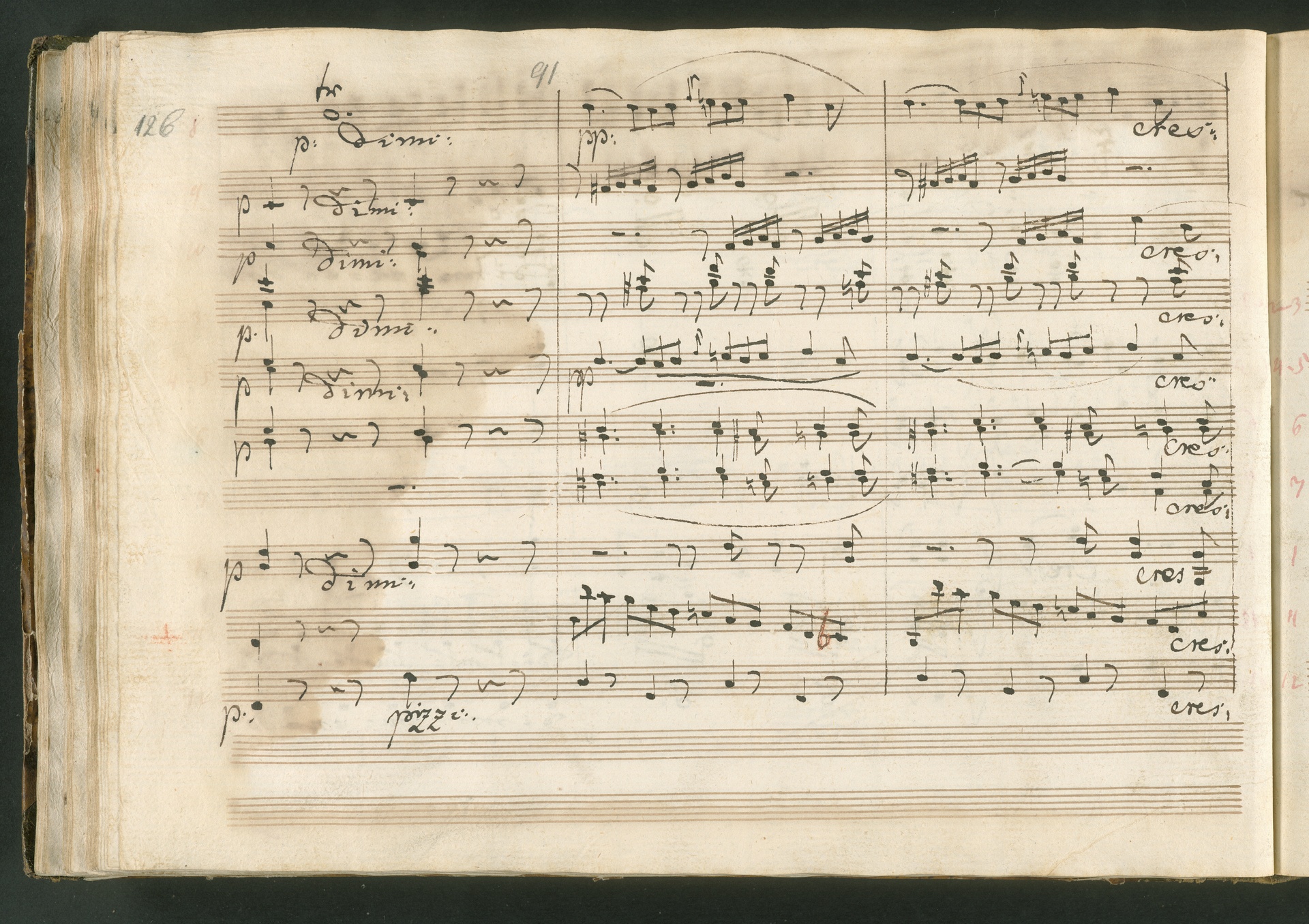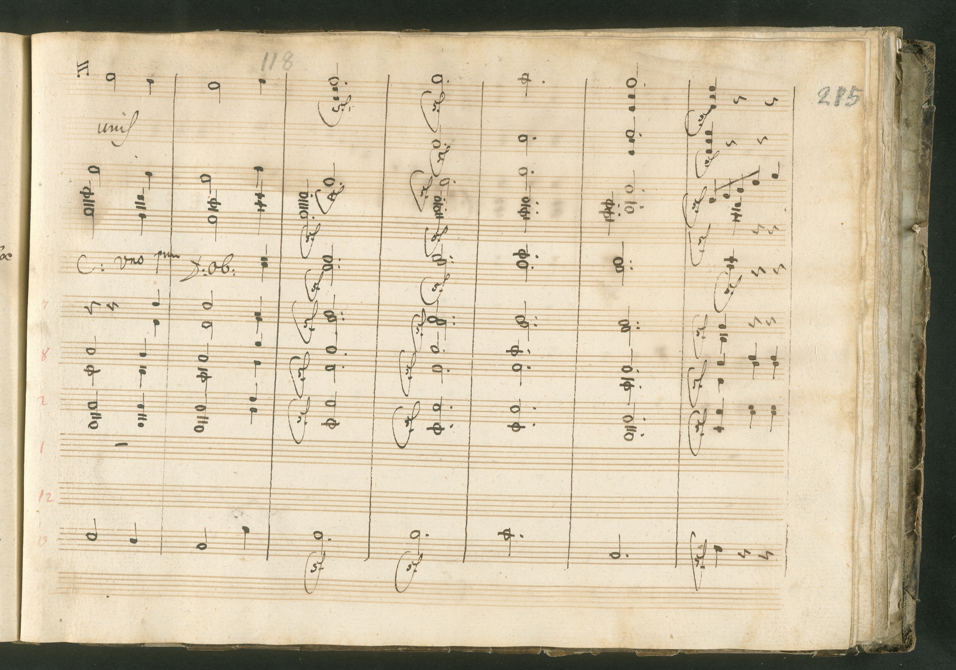 The manuscript shown here is a corrected copy of the Sixth Symphony, the "Pastoral". Beethoven sold the publisher Gottfried Christoph Härtel his Fifth and Sixth Symphonies (op. 67 und 68) in September 1808 on his visit to Vienna. The surviving correspondence shows that Beethoven did not give Härtel autograph scores but corrected copies as engraver's models for the original edition