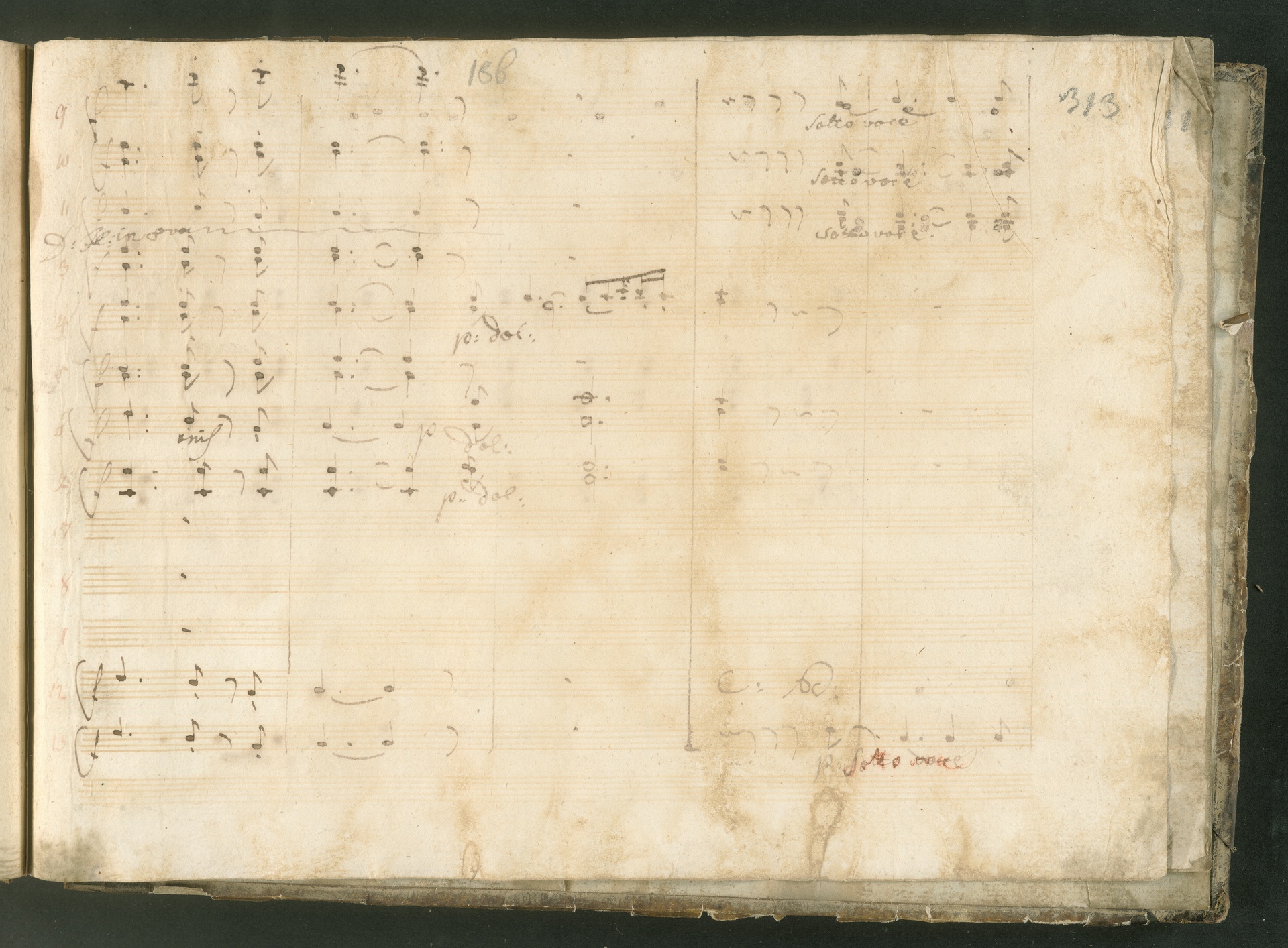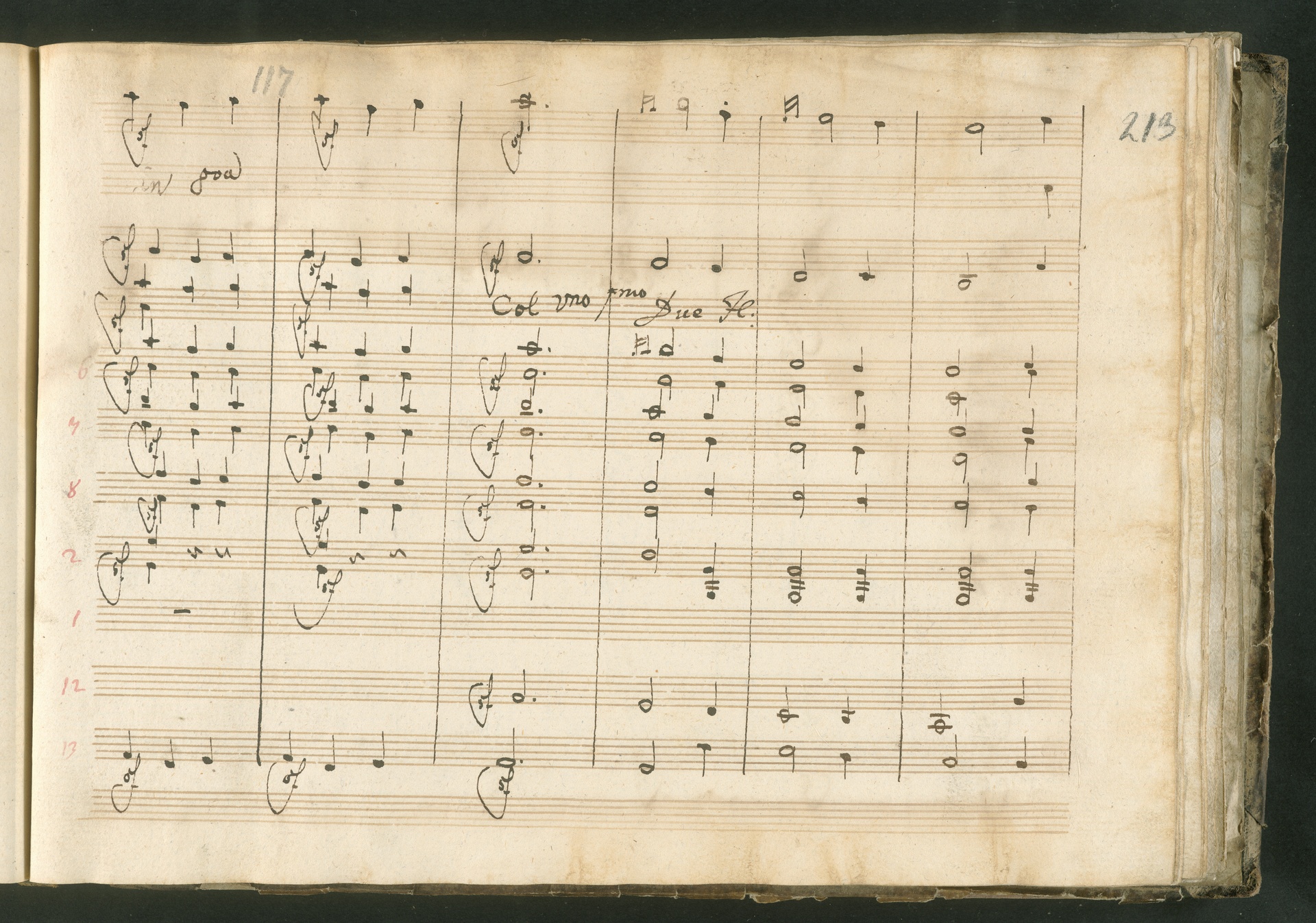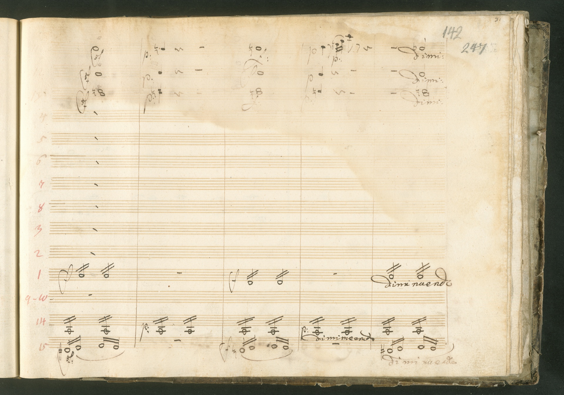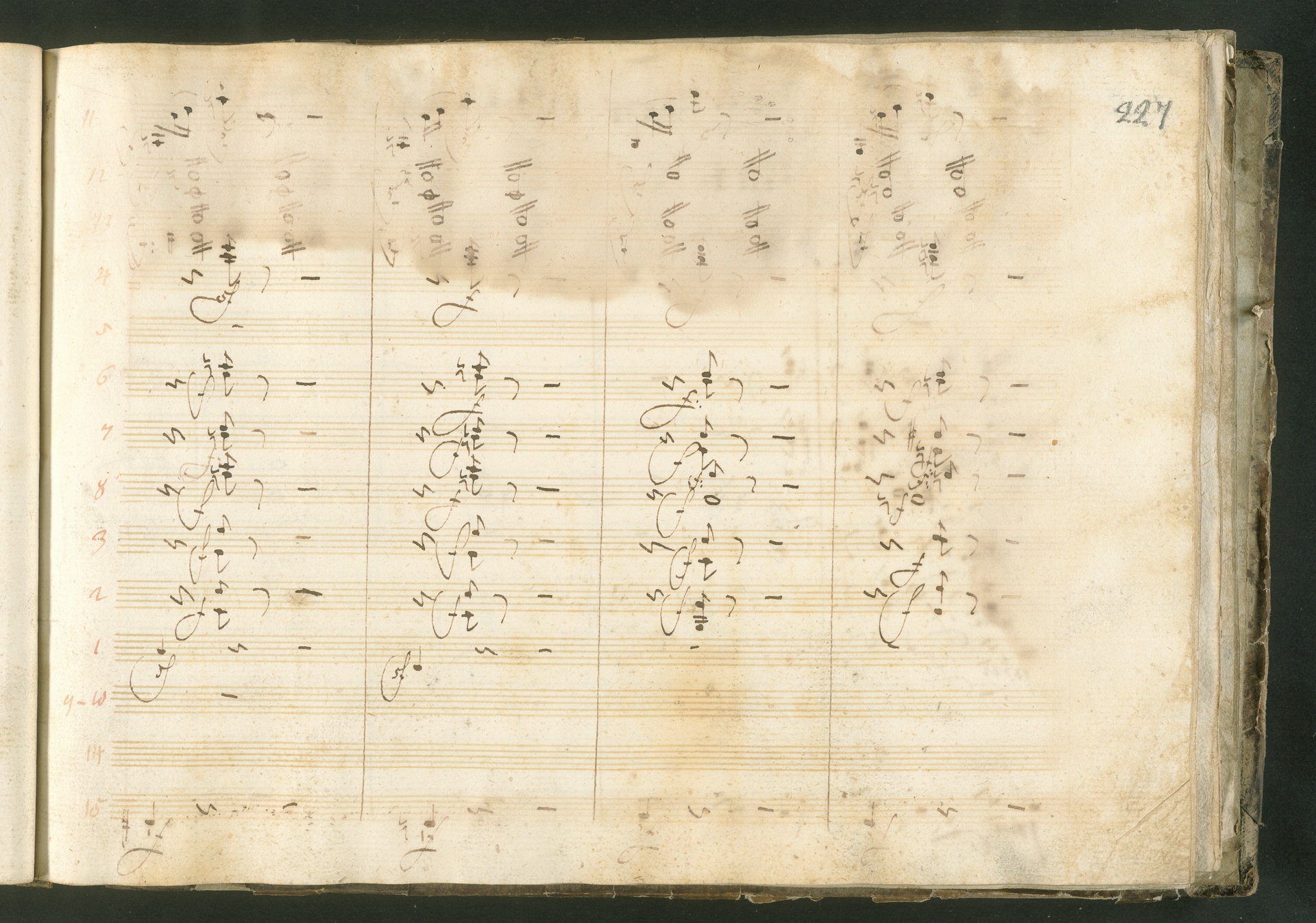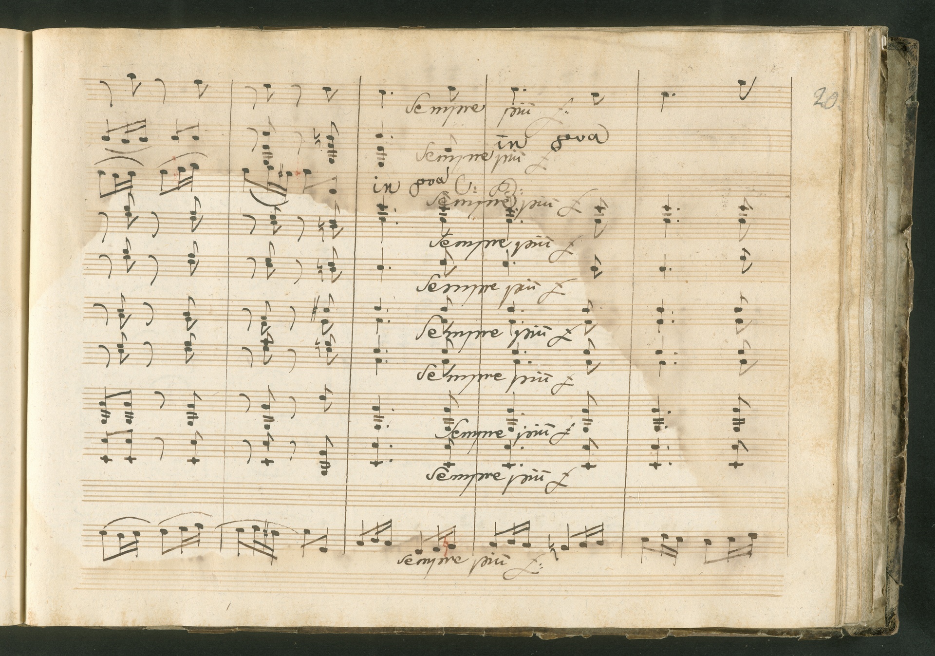 The manuscript shown here is a corrected copy of the Sixth Symphony, the "Pastoral". Beethoven sold the publisher Gottfried Christoph Härtel his Fifth and Sixth Symphonies (op. 67 und 68) in September 1808 on his visit to Vienna. The surviving correspondence shows that Beethoven did not give Härtel autograph scores but corrected copies as engraver's models for the original edition