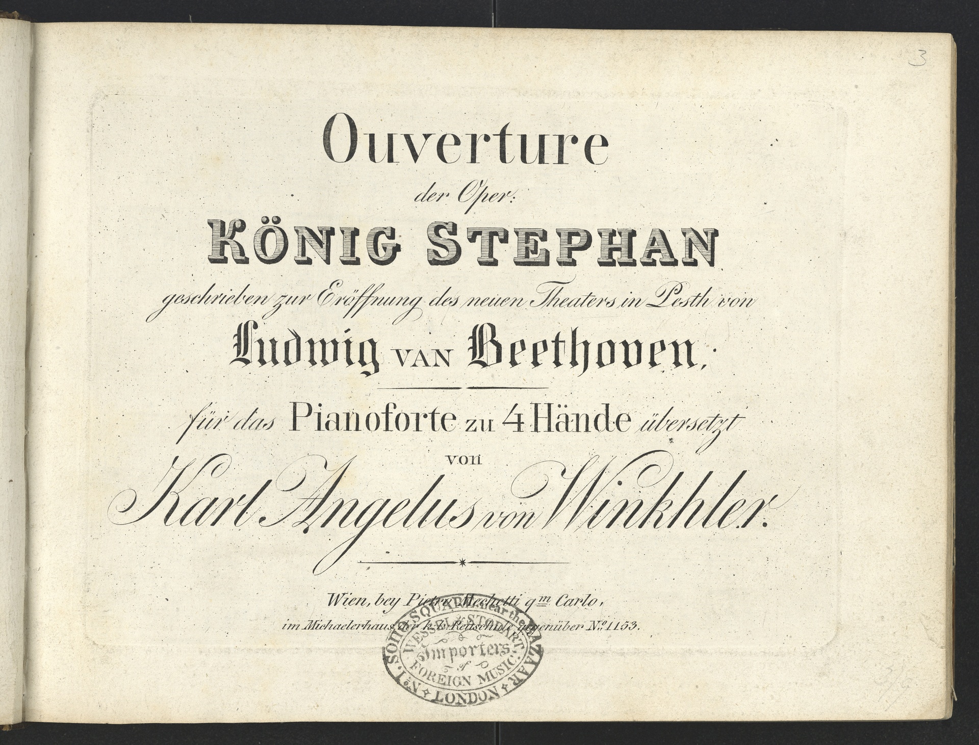 Ludwig van Beethoven, Ouvertüre (Es-Dur) zu August von Kotzebues Festspiel "Ungarns erster Wohltäter" op. 117, Bearbeitung für Klavier zu 4 Händen, Mechetti, 1260