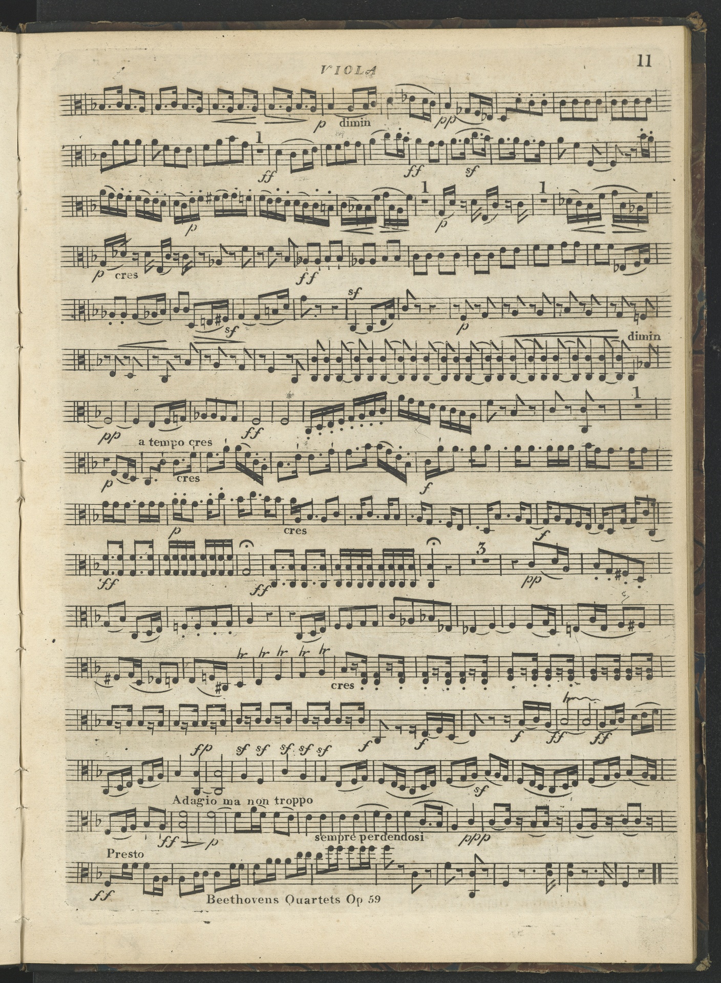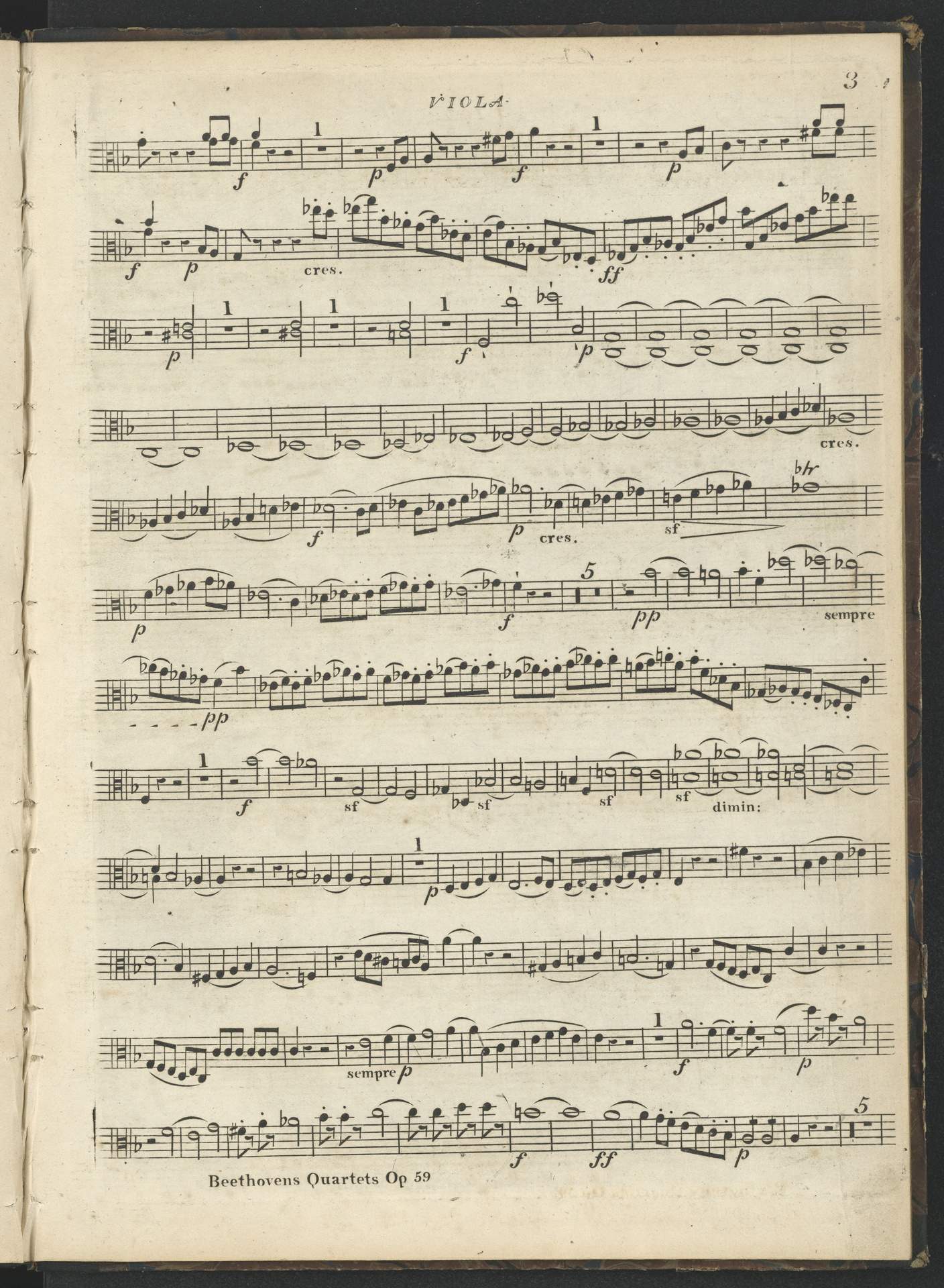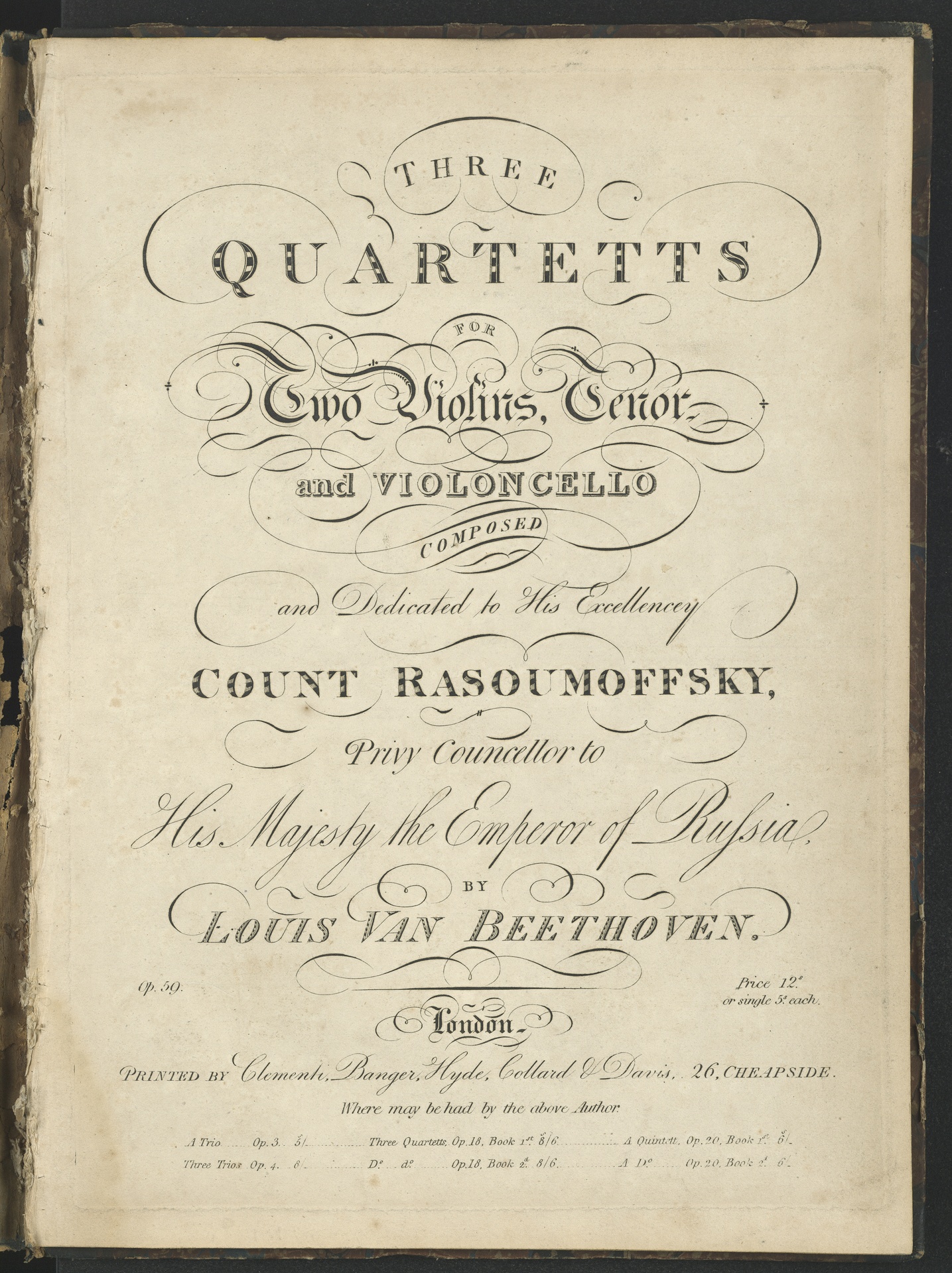 Ludwig van Beethoven, Quartette für 2 Violinen, Viola, Violoncello (F-Dur, e-Moll, C-Dur) op. 59, 1-3, Stimmen, Clementi