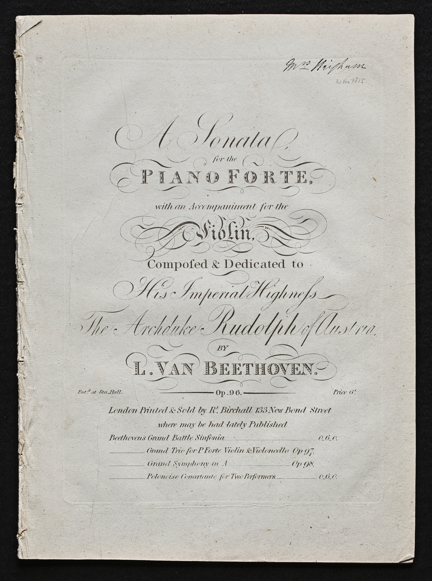 Ludwig van Beethoven, Sonate für Klavier und Violine (G-Dur) op. 96, Klavierpartitur, Stimme, Birchall