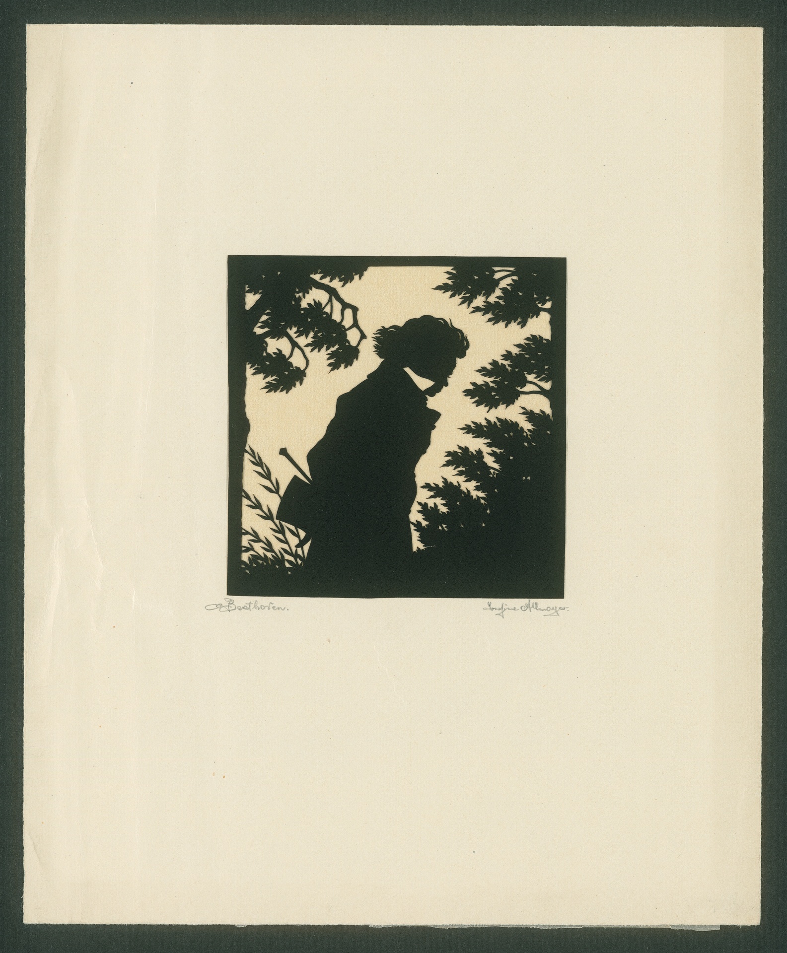Beethoven beim Spaziergang im Wald - Scherenschnitt von Josefine Allmayer, Wien, um 1920-1925