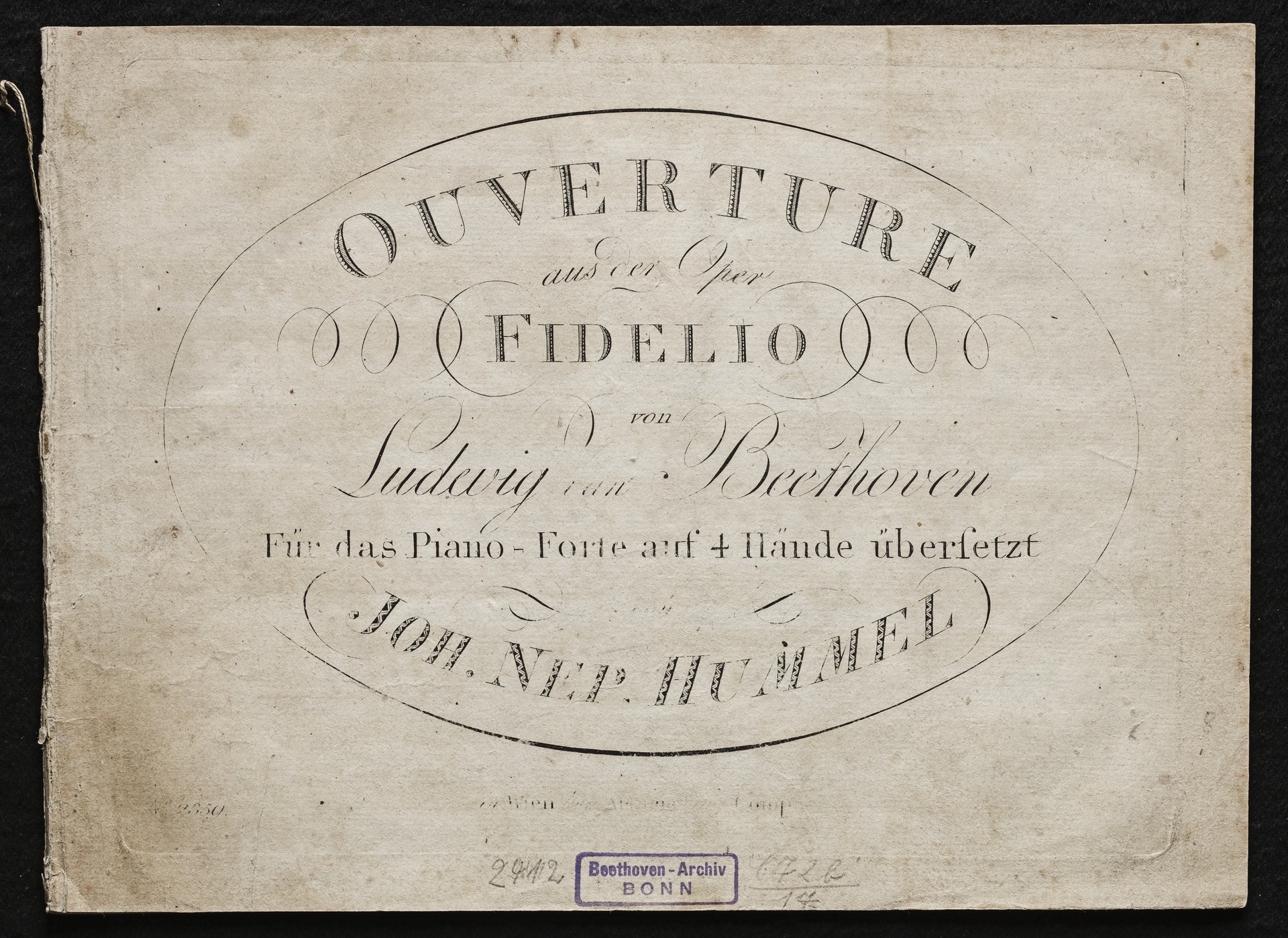 Ludwig van Beethoven, Fidelio op. 72, 3. Fassung 1814, Ouvertüre (E-Dur), Bearbeitung für Klavier zu 4 Händen von Johann Nepomuk Hummel, Artaria, 2359