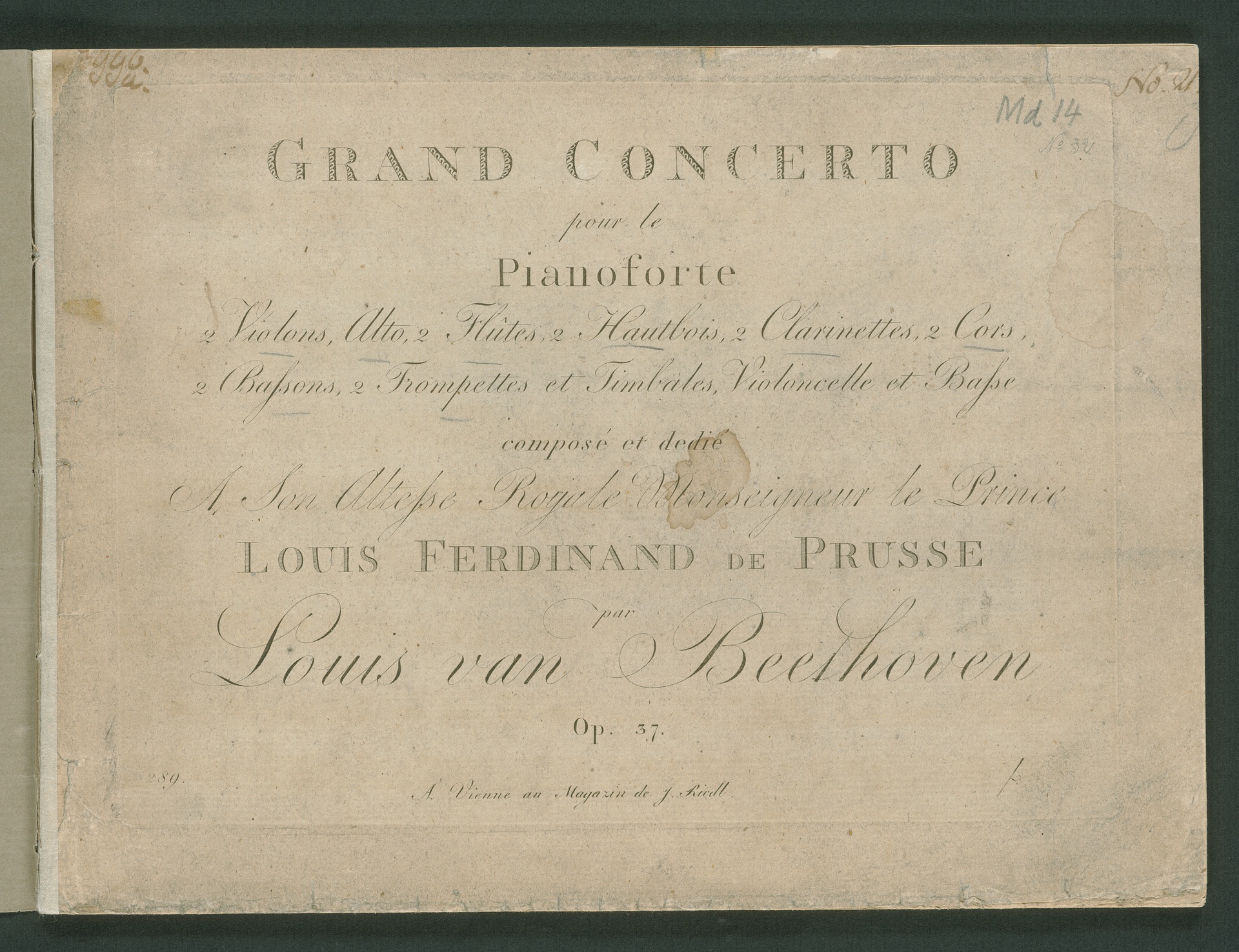 Ludwig van Beethoven, Konzert für Klavier Nr. 3 (c-Moll) op. 37, Stimmen, Riedl, 289