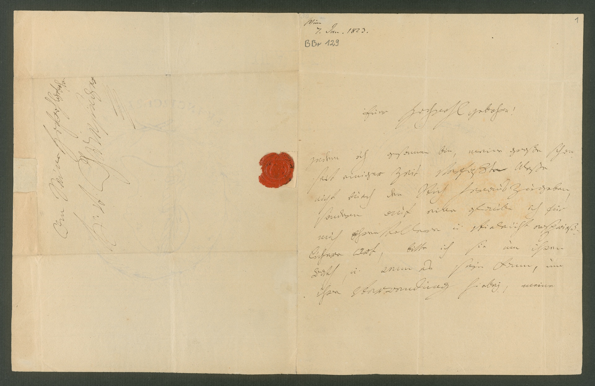 Ludwig van Beethoven, Brief an Georg August Griesinger, Wien, 7. Januar 1823, Autograph