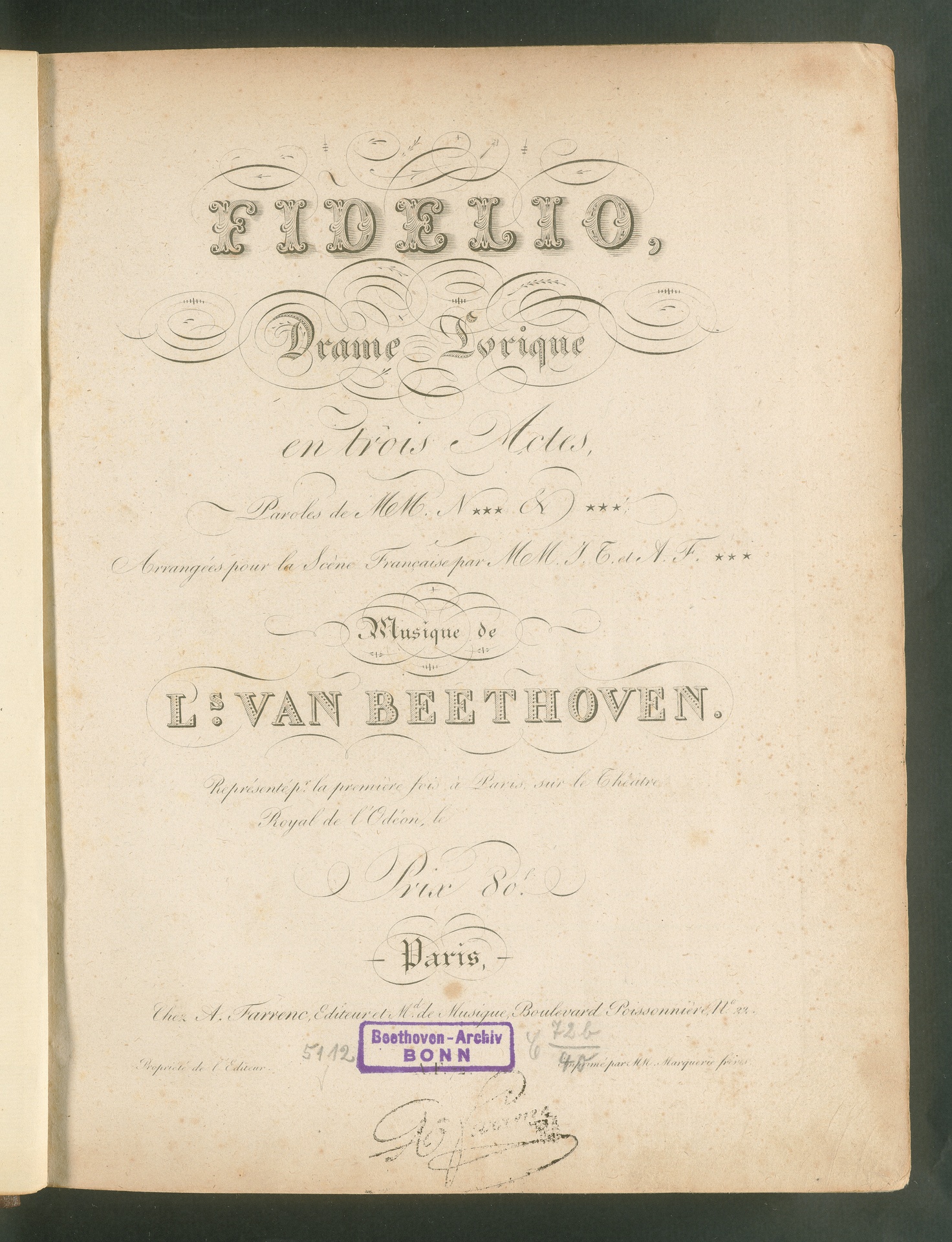 Ludwig van BeethovenPierre François Camus, Fidelio op. 72, 3. Fassung 1814, Partitur, Farrenc, 72