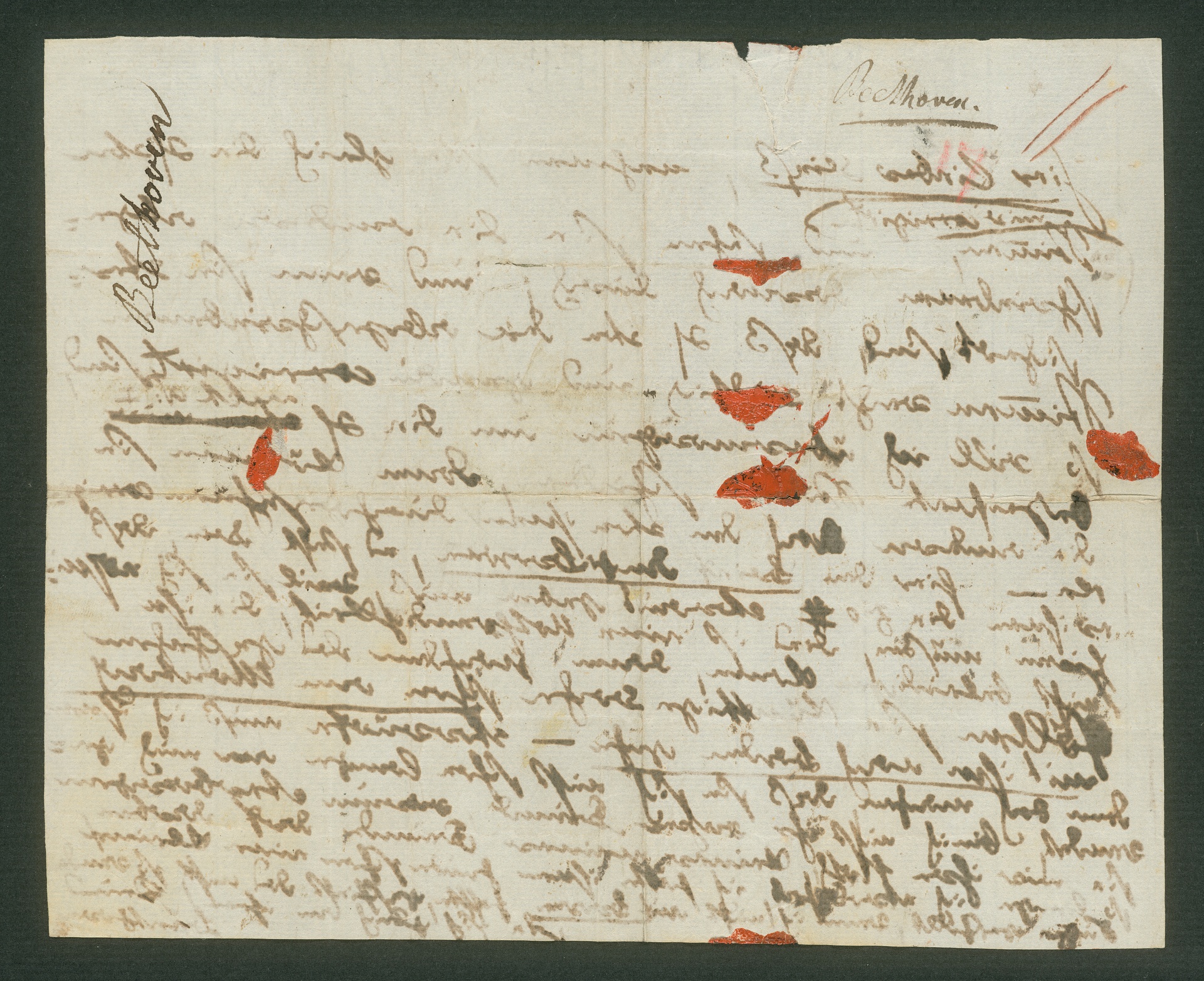 Beethoven asks Ries to proofread (according to the BGA apparently the string parts for op. 36). In addition he encloses a letter for Count Browne, in which he asks 50 ducats advance payment for Ries, so that he can buy new clothes for his forthcoming job.