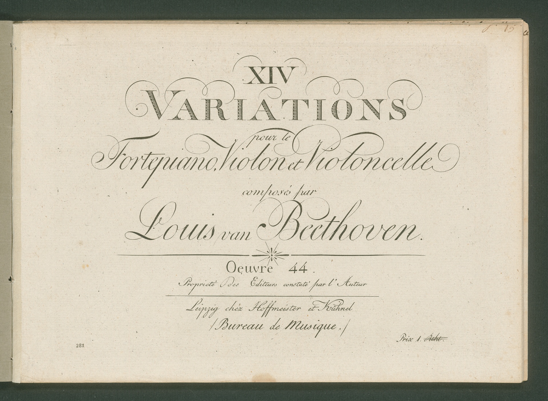 Ludwig van Beethoven, Variationen für Klavier, Violine und Violoncello (Es-Dur) op. 44, Stimmen, Hoffmeister und Kühnel, 281