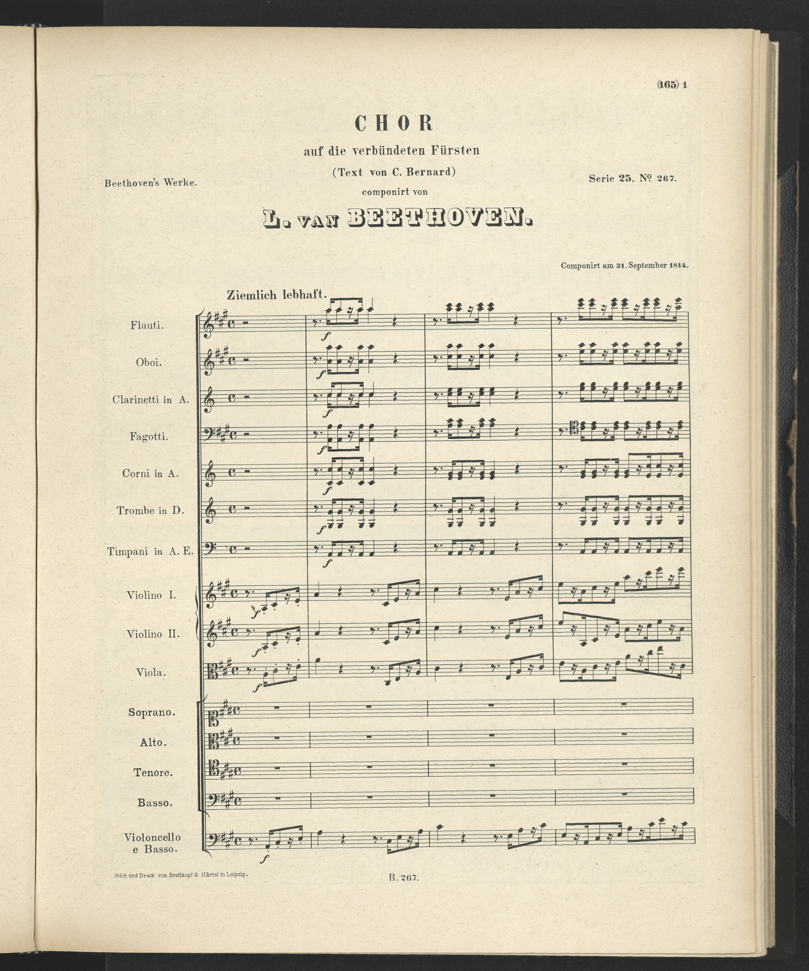 Ludwig van BeethovenJoseph Carl Bernard, Chor (A-Dur) auf die verbündeten Fürsten für Chor und Orchester WoO 95, Partitur, Breitkopf und Härtel, 267