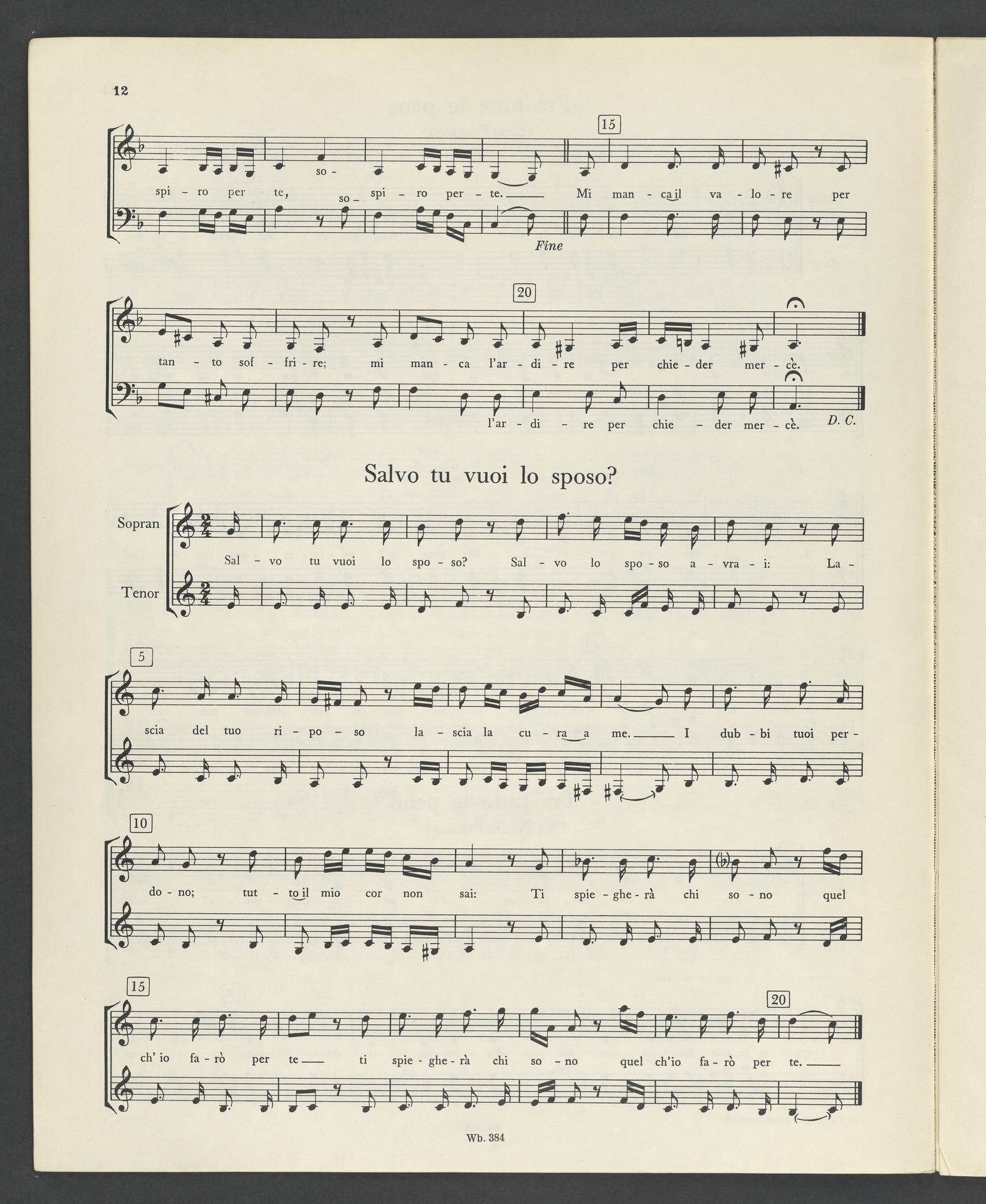 Ludwig van Beethoven, "Salvo tu vuoi lo sposo", Duett für Sopran und Tenor WoO 99, 15, Partitur, Breitkopf und Härtel, 384